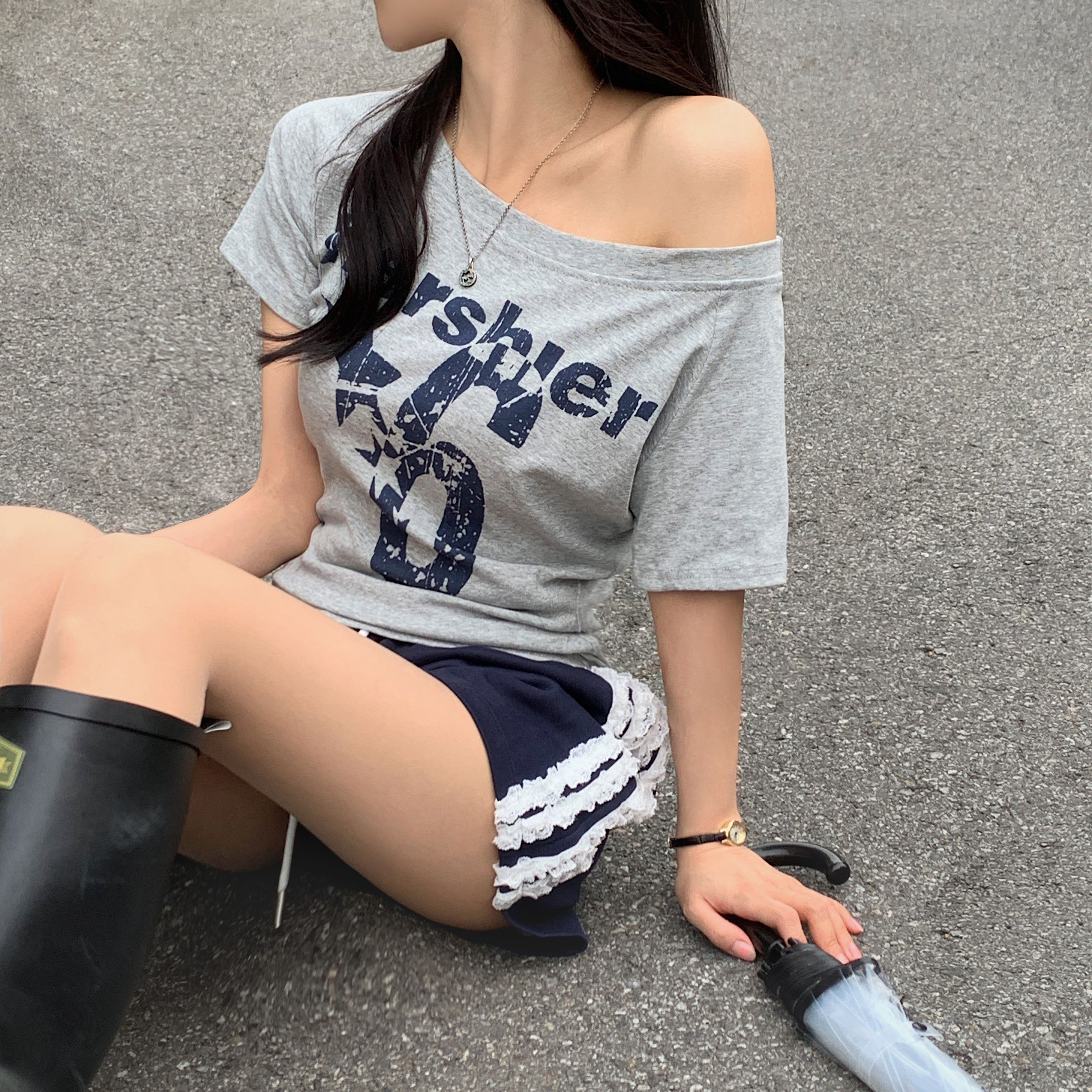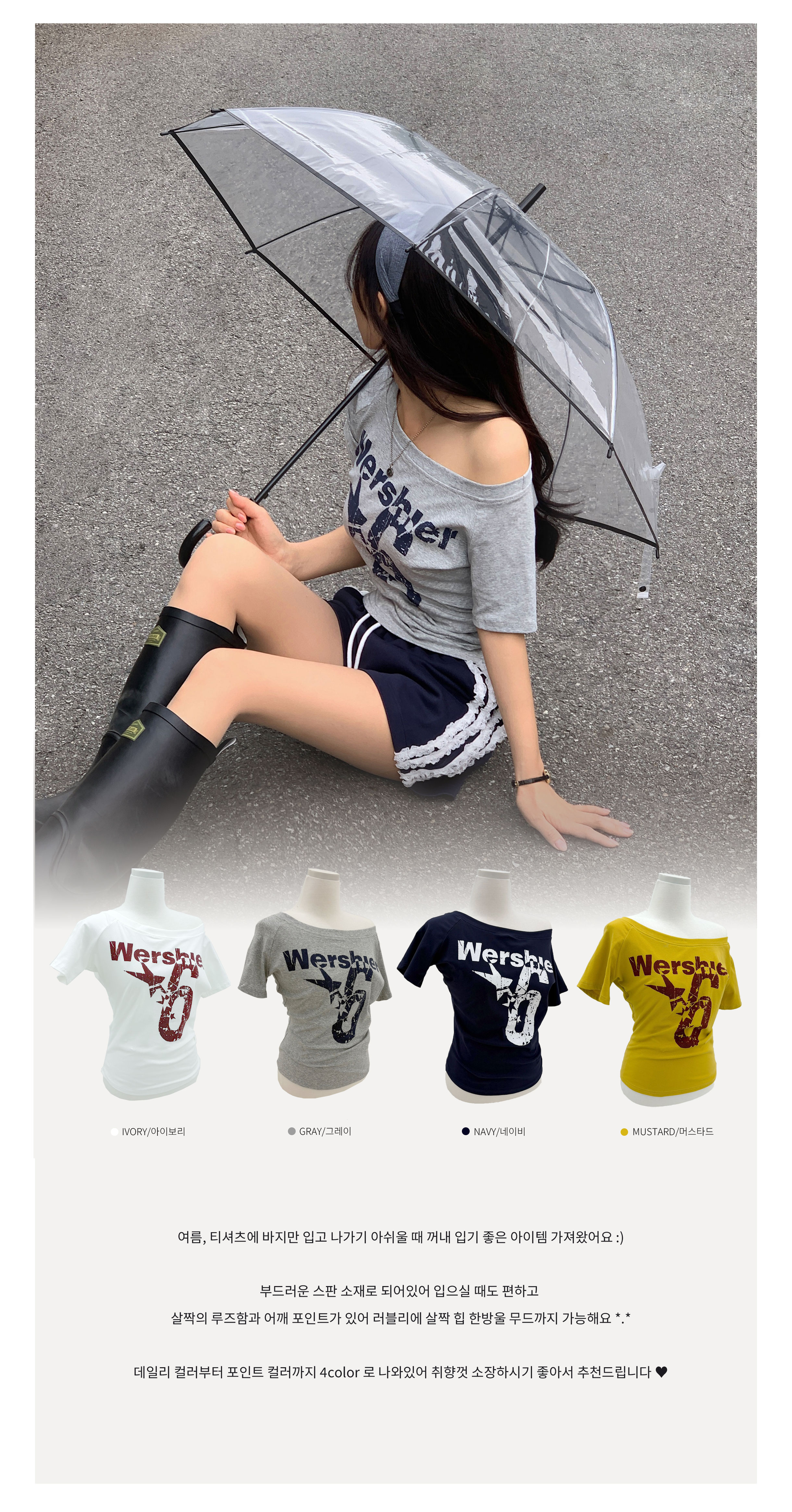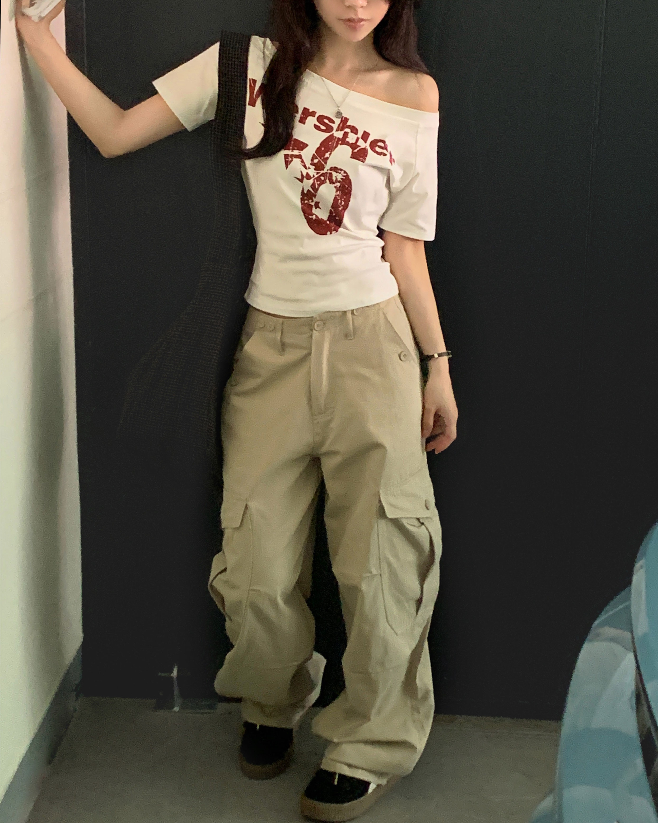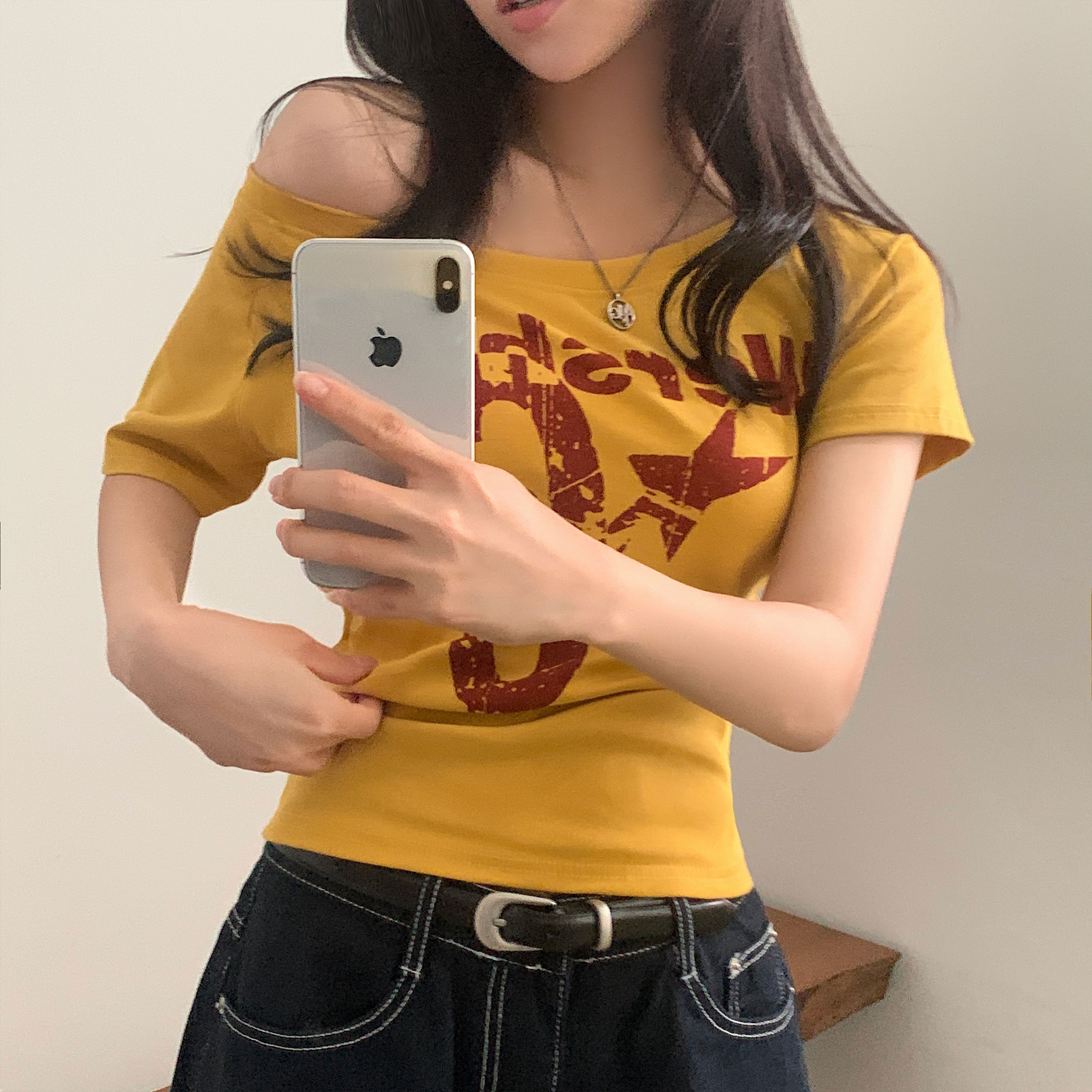 ワンショルダー半袖Tシャツ-4color