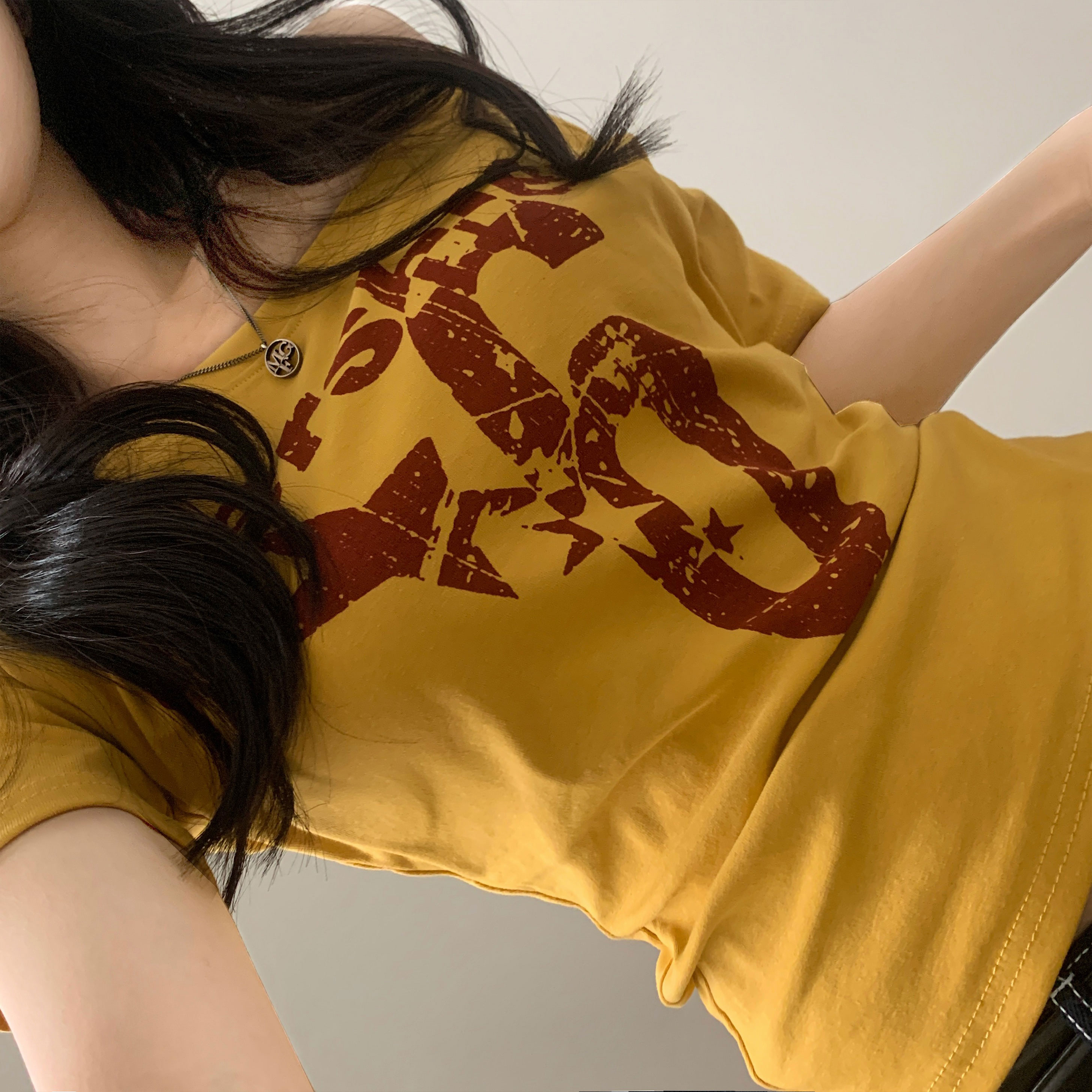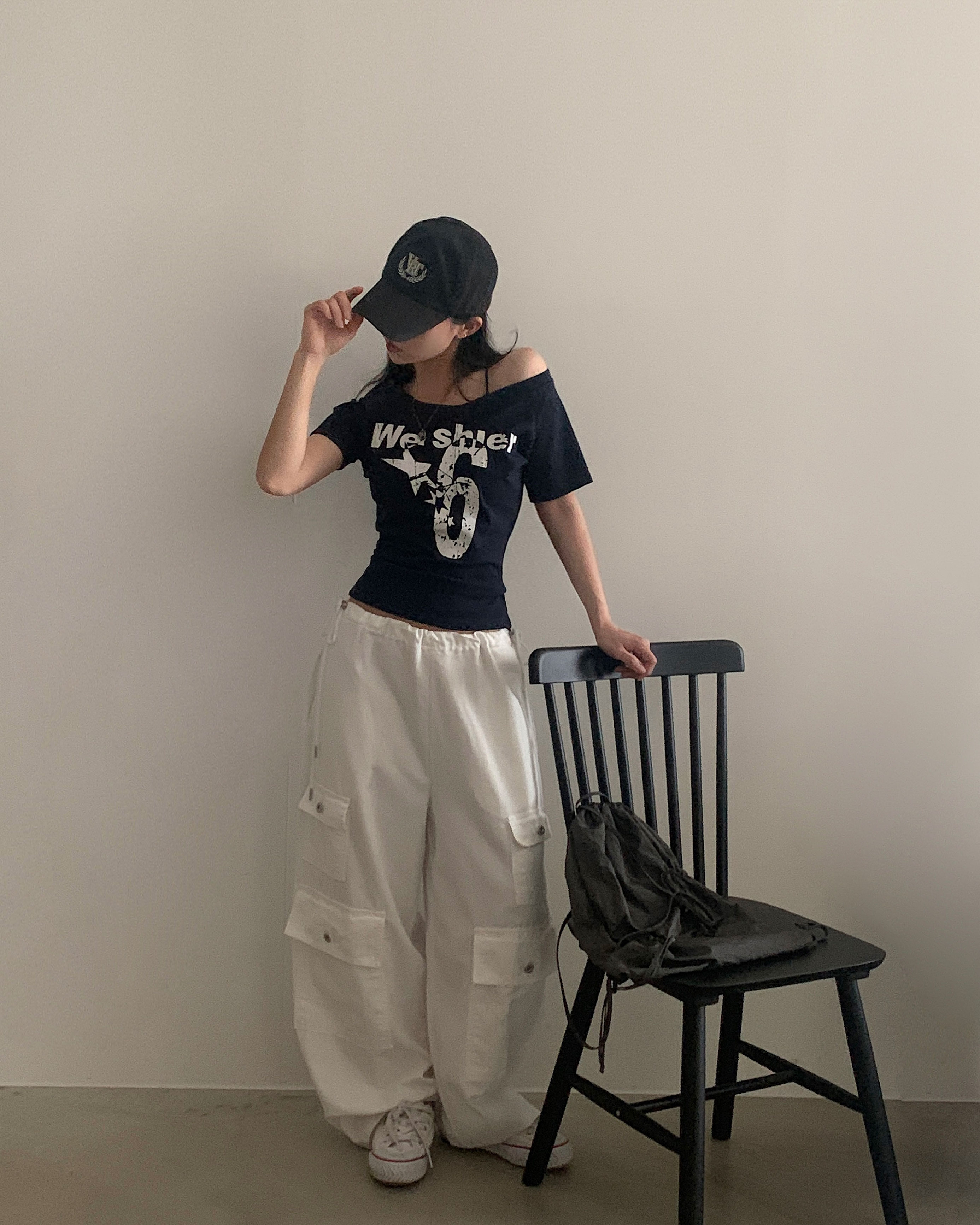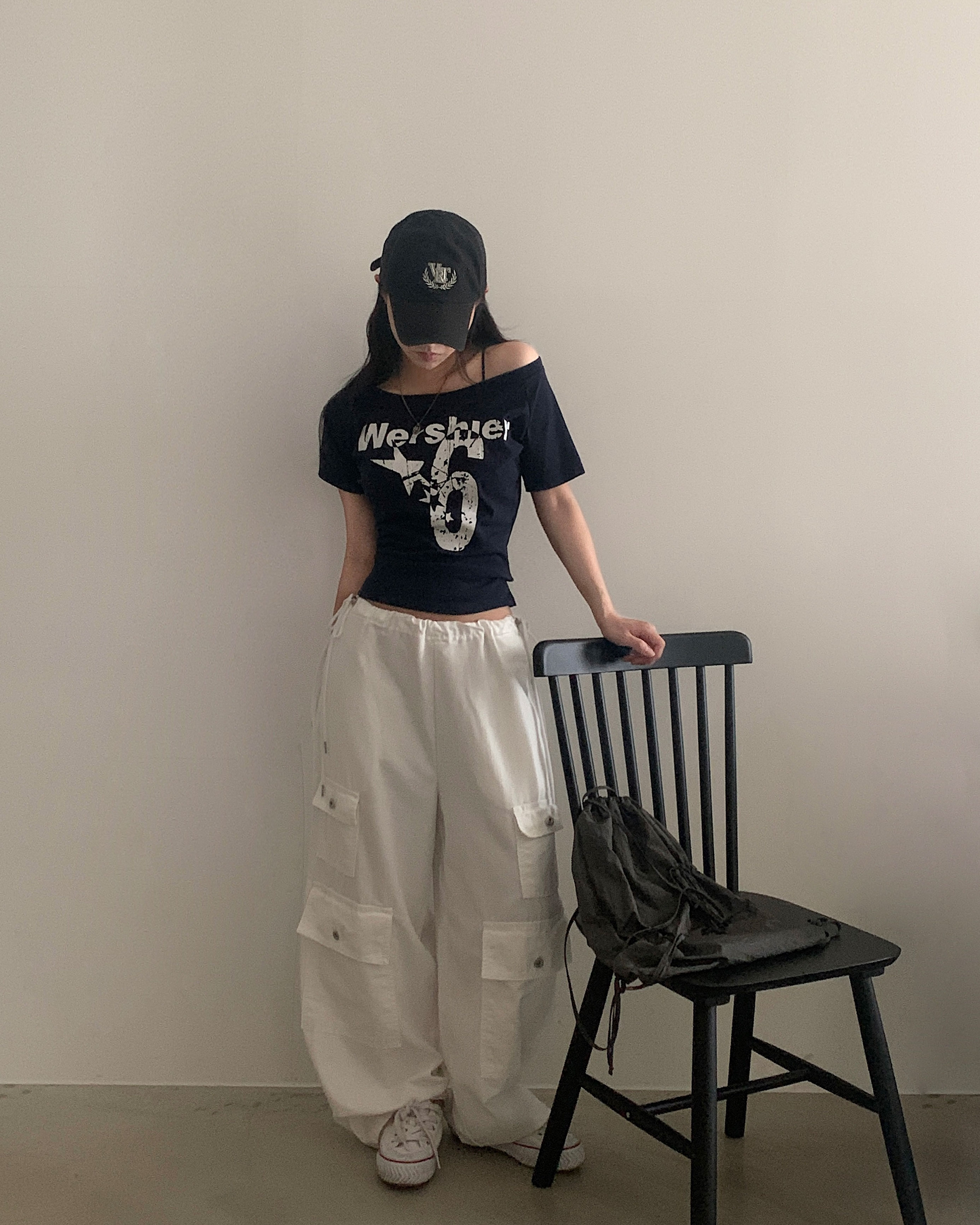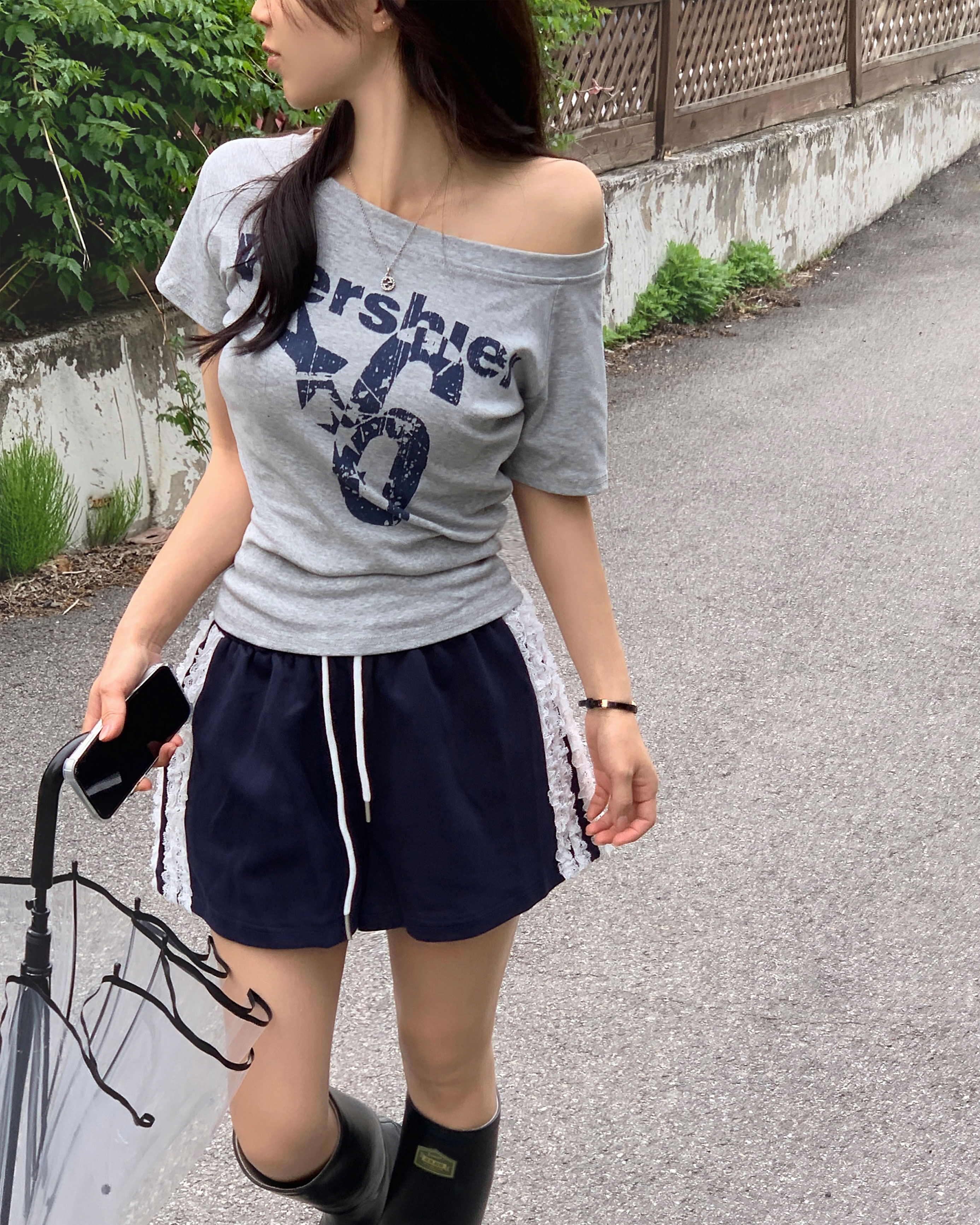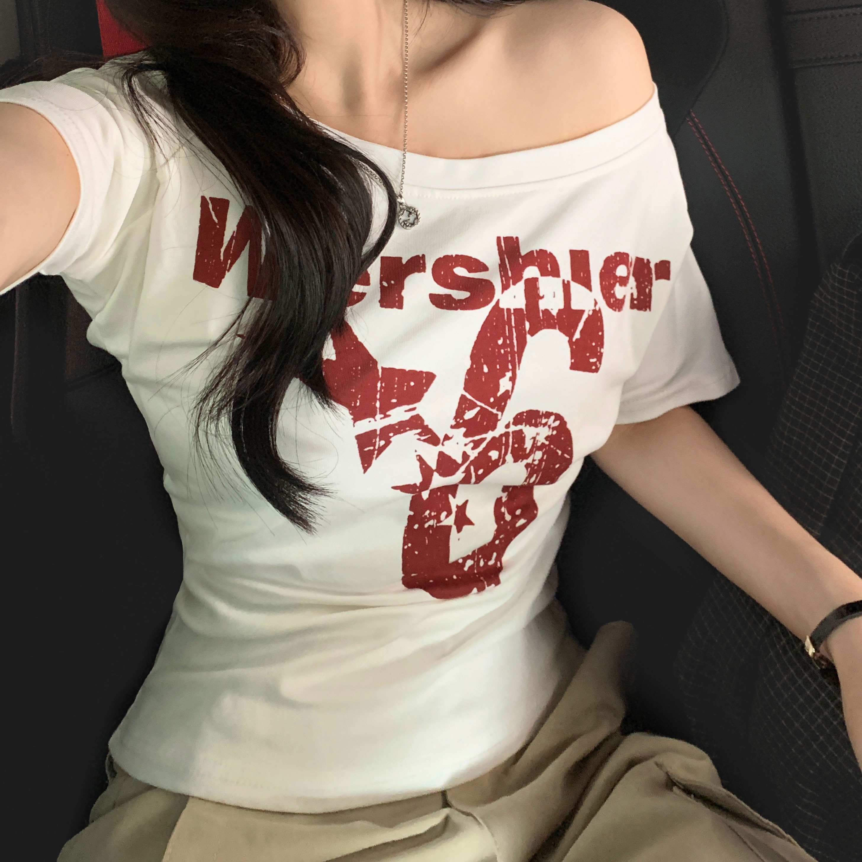 ワンショルダー半袖Tシャツ-4color
