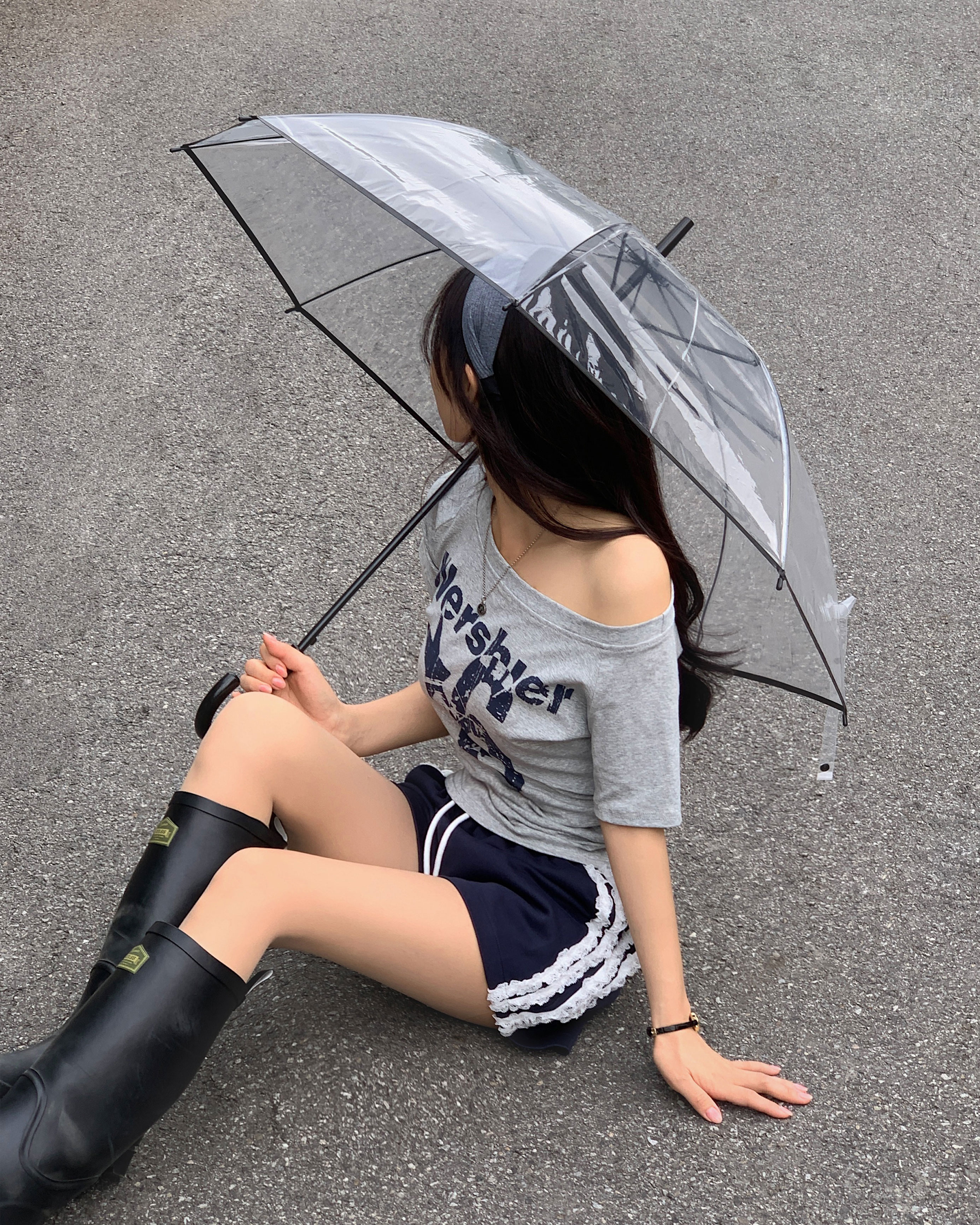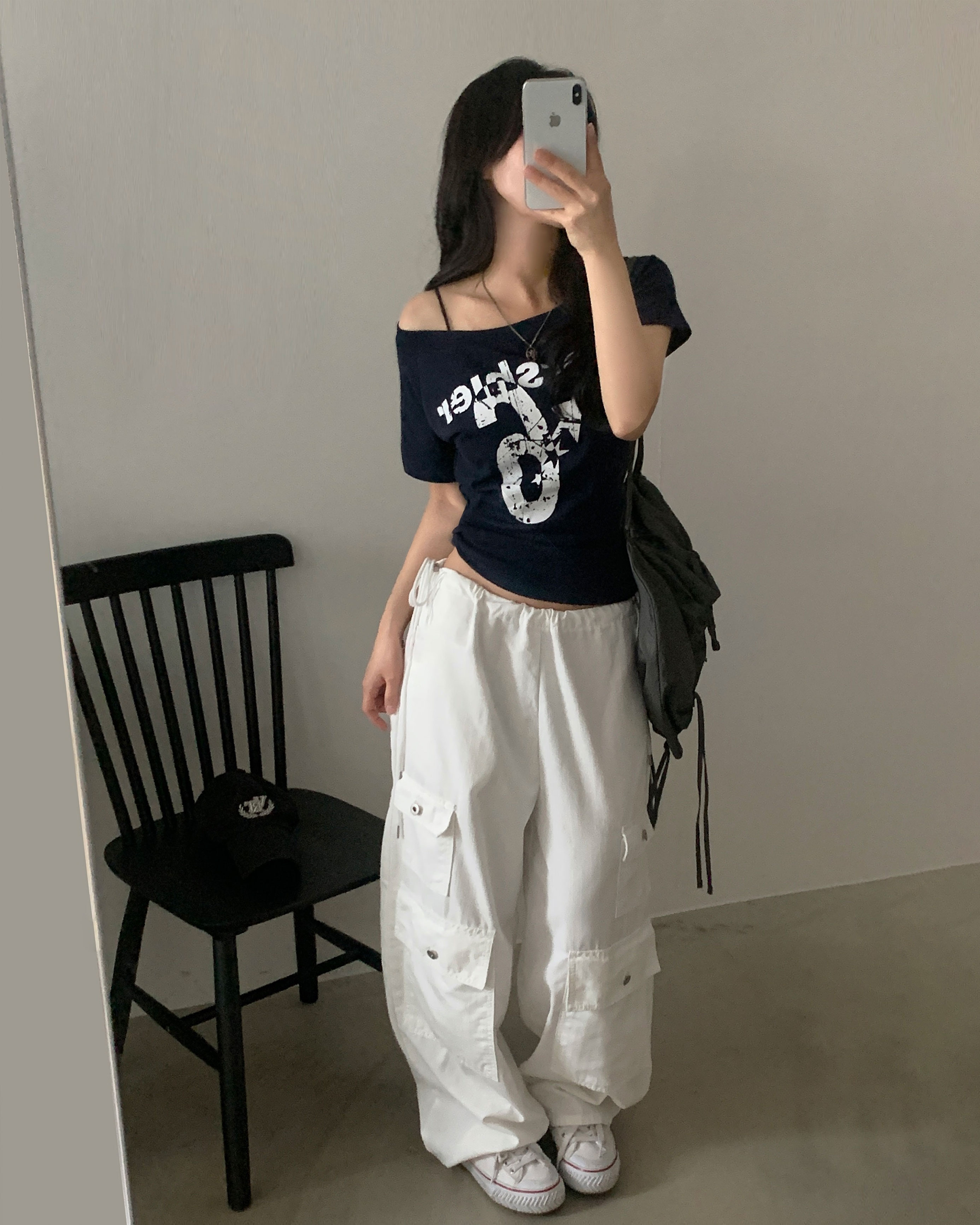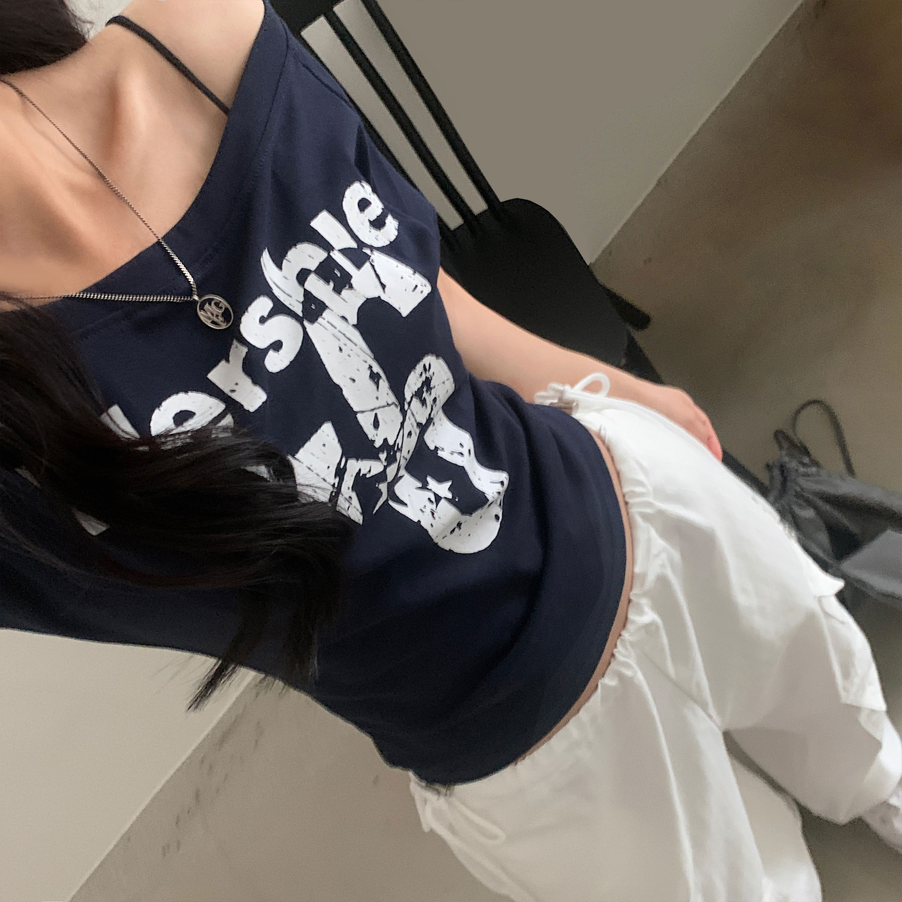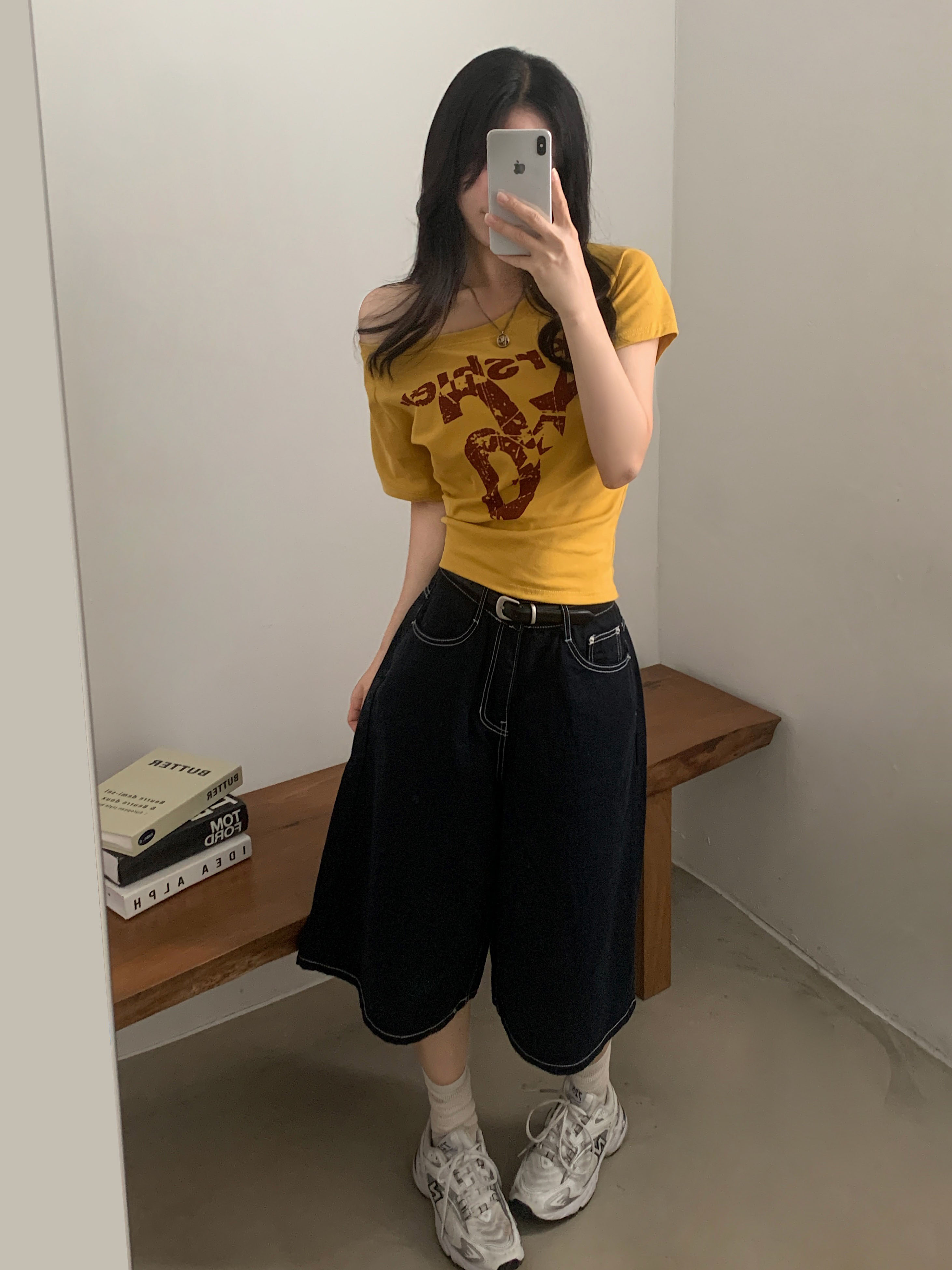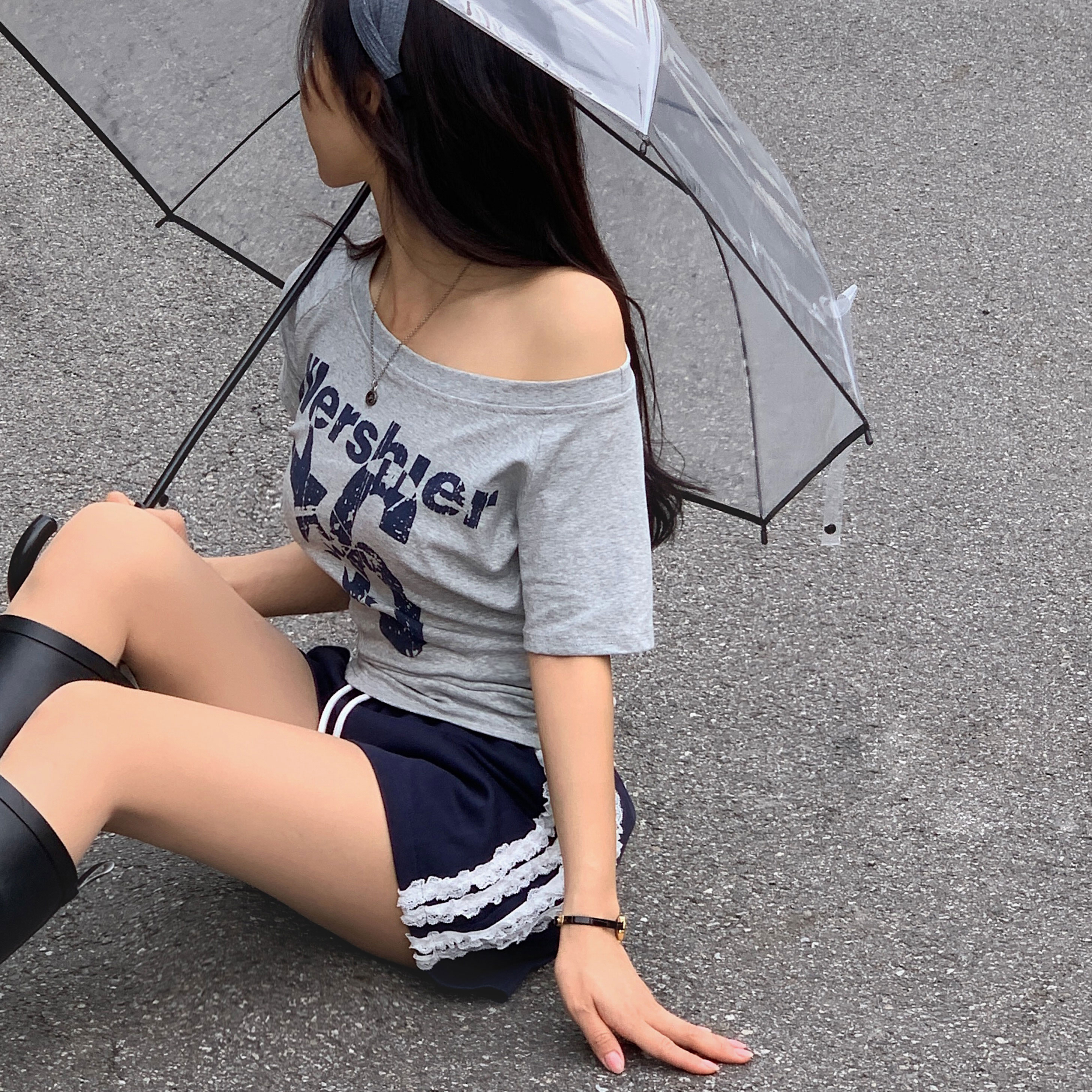 ワンショルダー半袖Tシャツ-4color