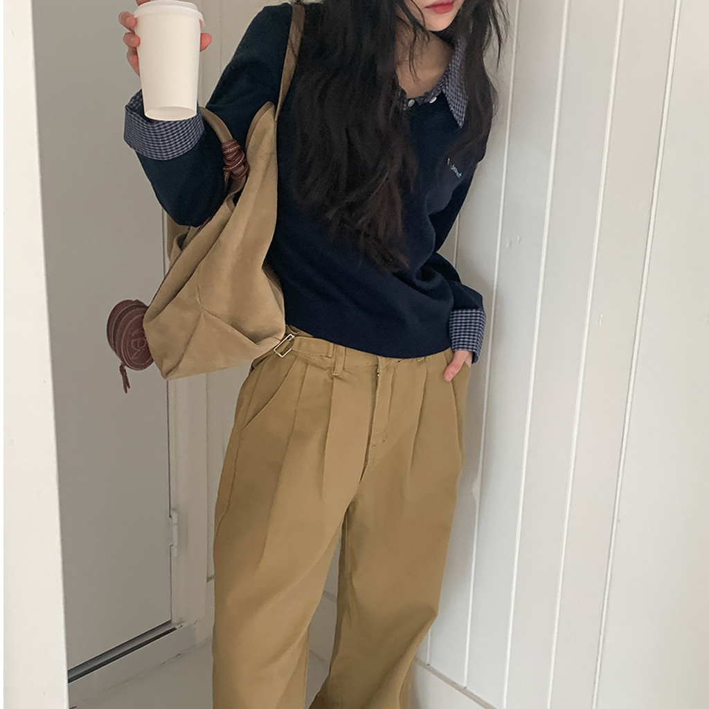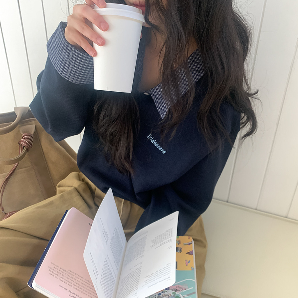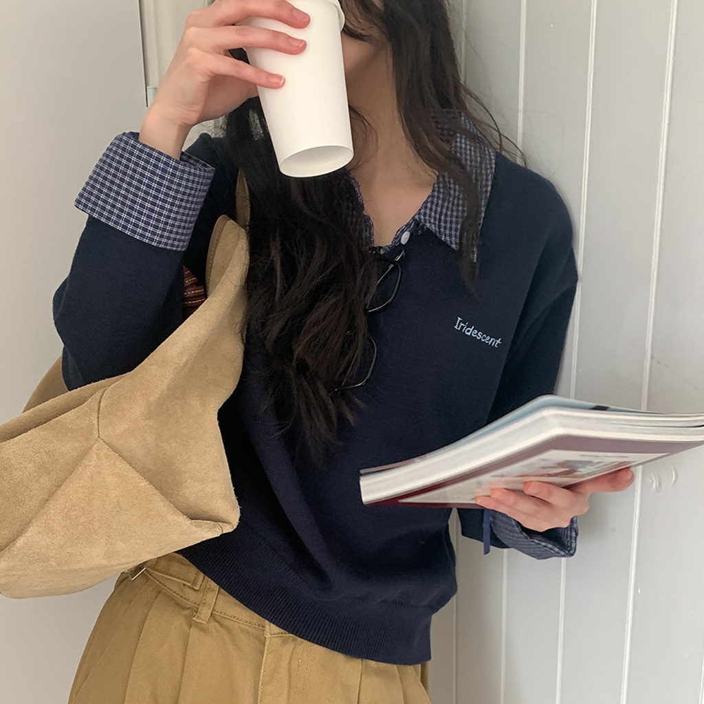 チェックシャツレイヤードニット