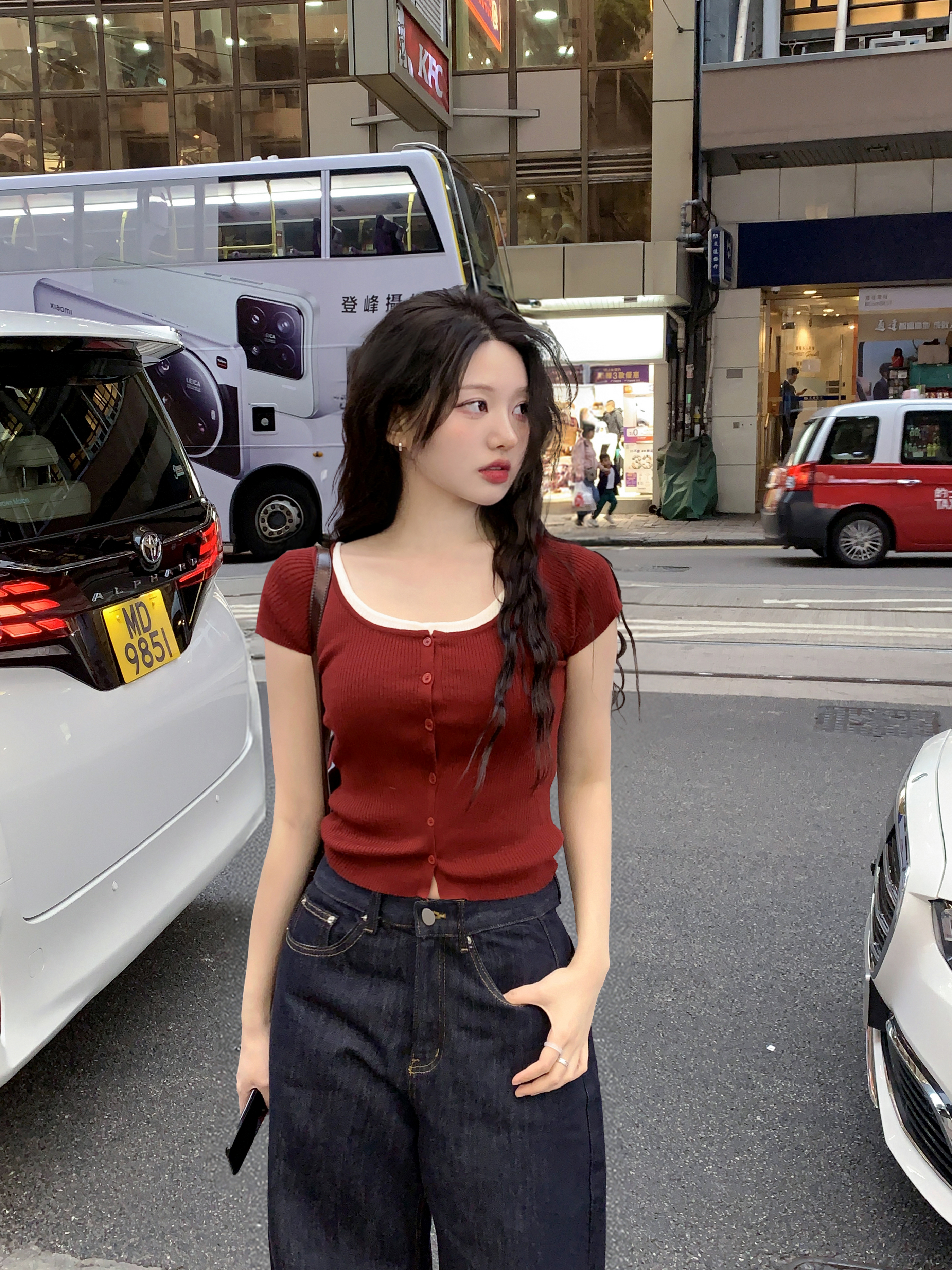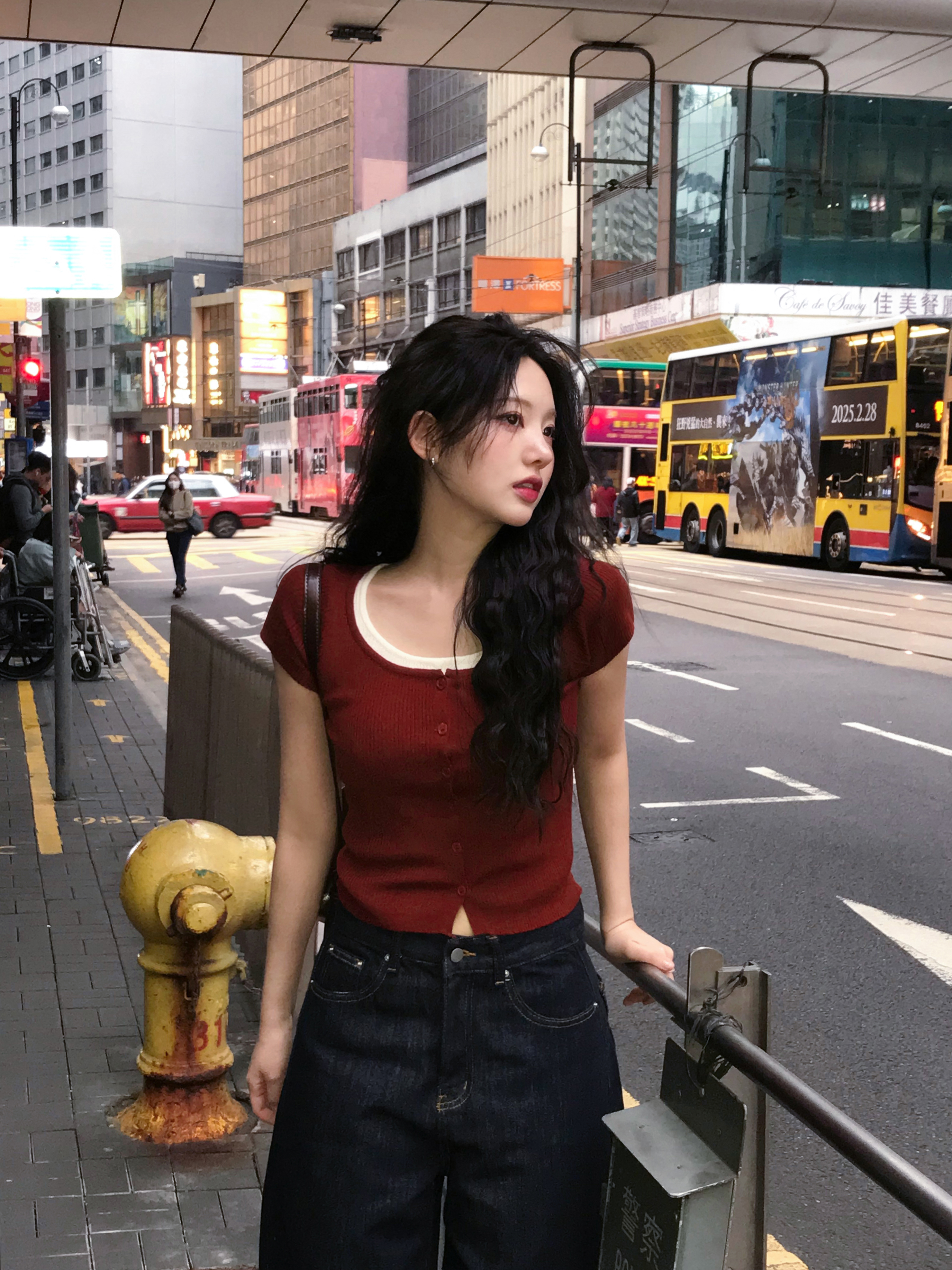 レイヤード半袖ニット