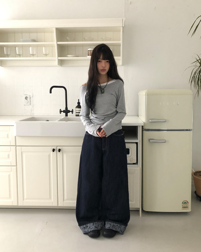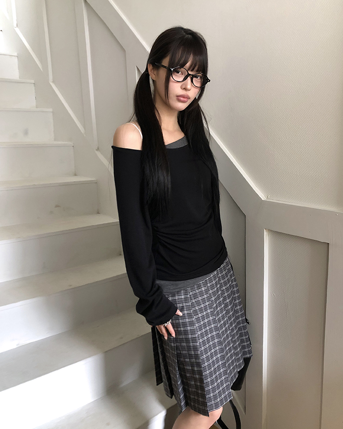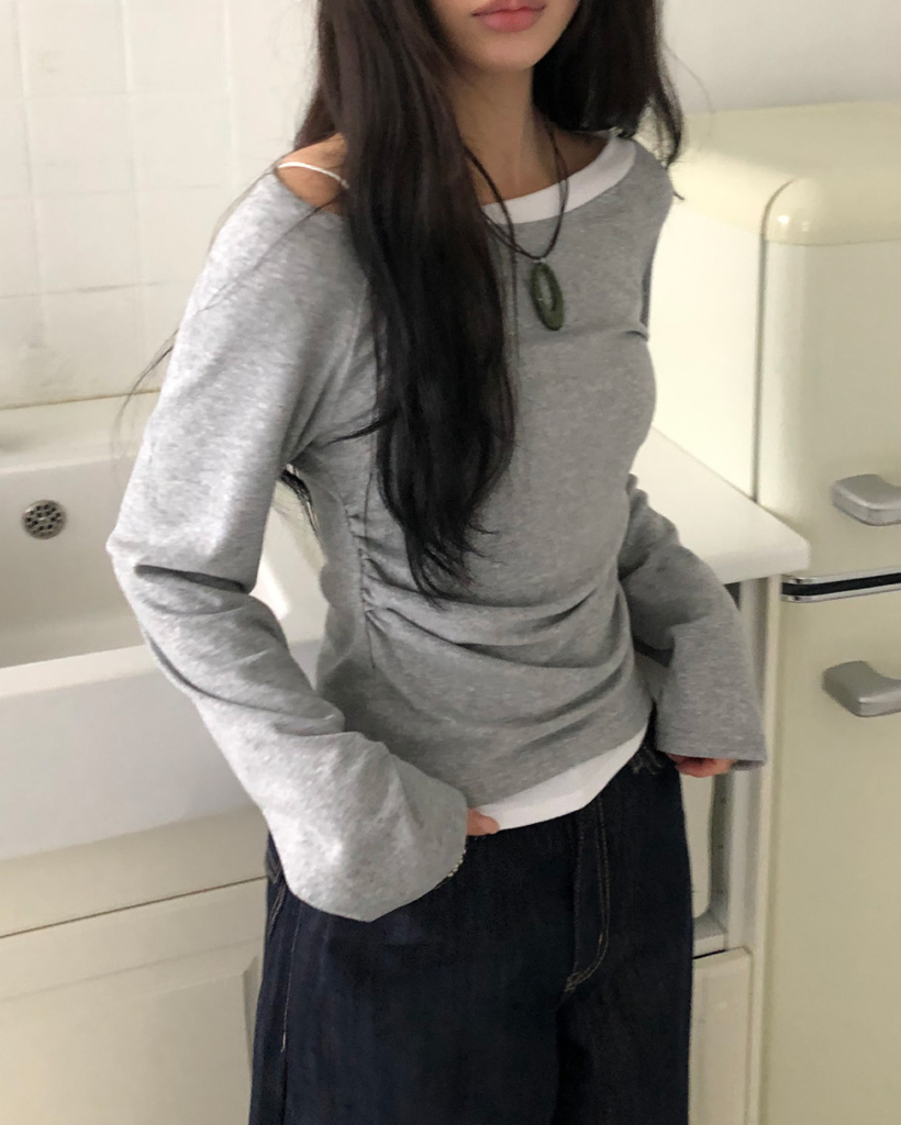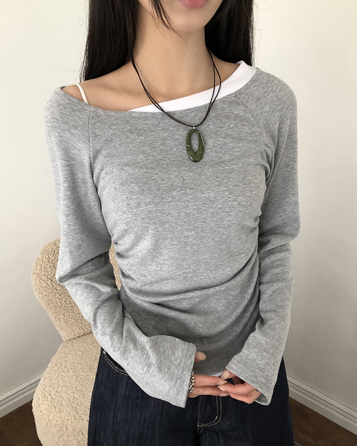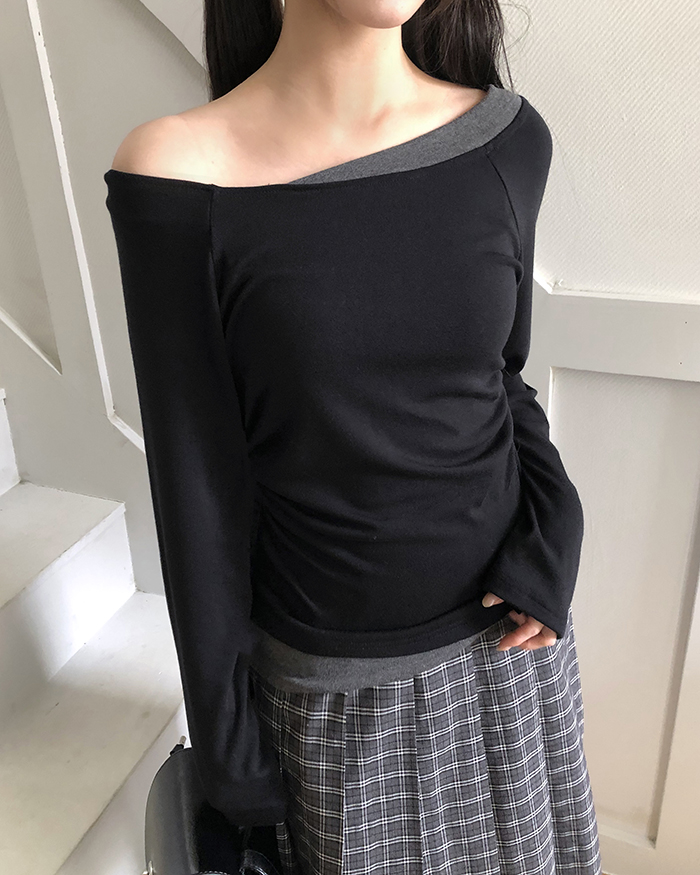 バイカラーシャーリングワンショルダーTシャツ