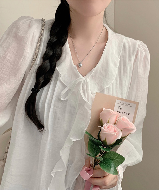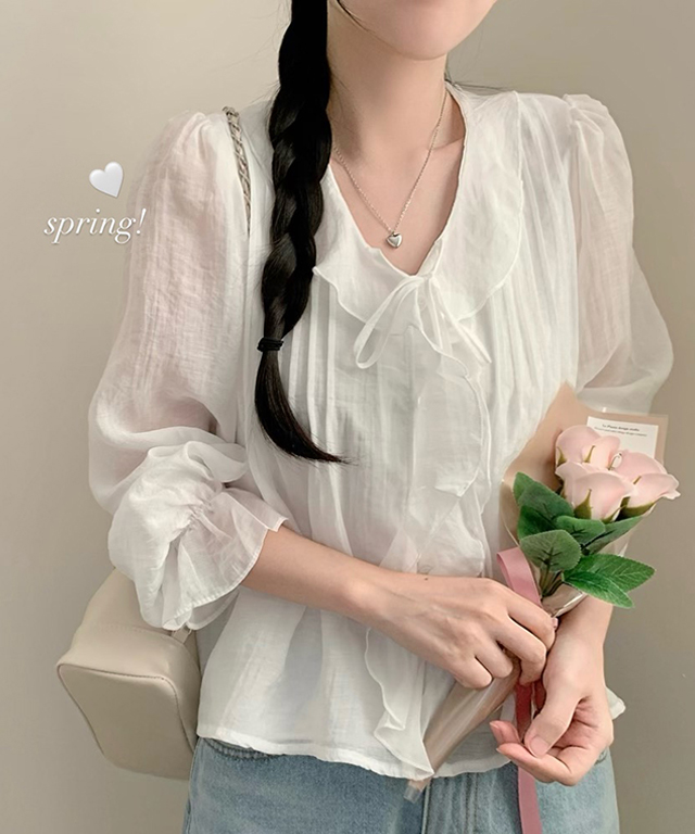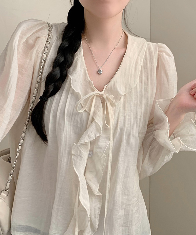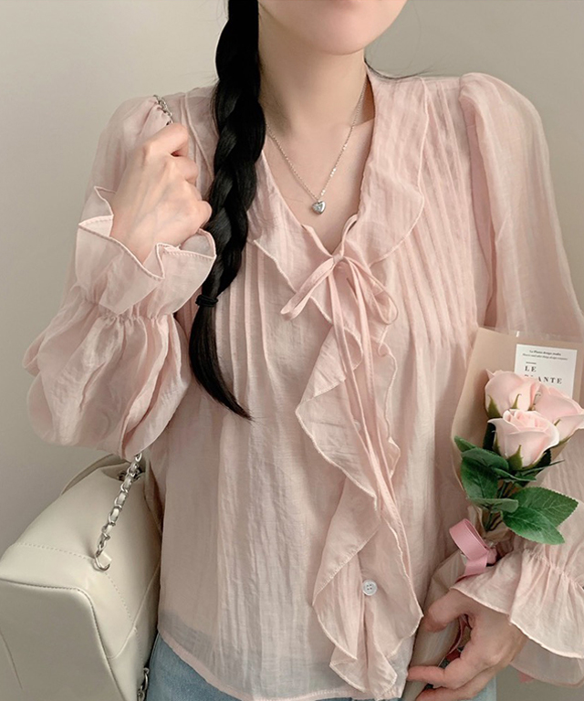 (5color)フリルラッフルロングスリーブブラウス