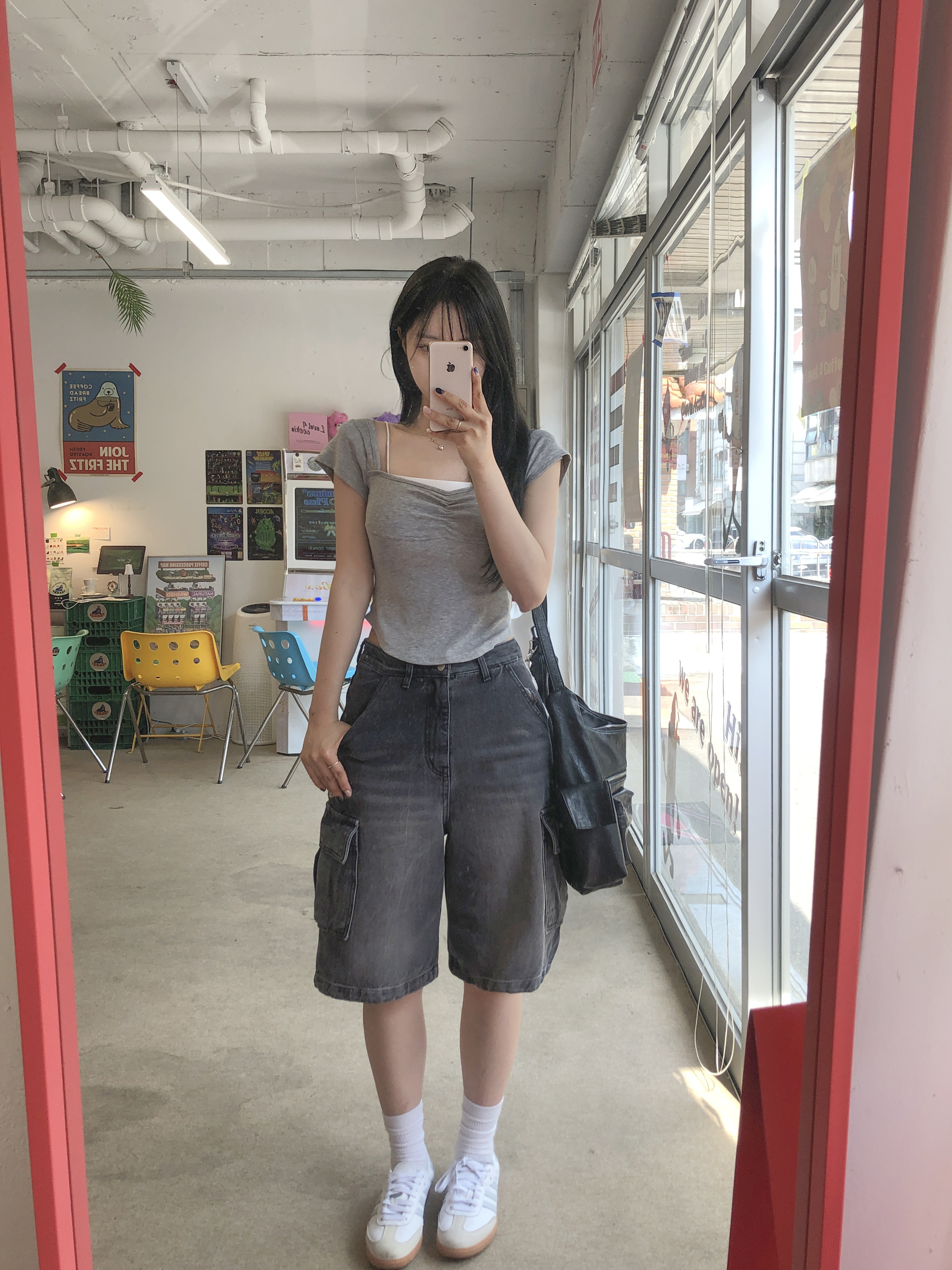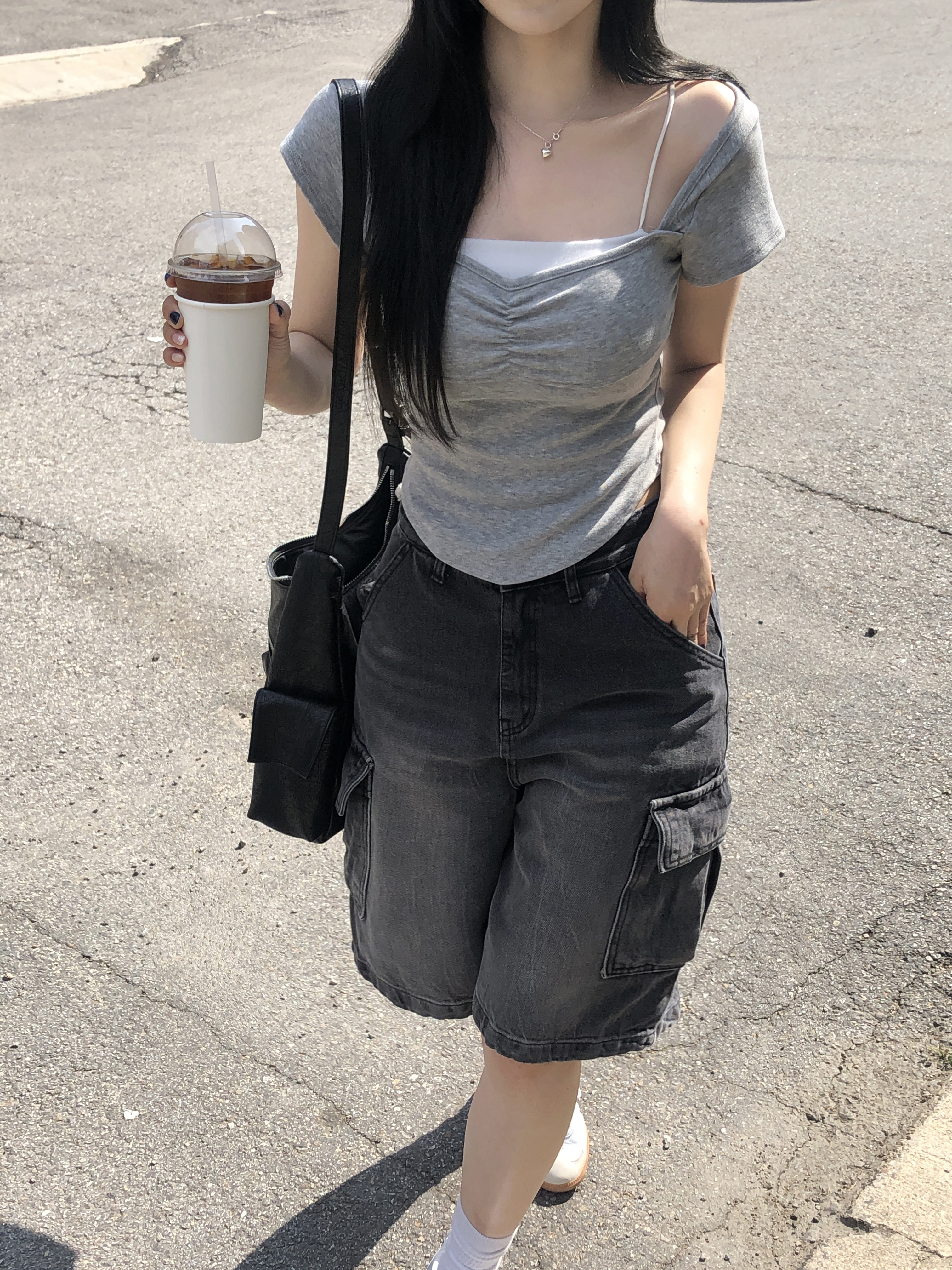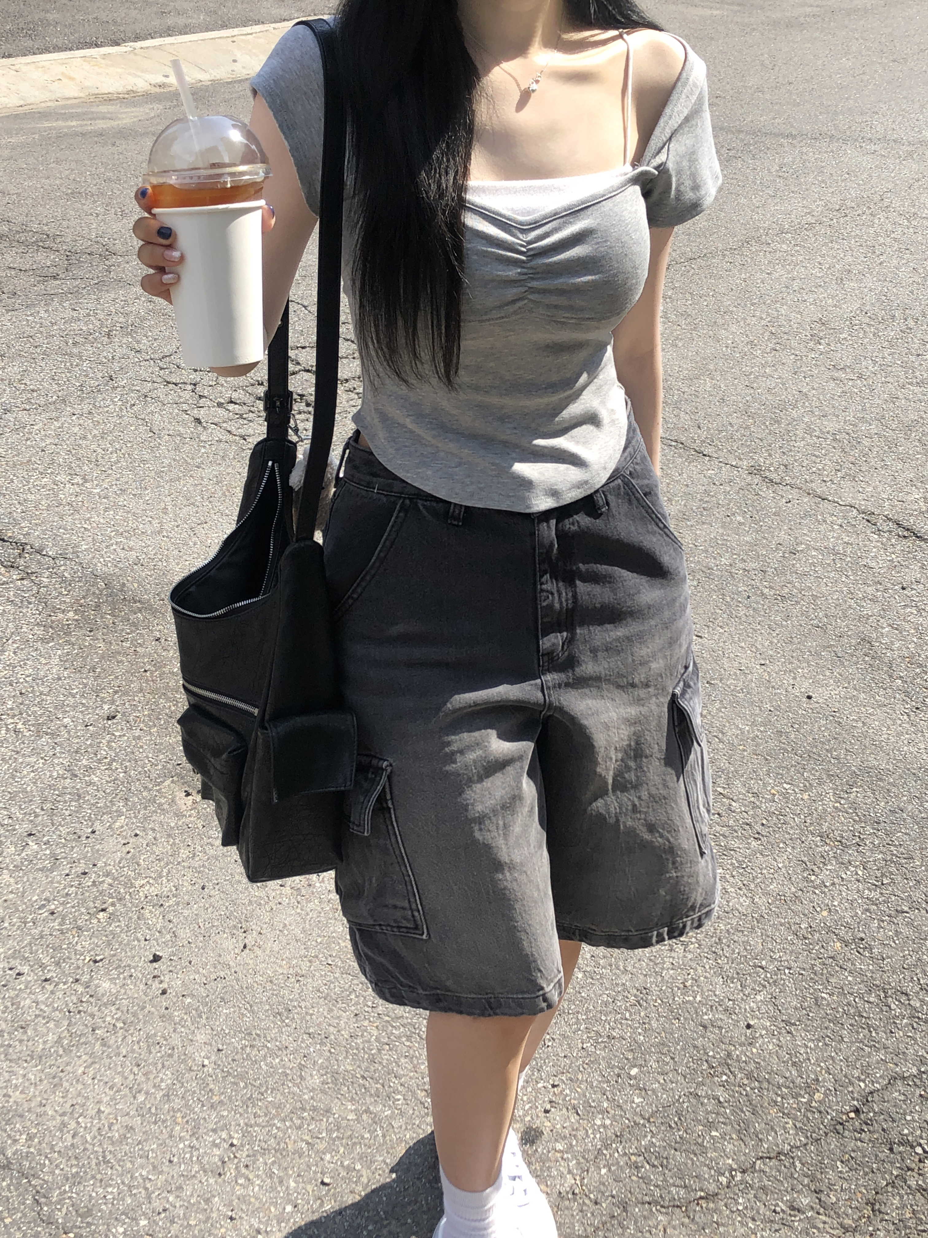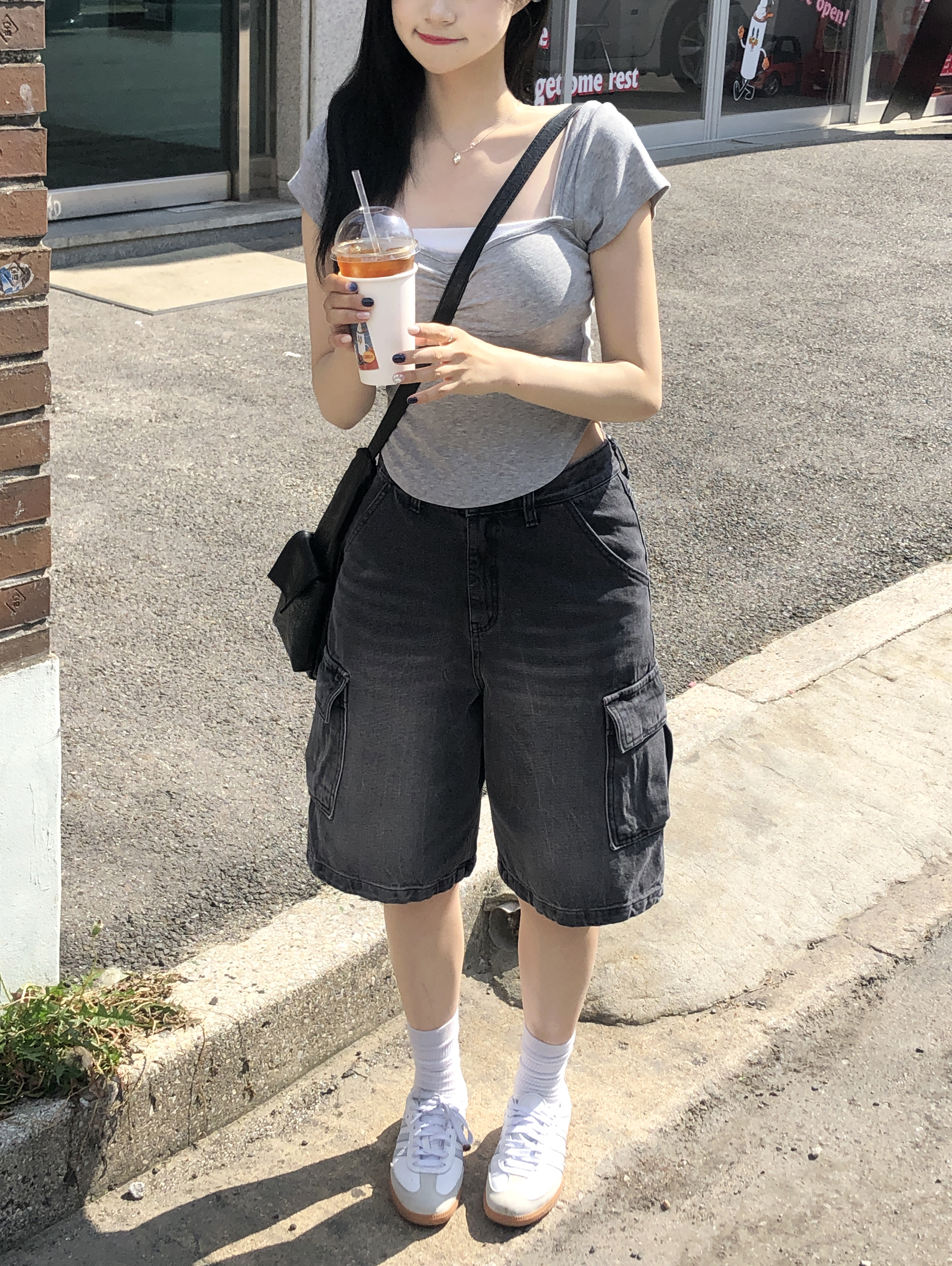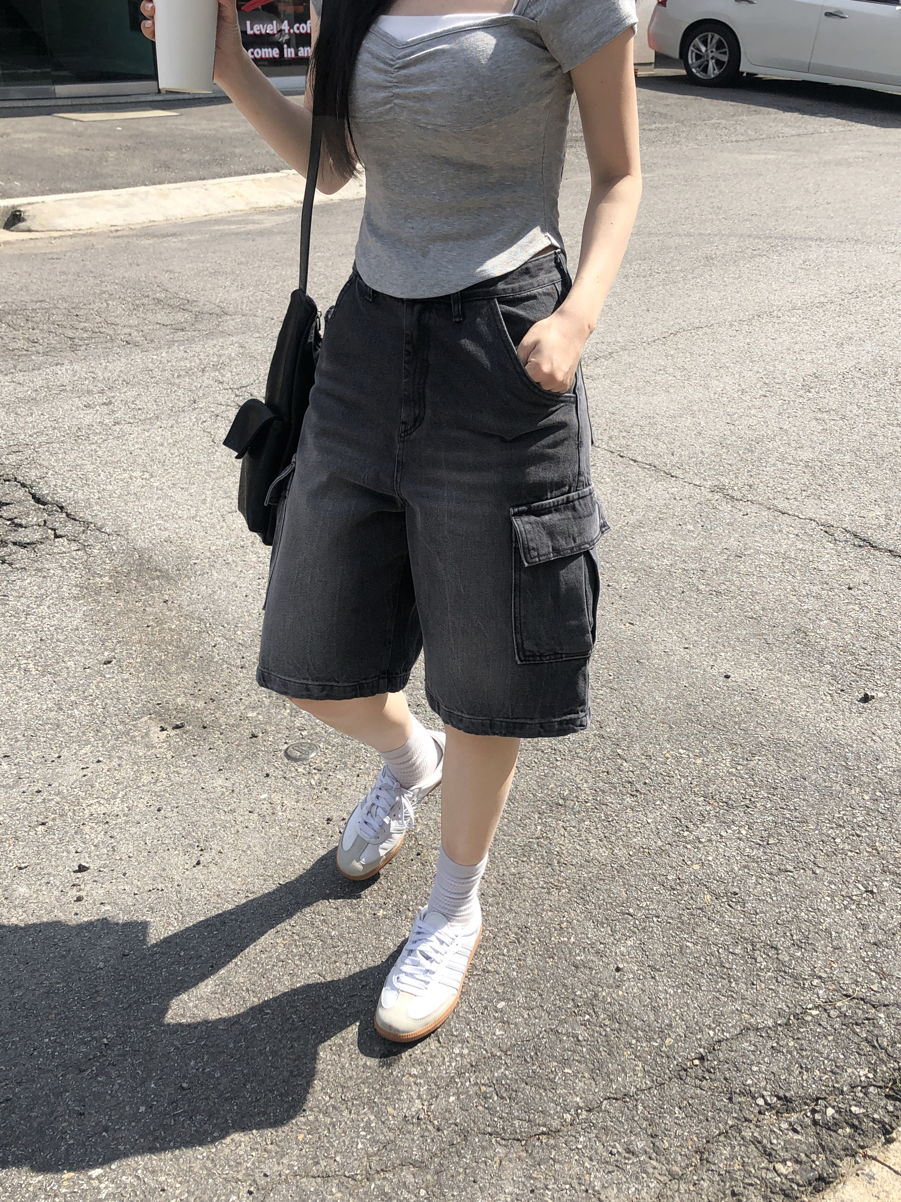 [ユニセックス] デニムカーゴバミューダパンツ(2color)