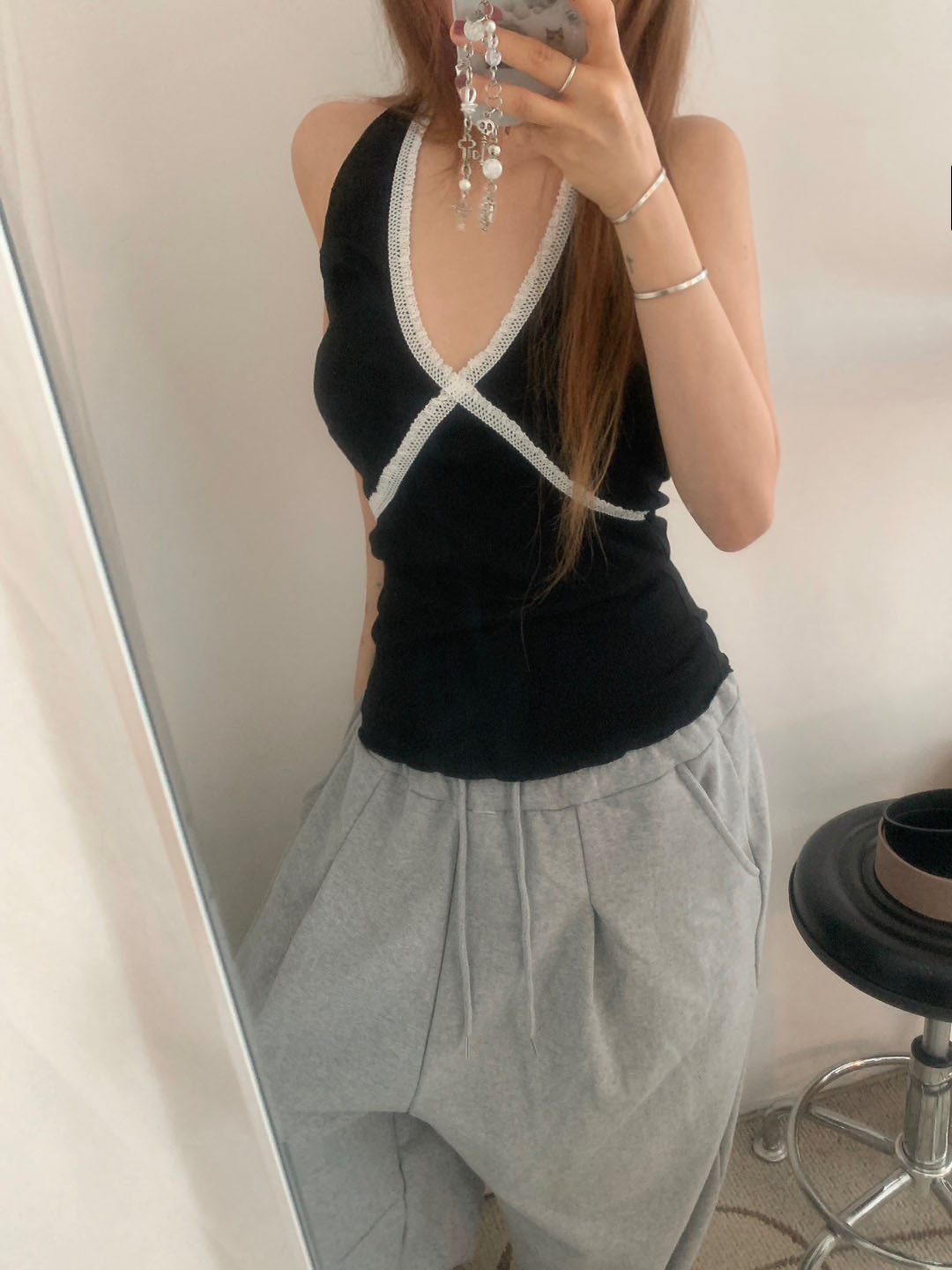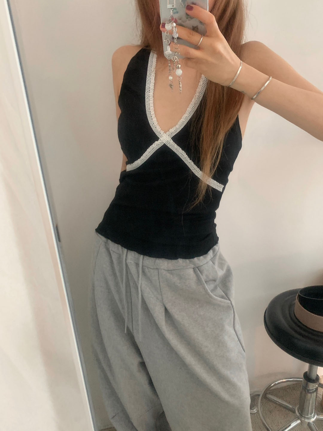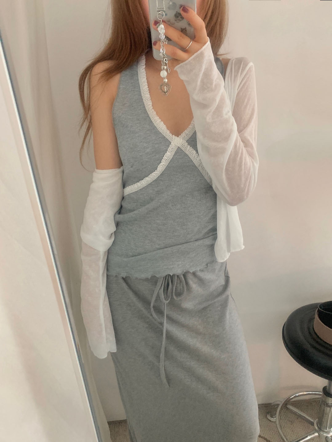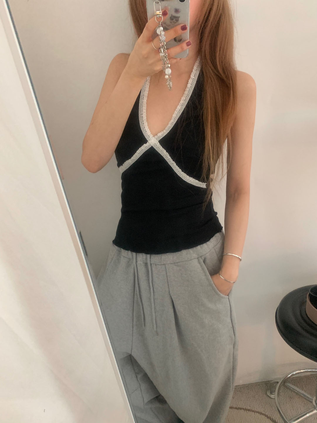 ホルターネックレースノースリーブ
