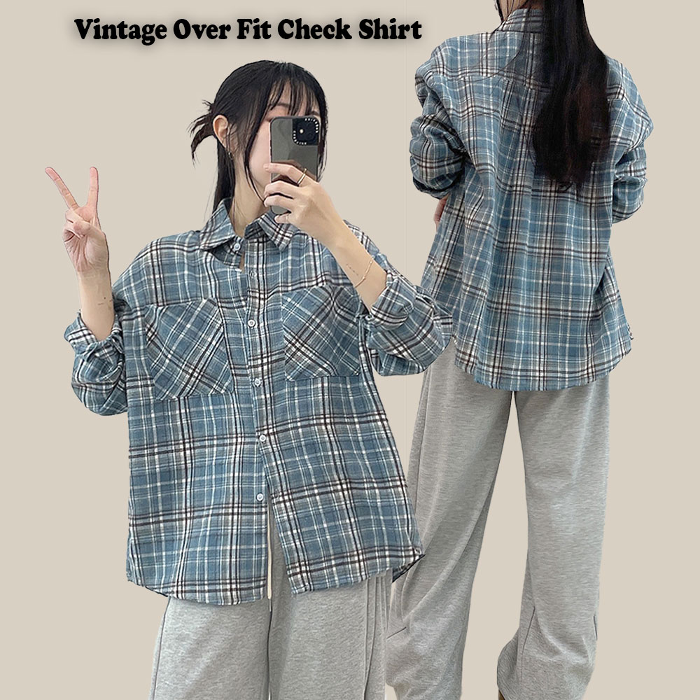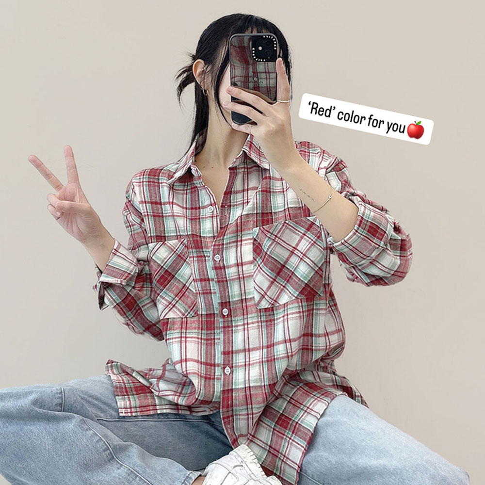[3color]Y2Kストリートレトロポケットチェックシャツ