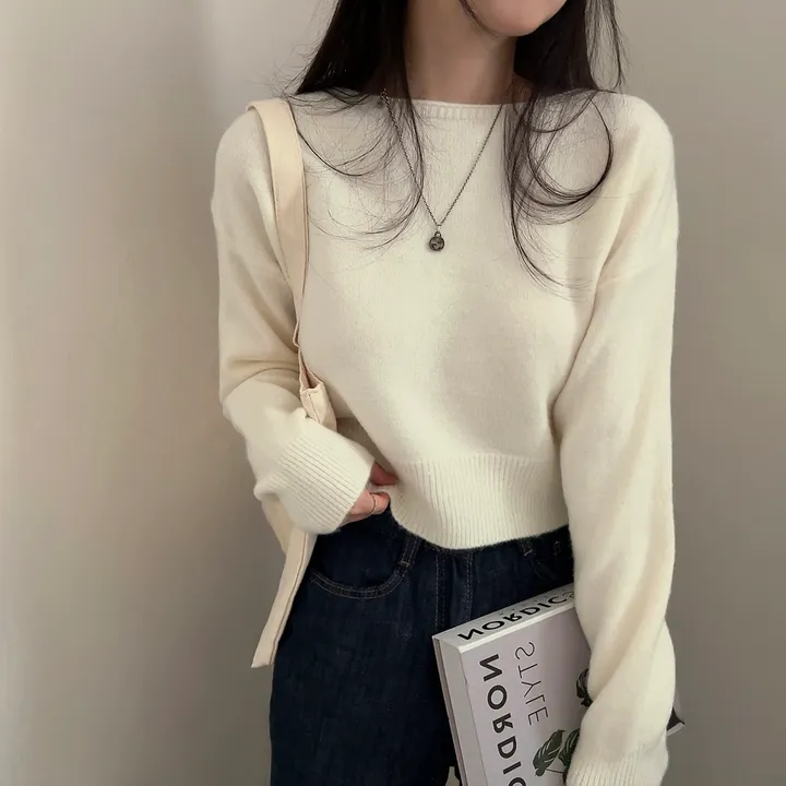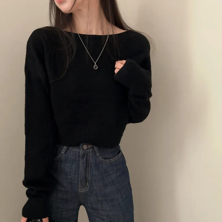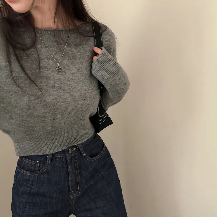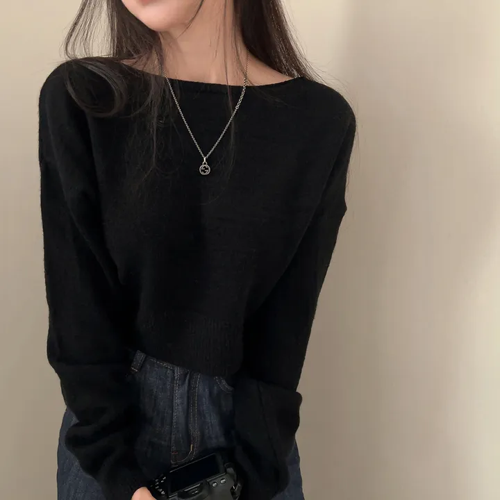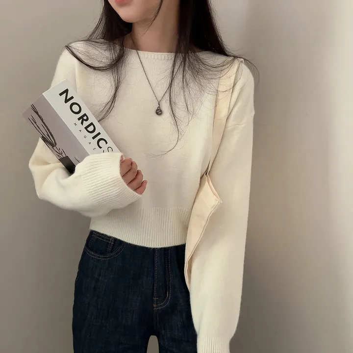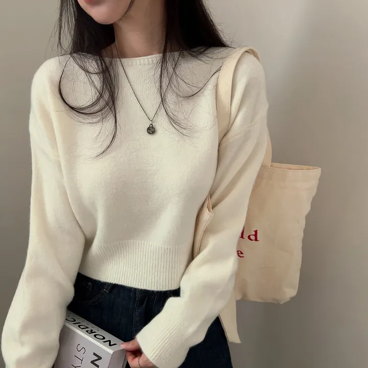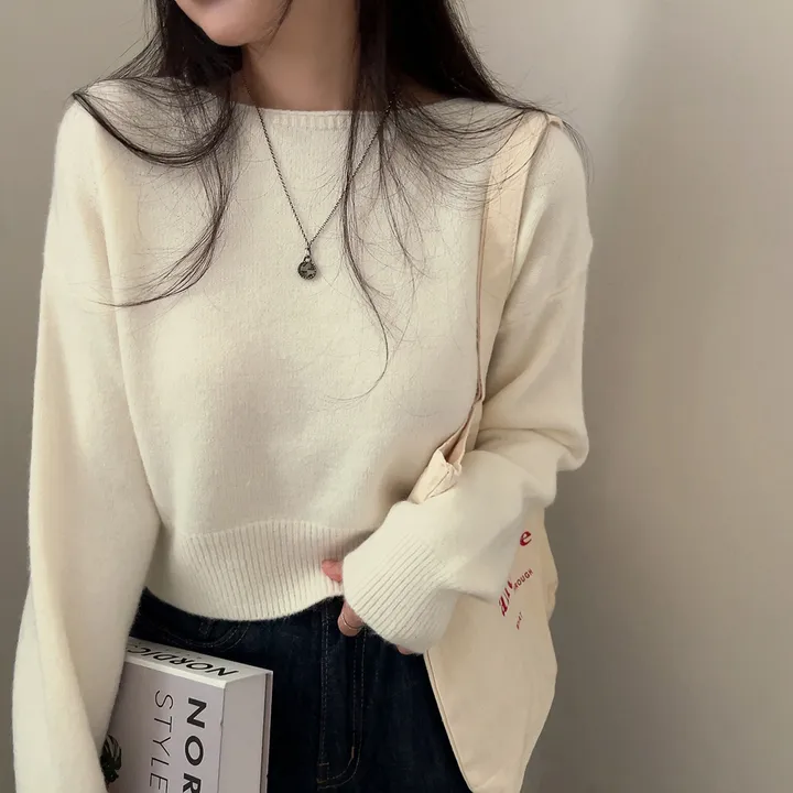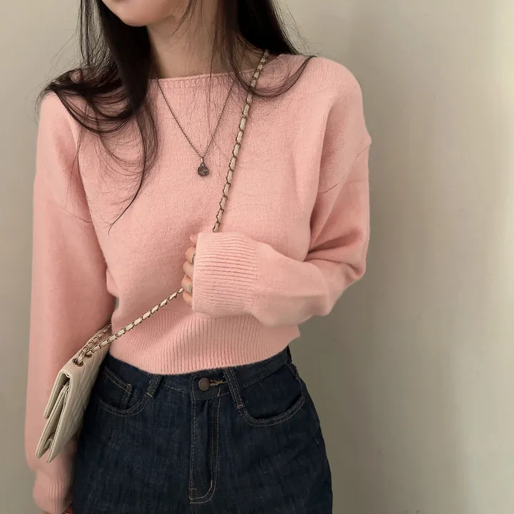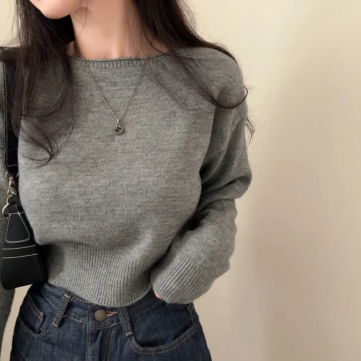 ボートネッククロップドニット