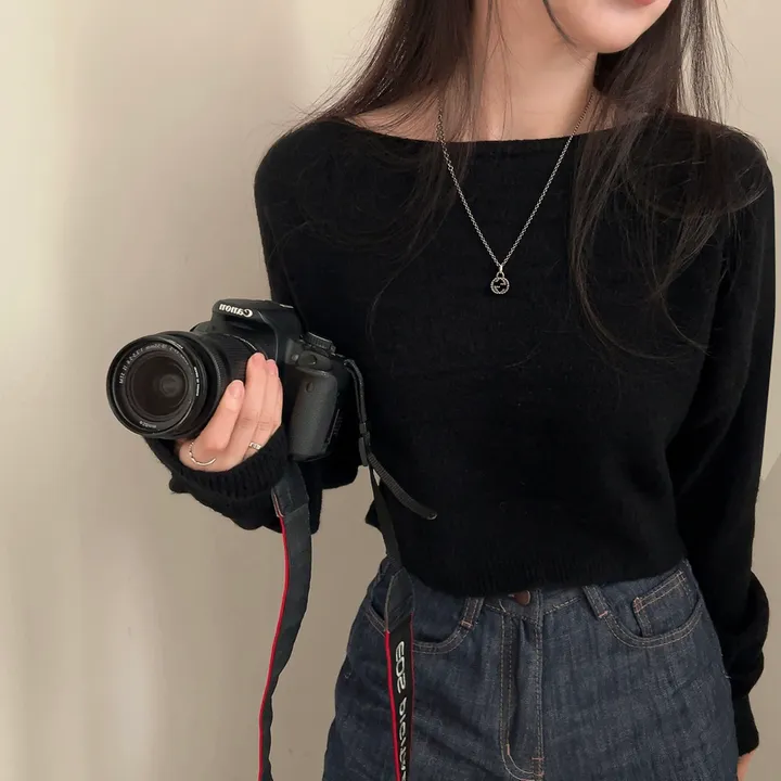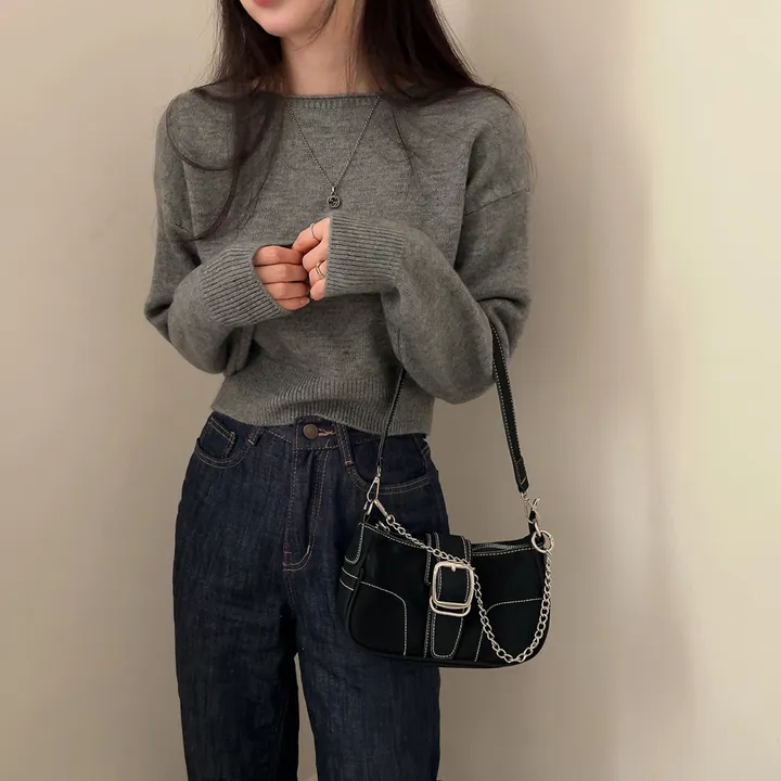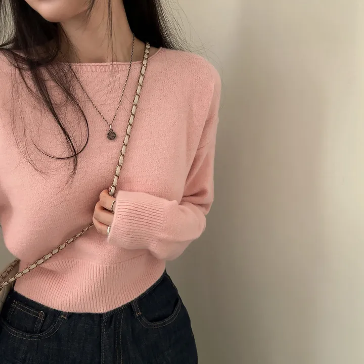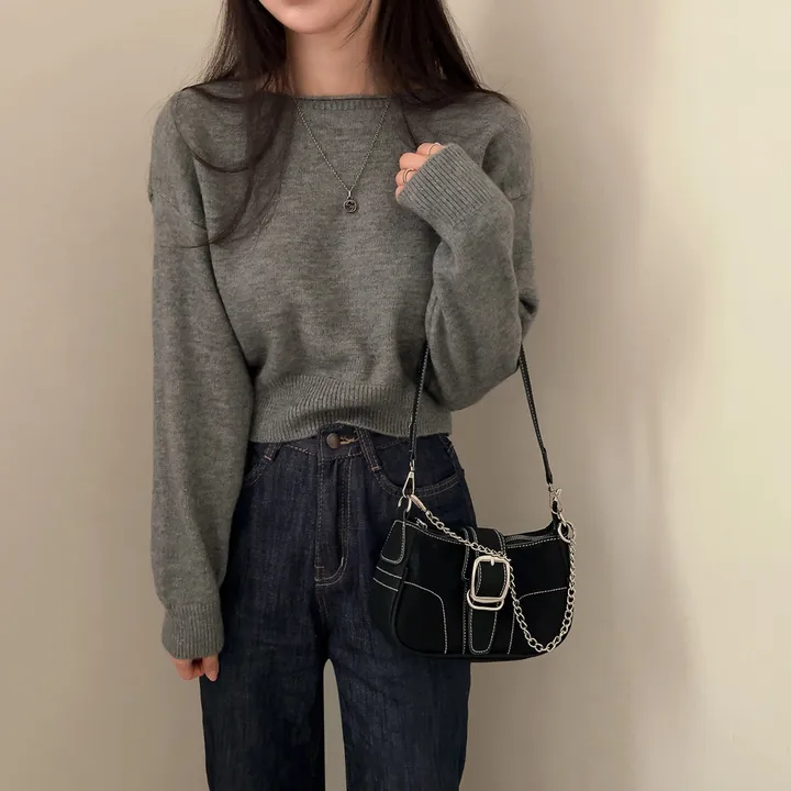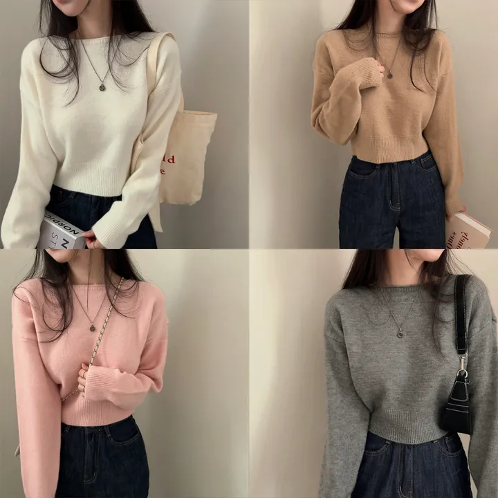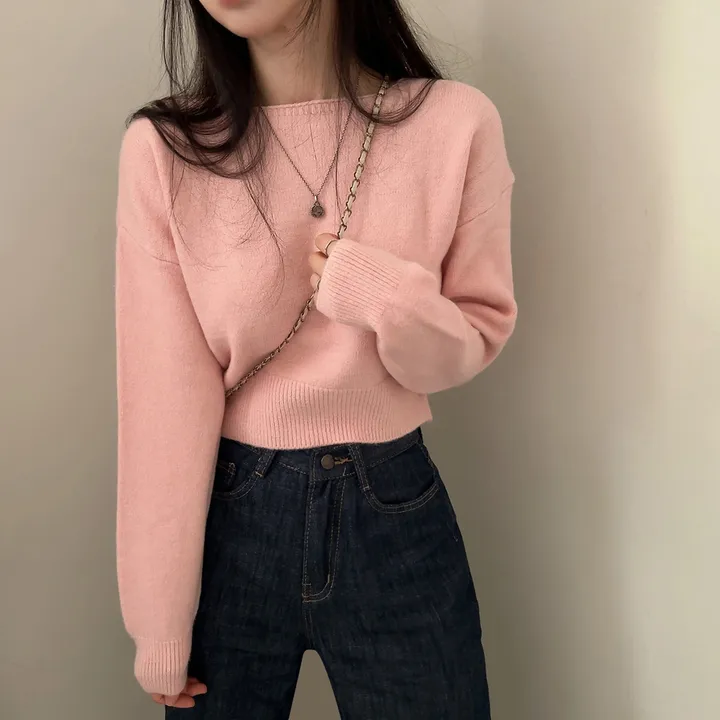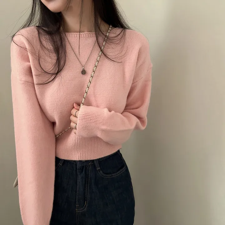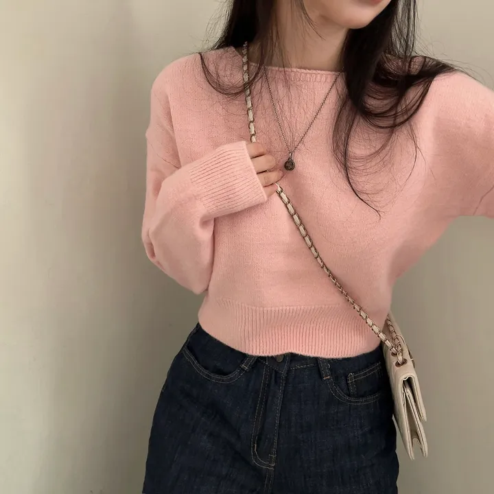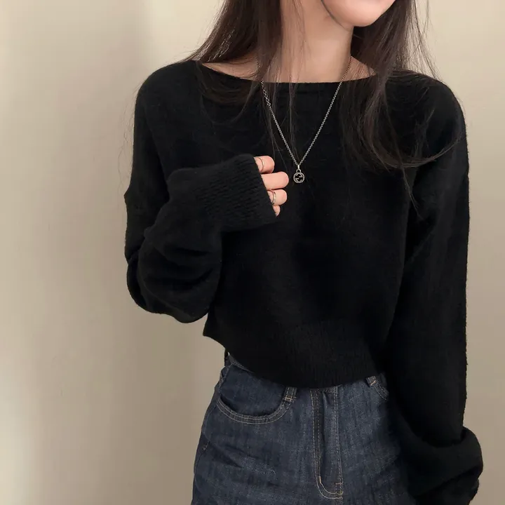 ボートネッククロップドニット