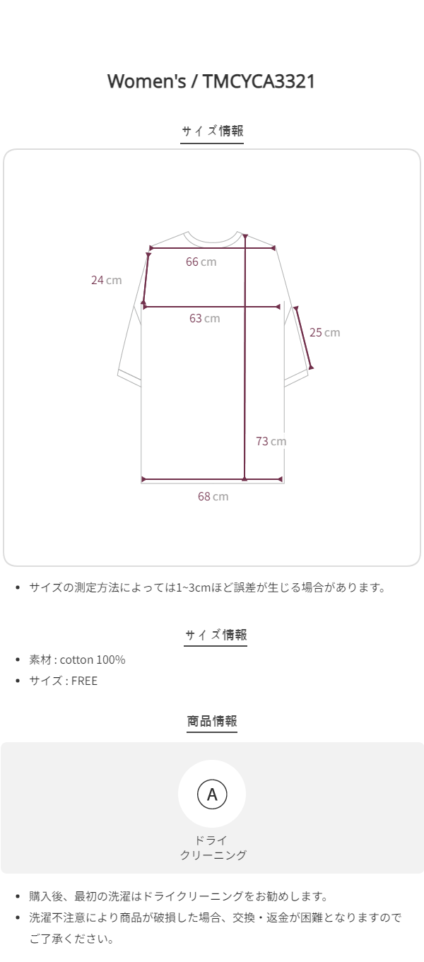 ニット類の場合、他の素材より誤差が生じる場合があります。