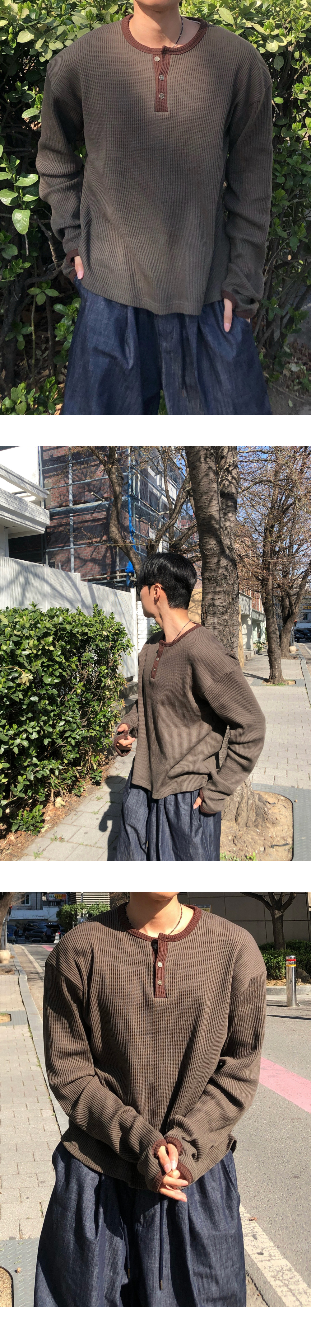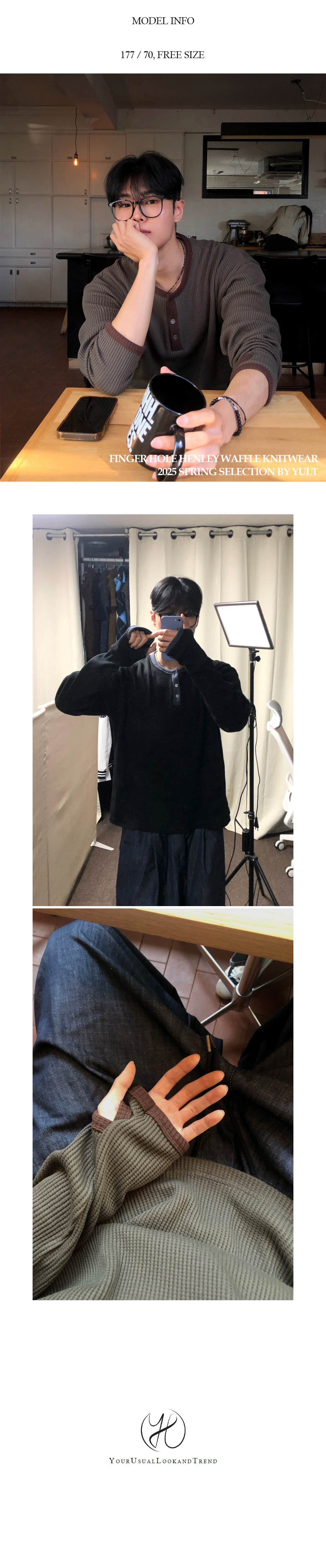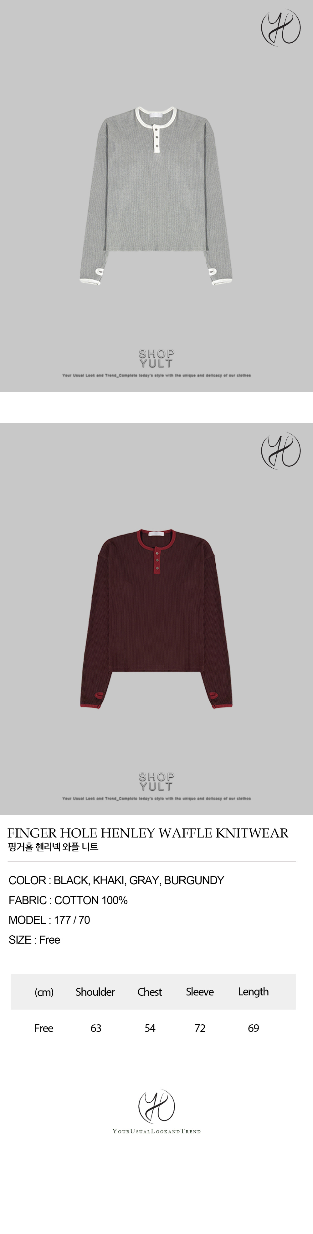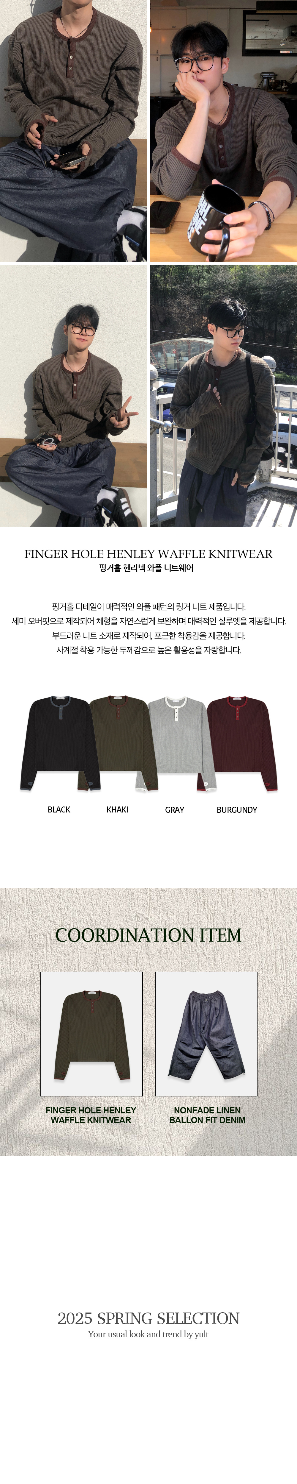 (4color) 指穴 ヘンリーネック ワッフル ニット