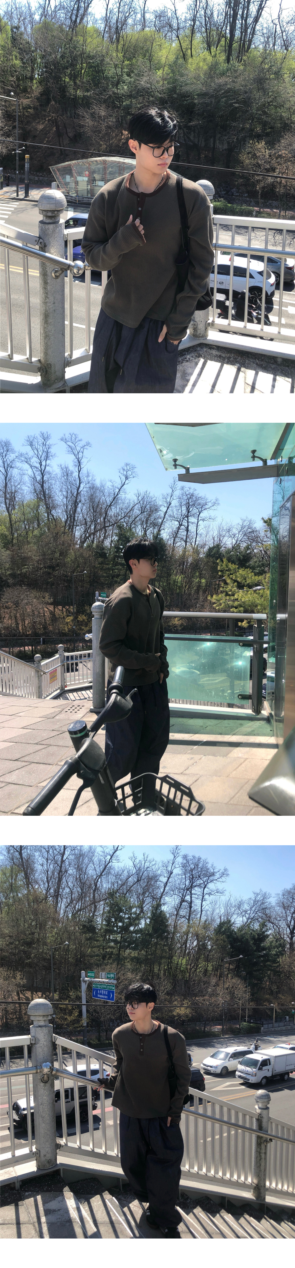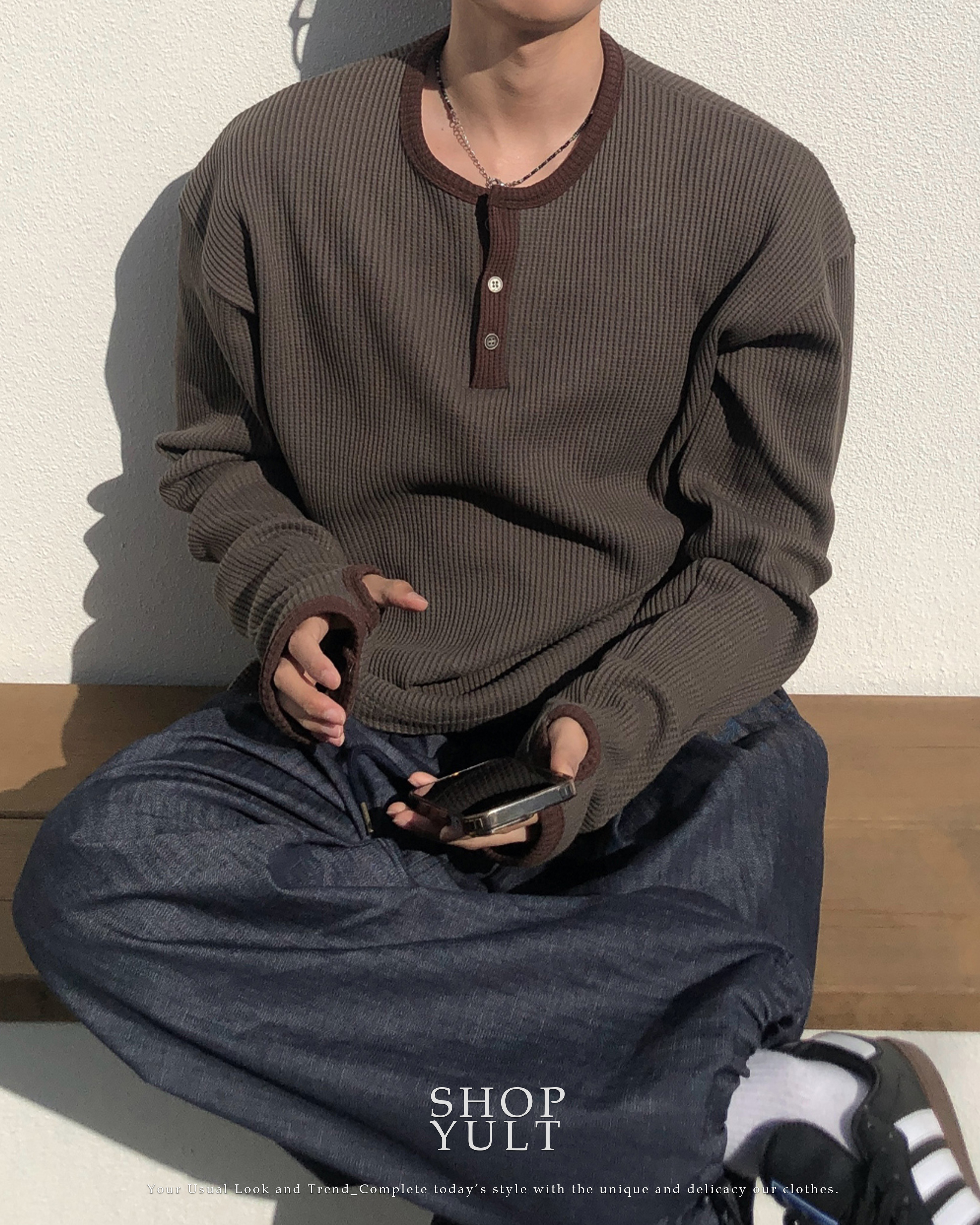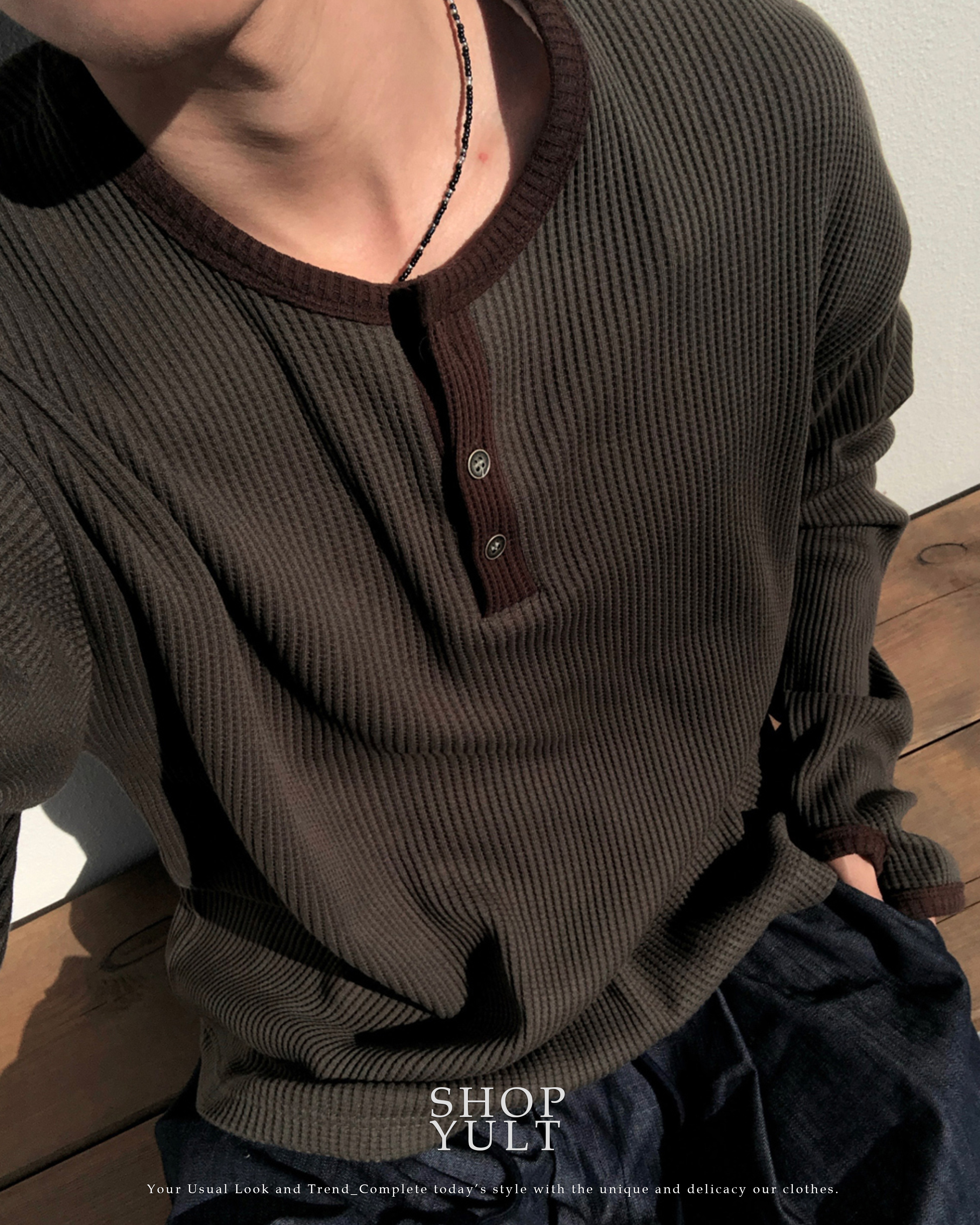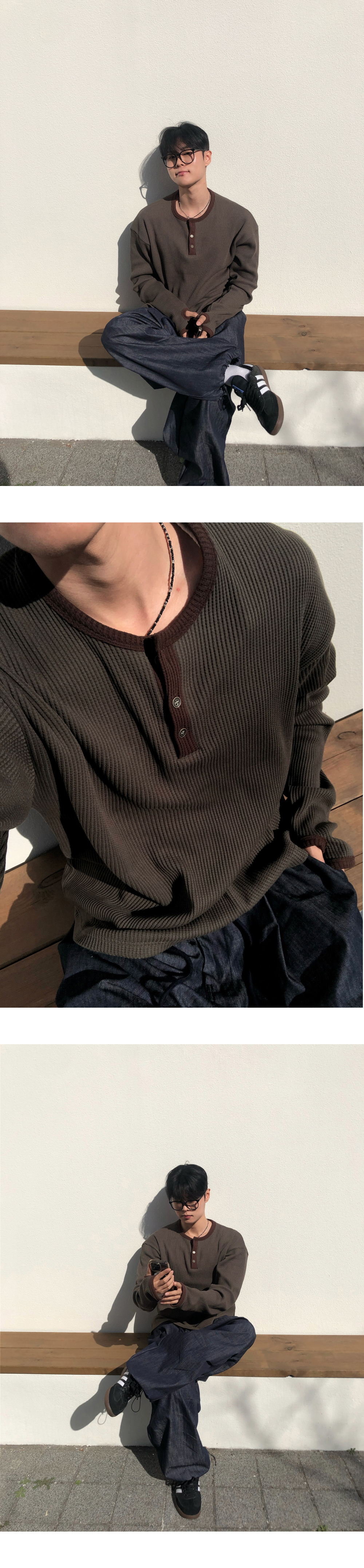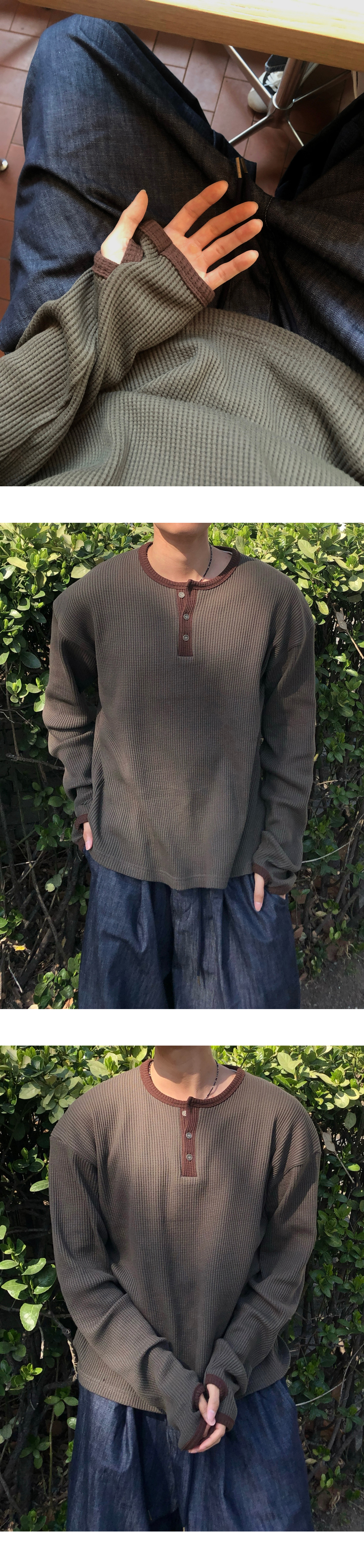 (4color) 指穴 ヘンリーネック ワッフル ニット