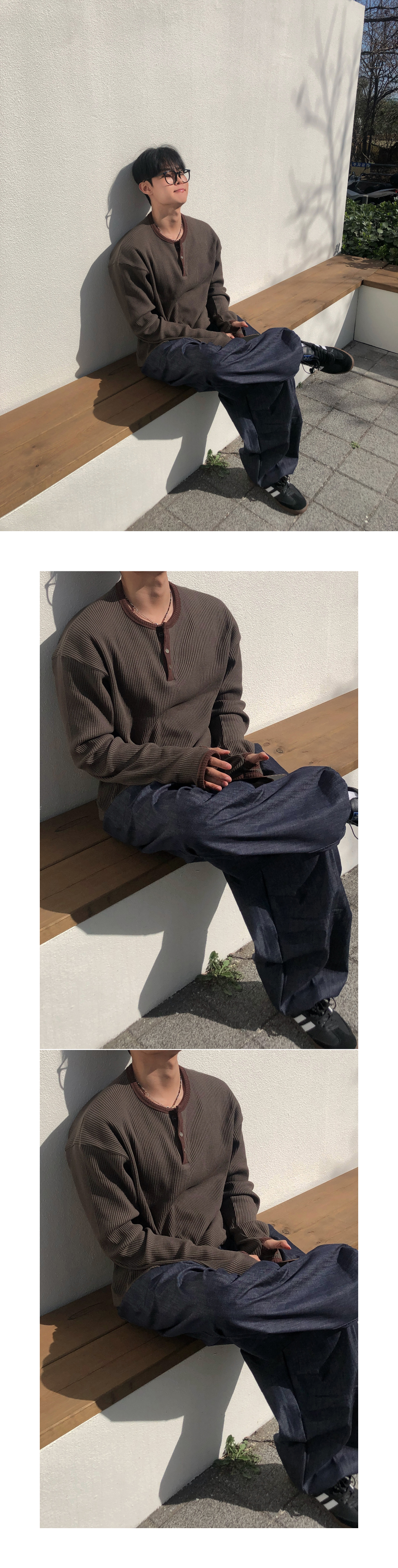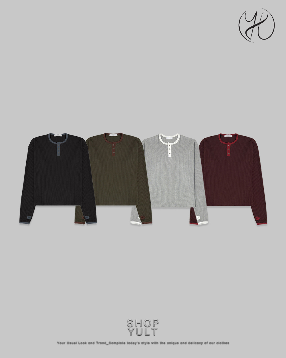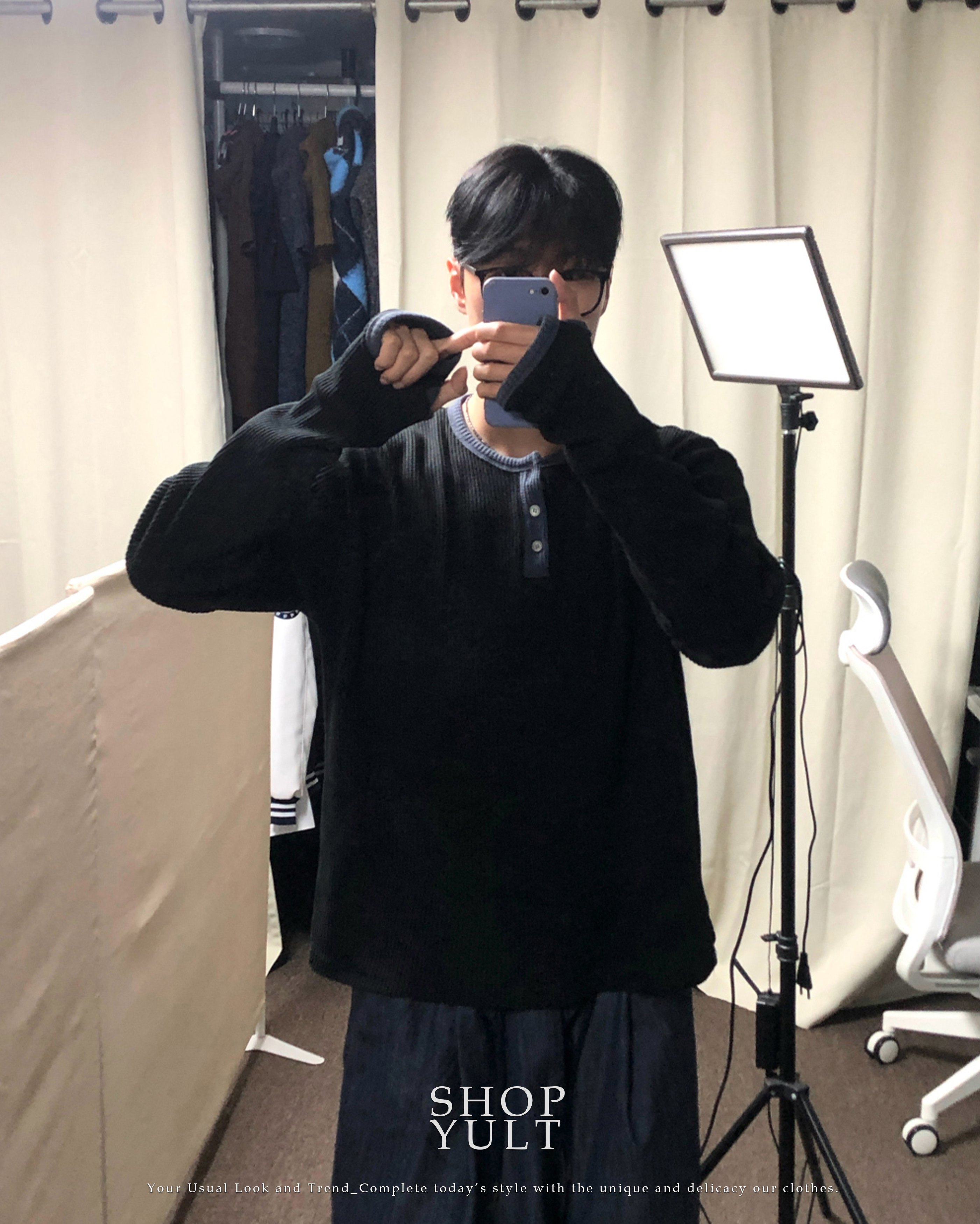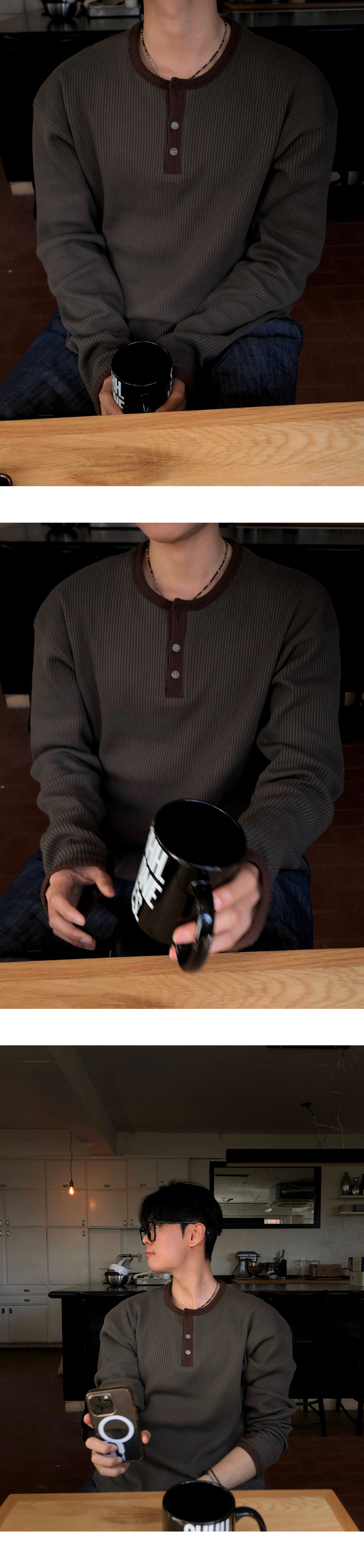 (4color) 指穴 ヘンリーネック ワッフル ニット