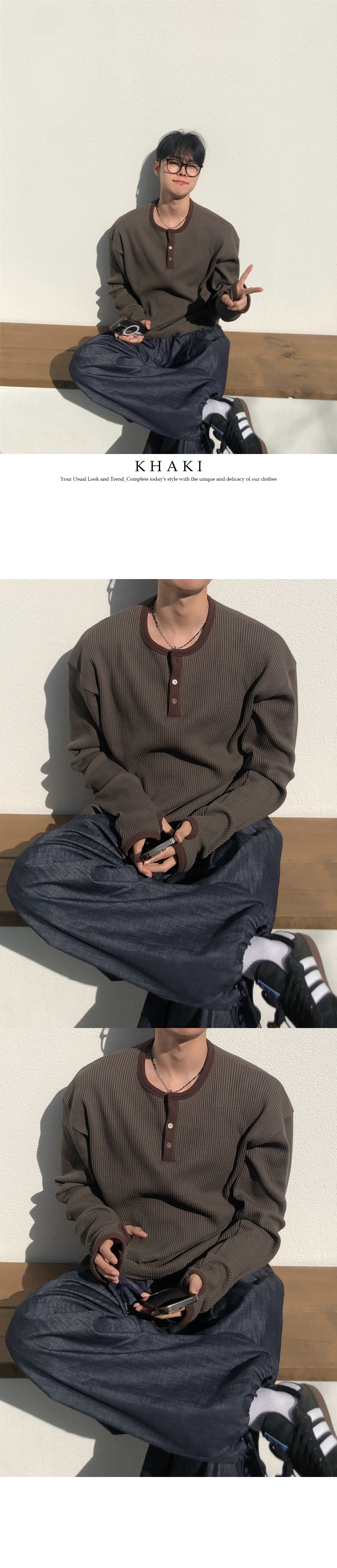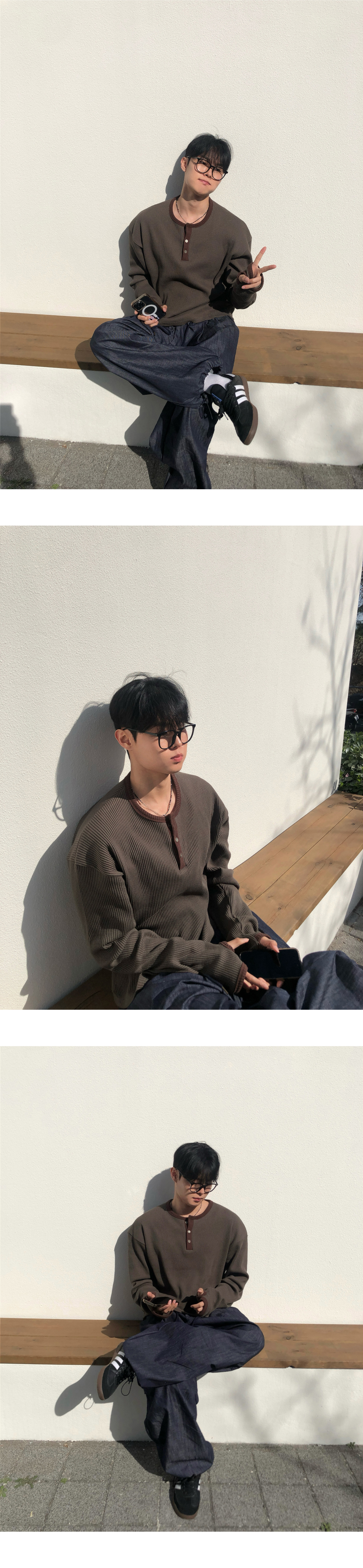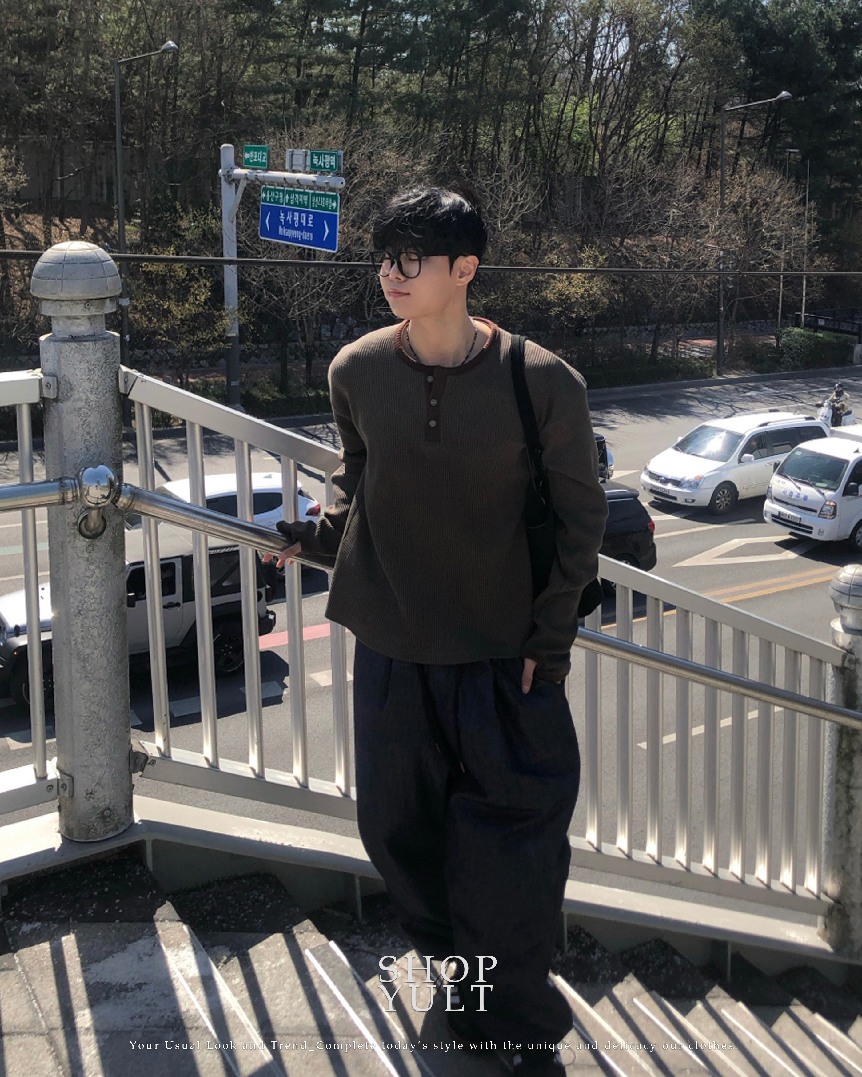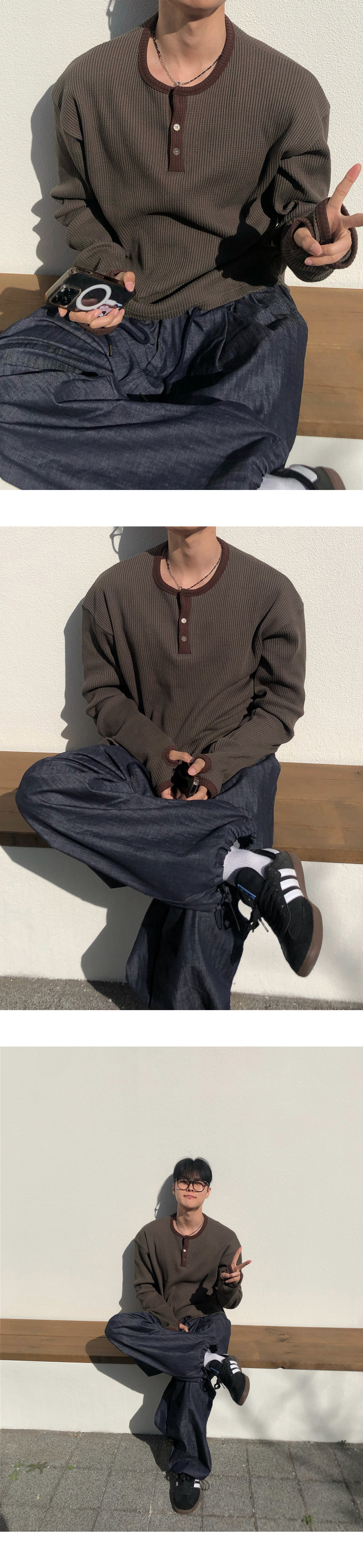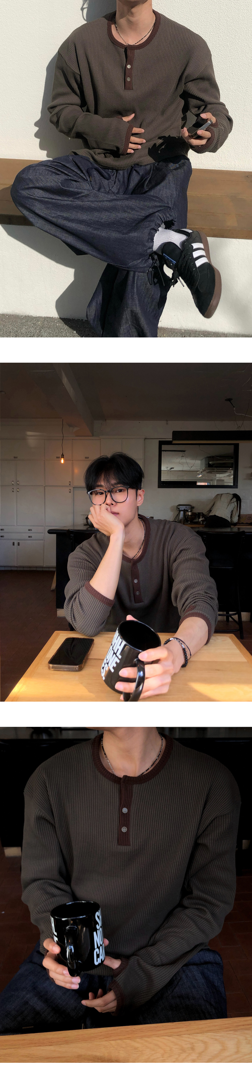 (4color) 指穴 ヘンリーネック ワッフル ニット