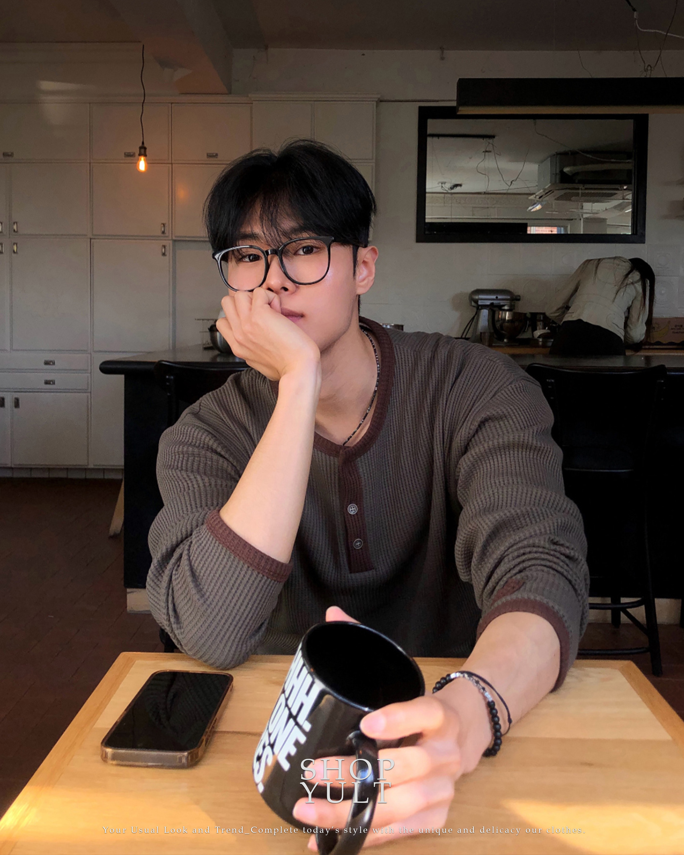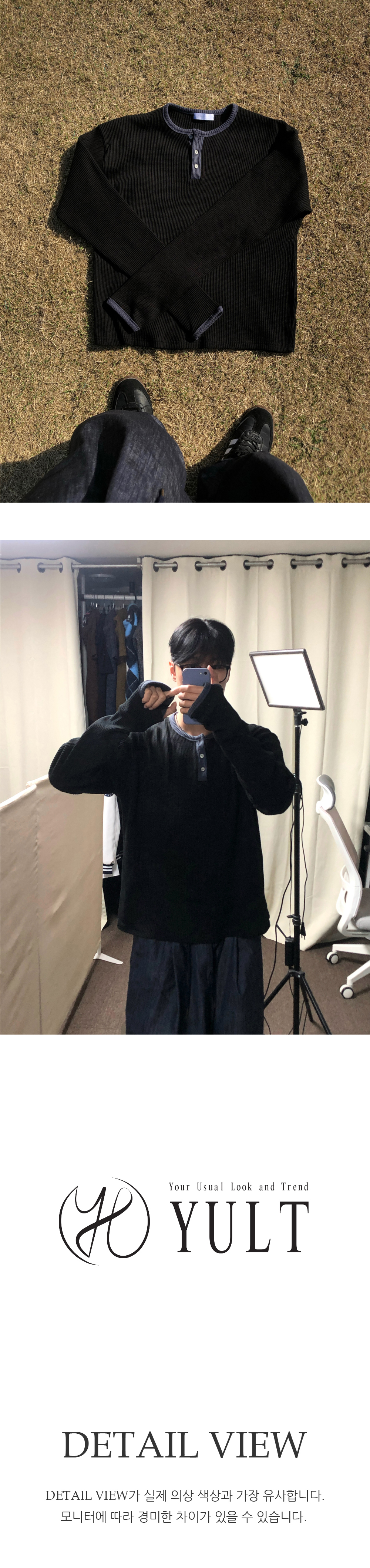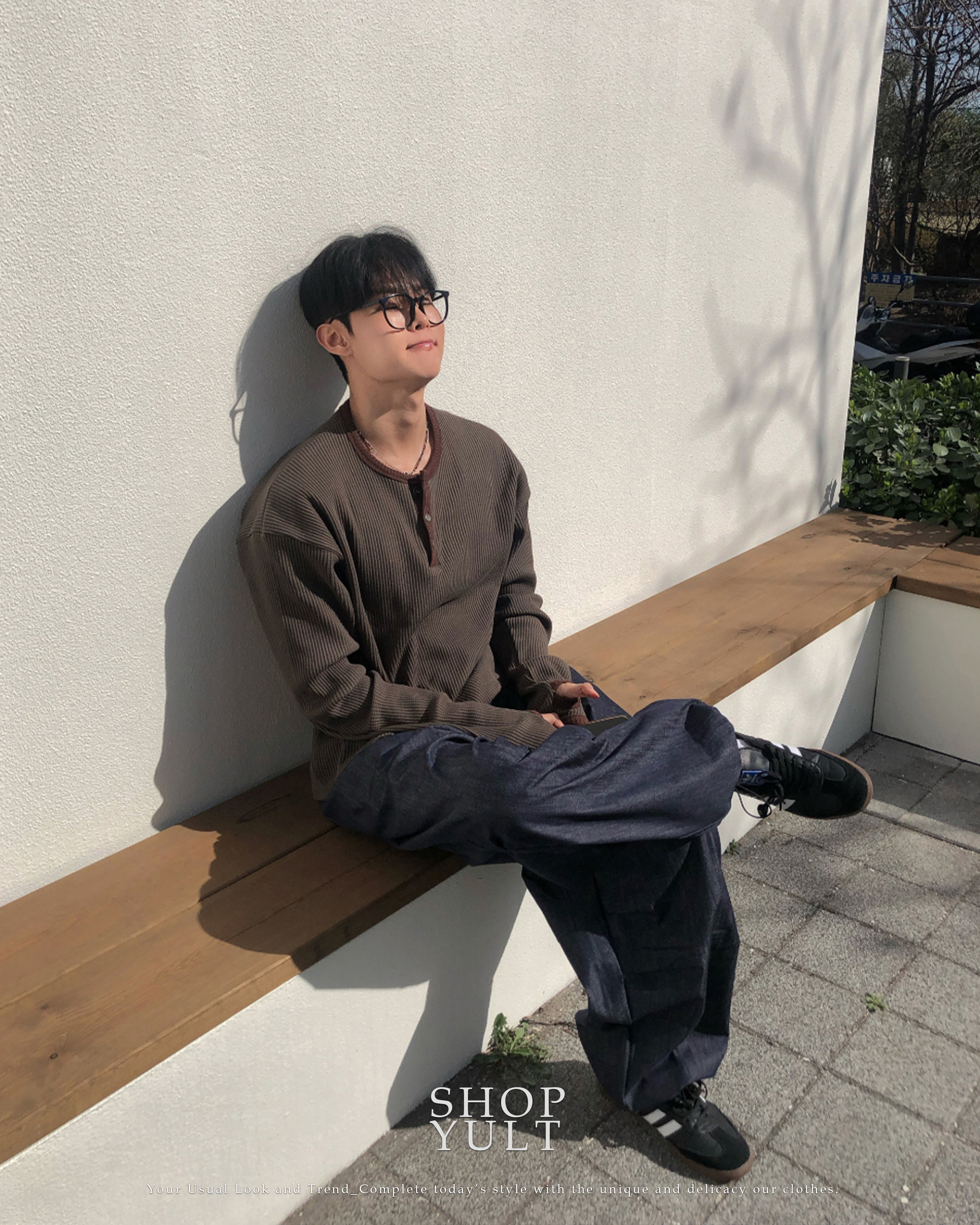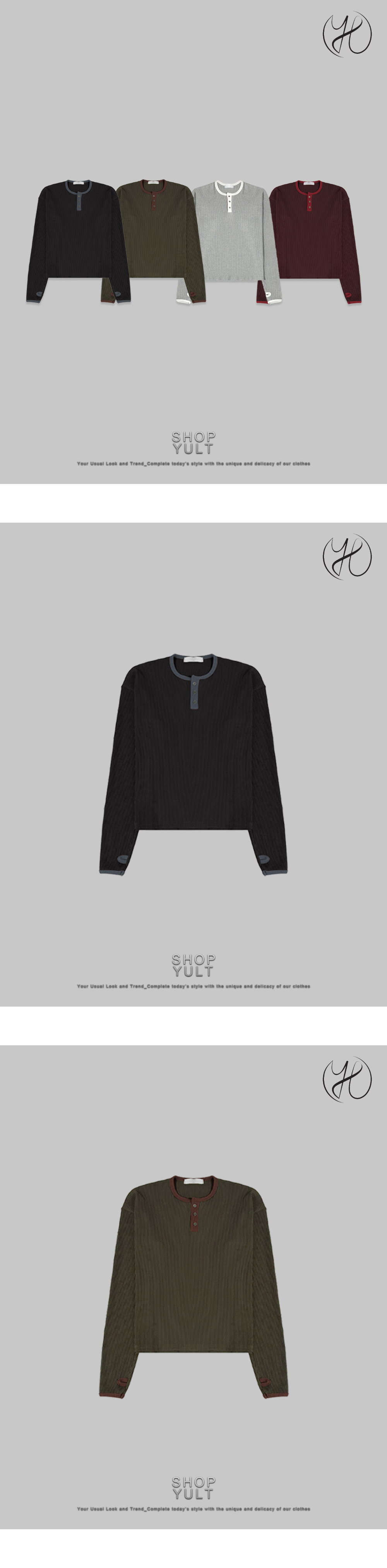 (4color) 指穴 ヘンリーネック ワッフル ニット