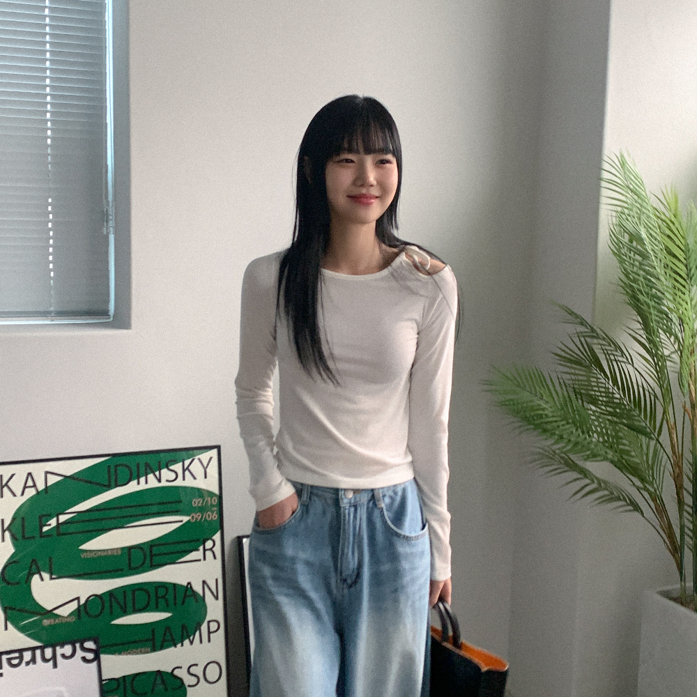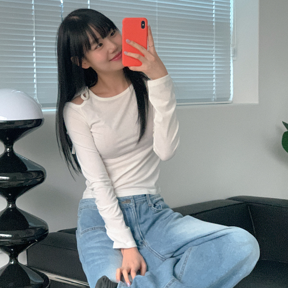 リボンワンオフショル長袖Tシャツ