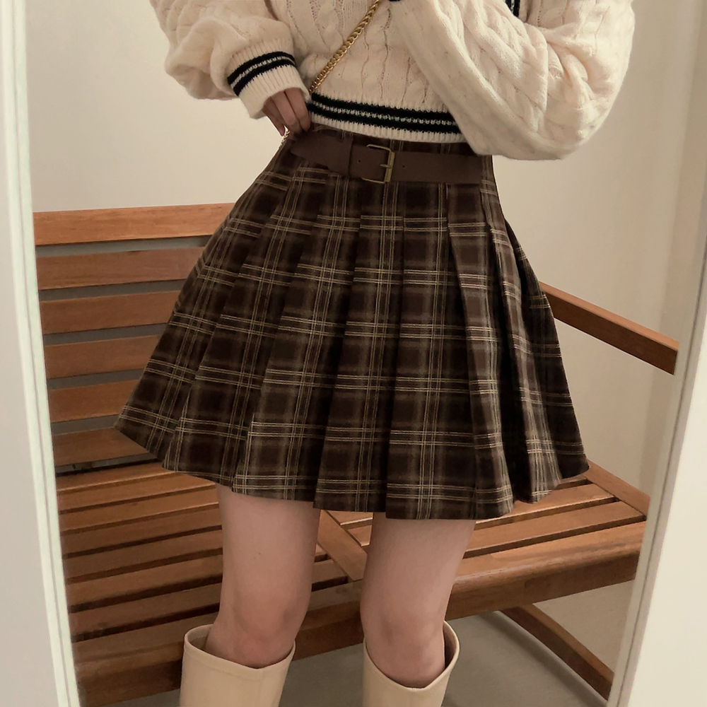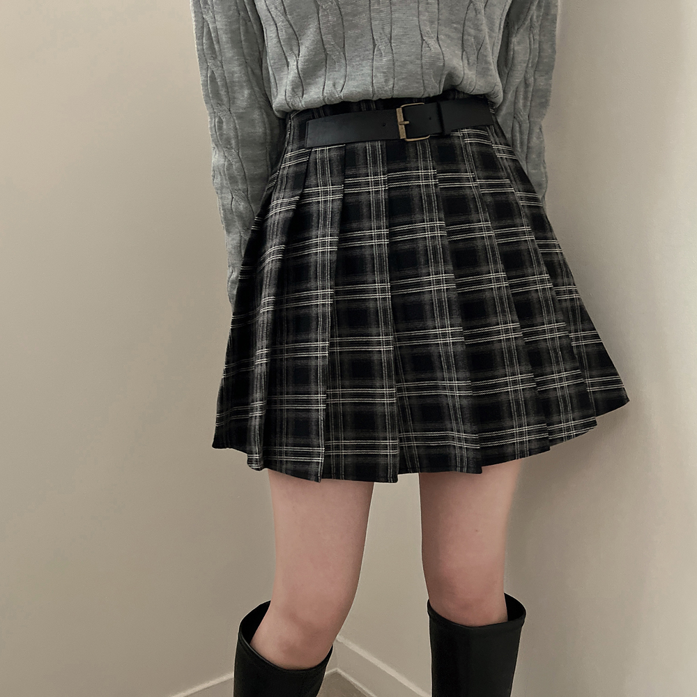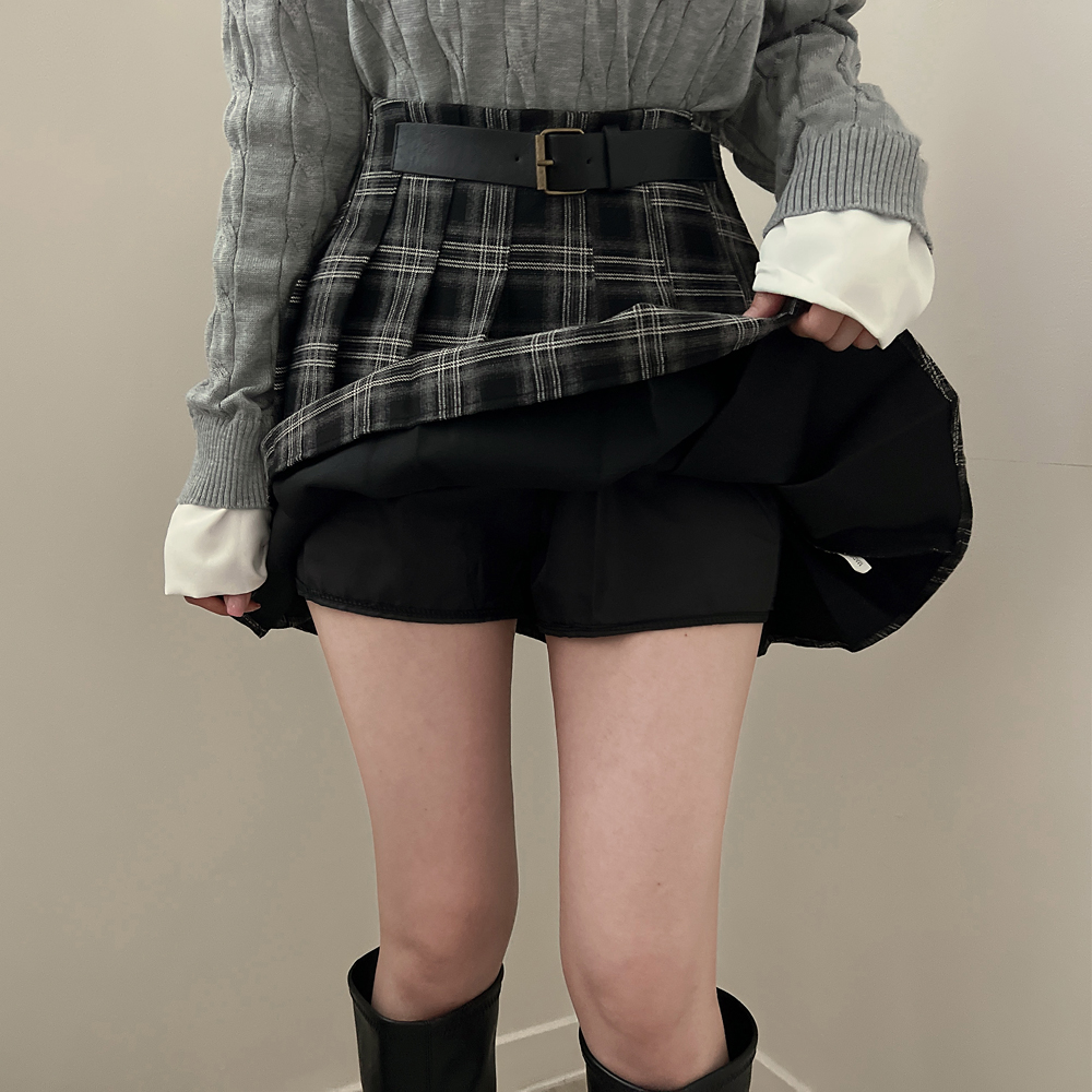 [インナーパンツo]チェックベルトベルクロテニスシャーリングAラインミニスカート