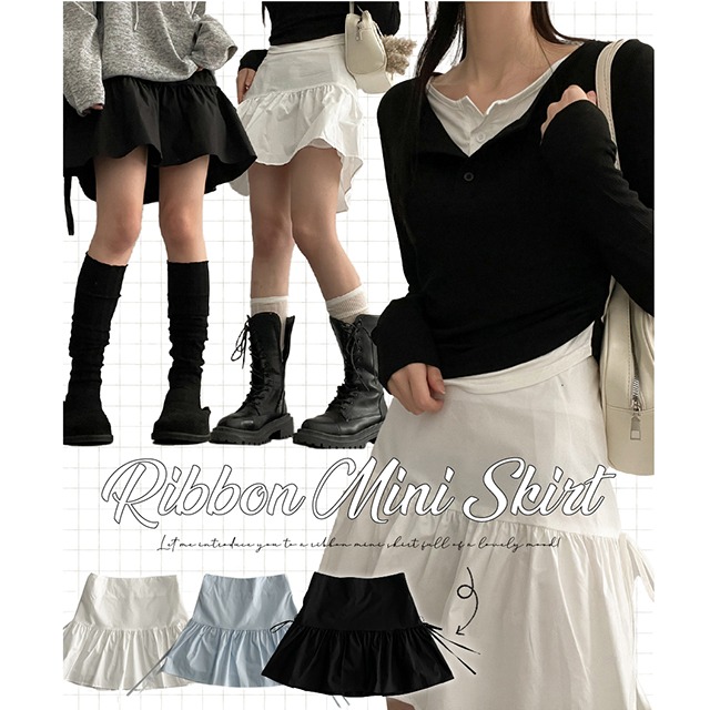 リボンフレアミニスカート(3color)