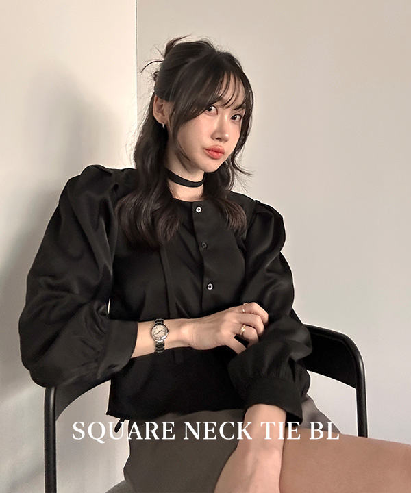 【オケージョン】シルキースクエアネックタイブラウス