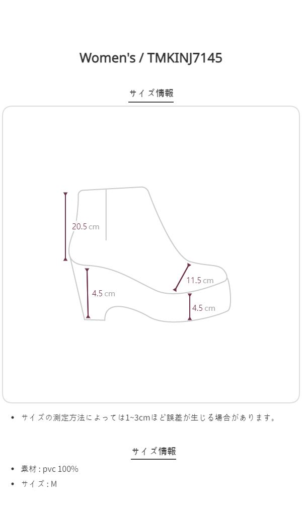サイズの測定方法によっては0.5~1cmほど誤差が生じる場合があります。