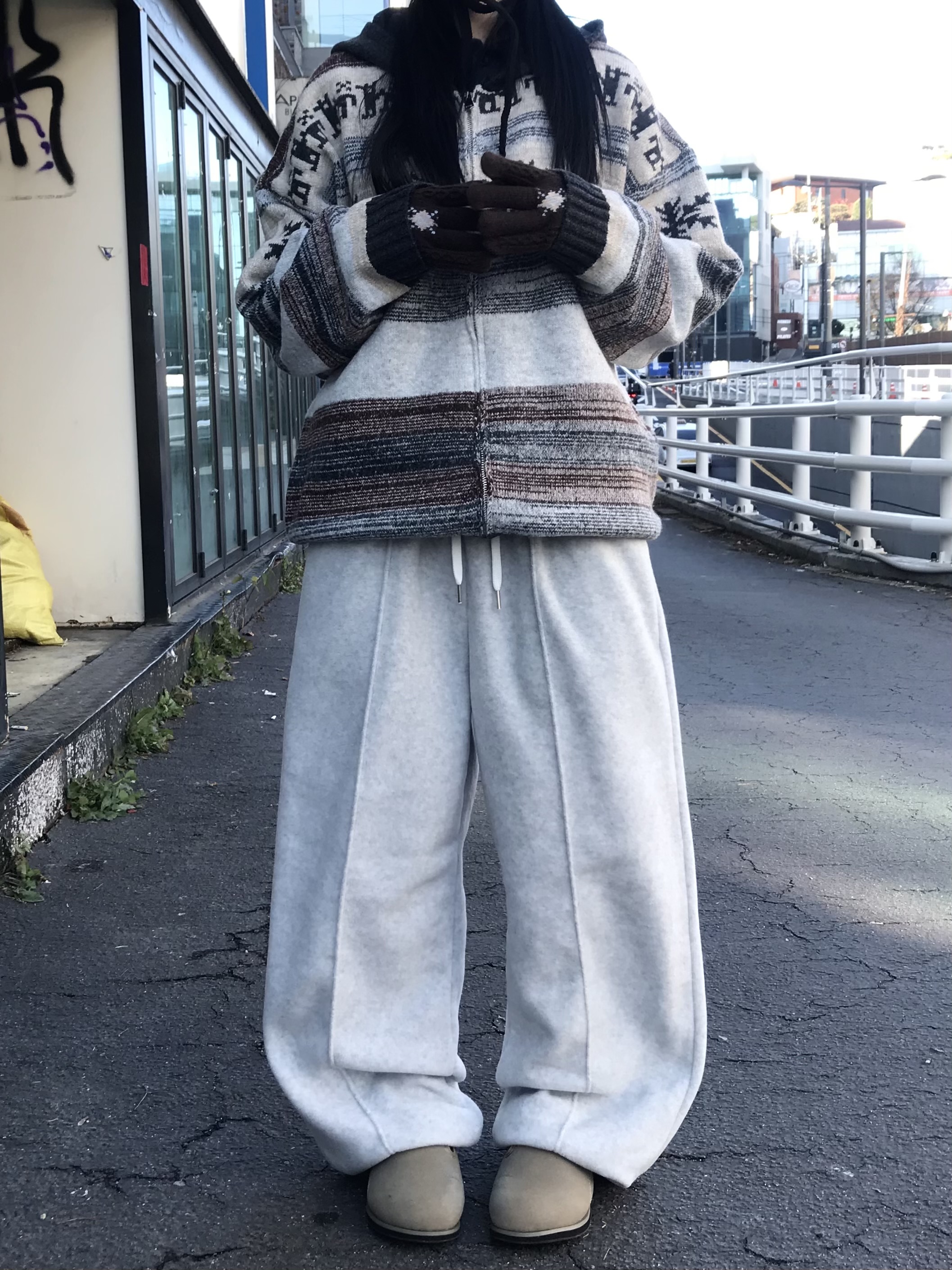 (3 color) フリース タック入り スウェットパンツ