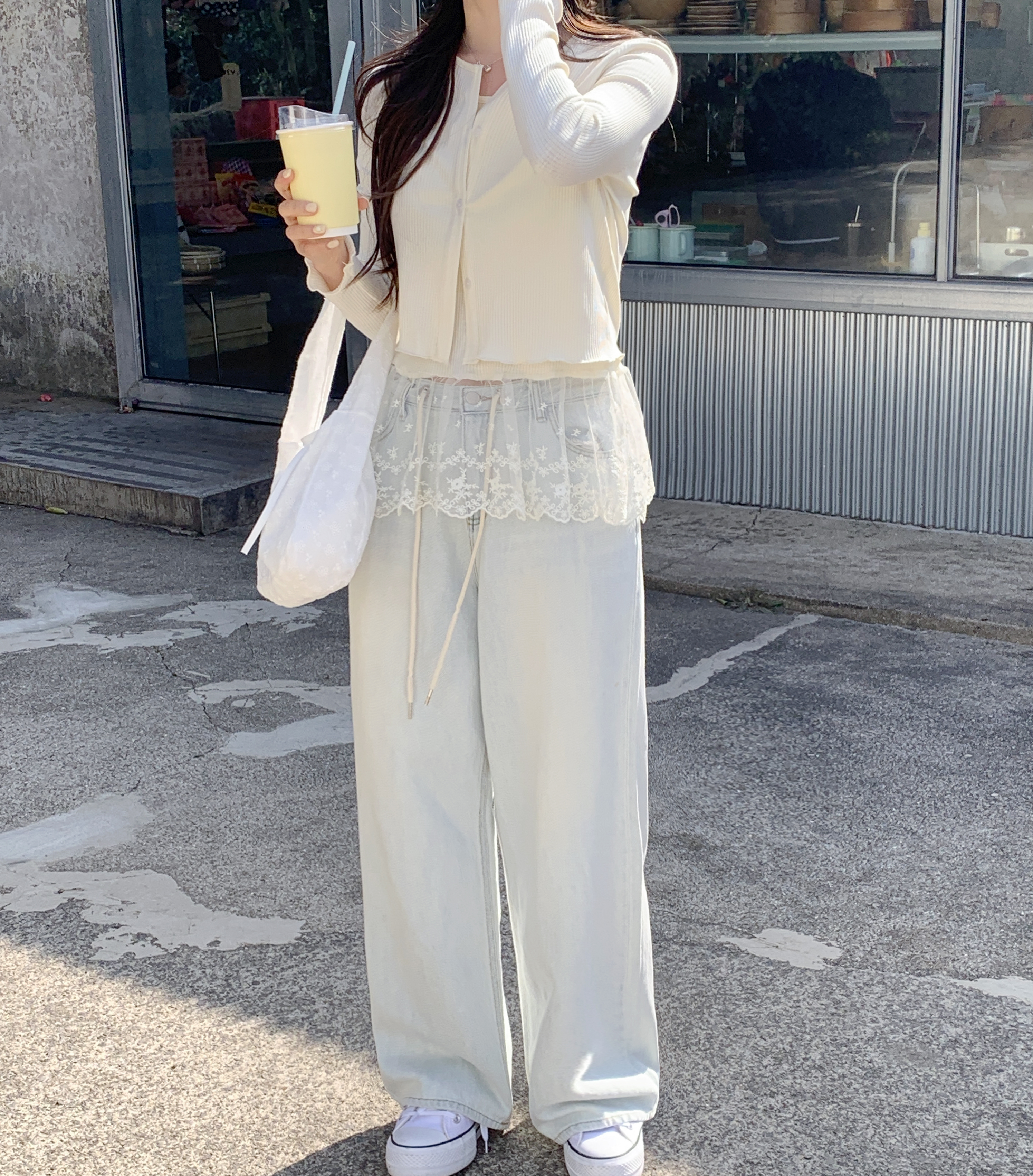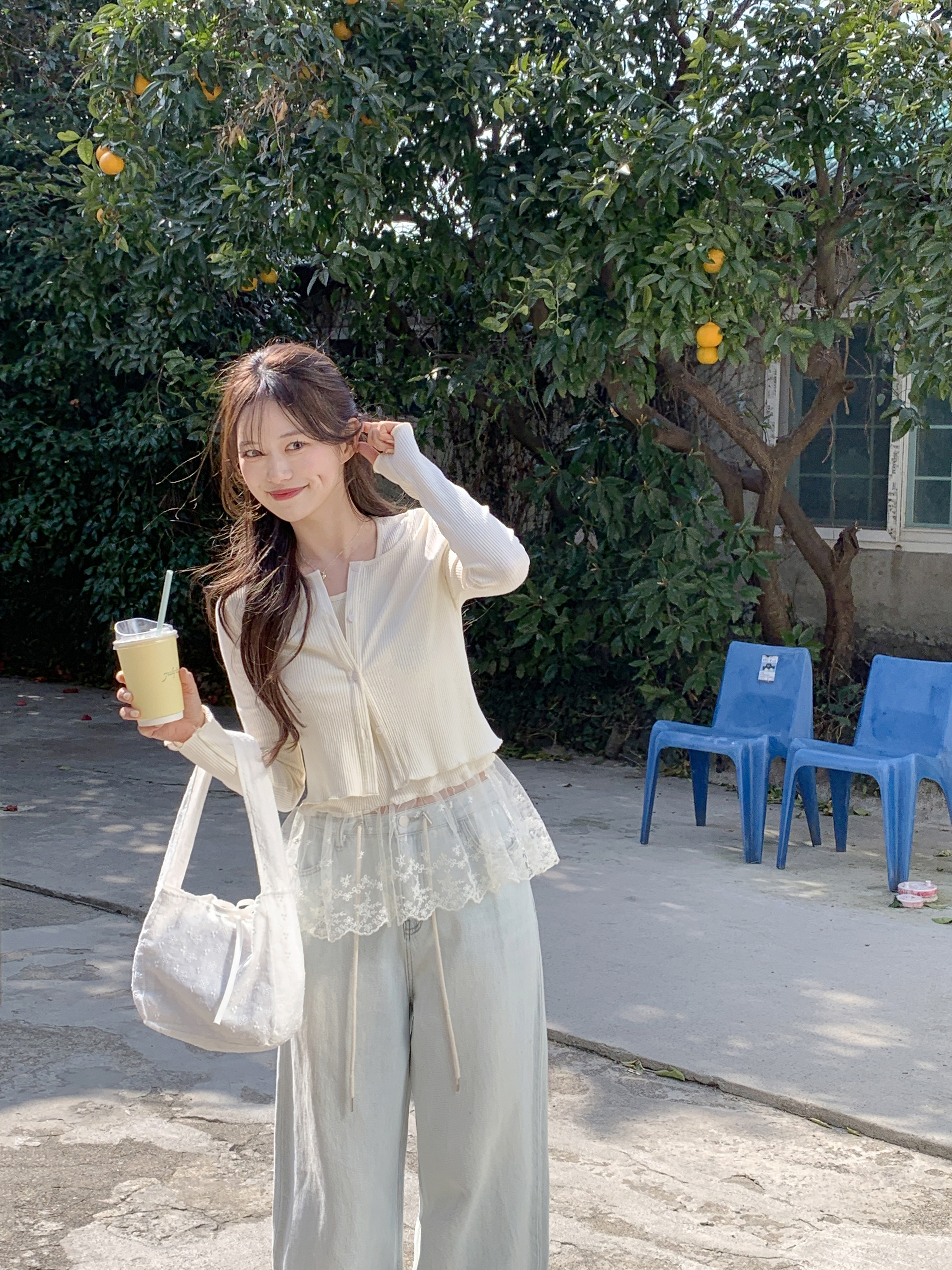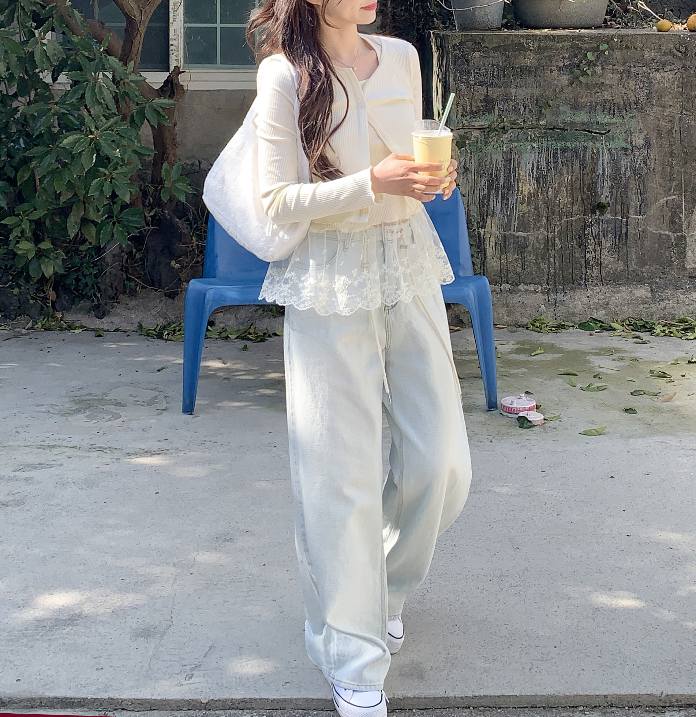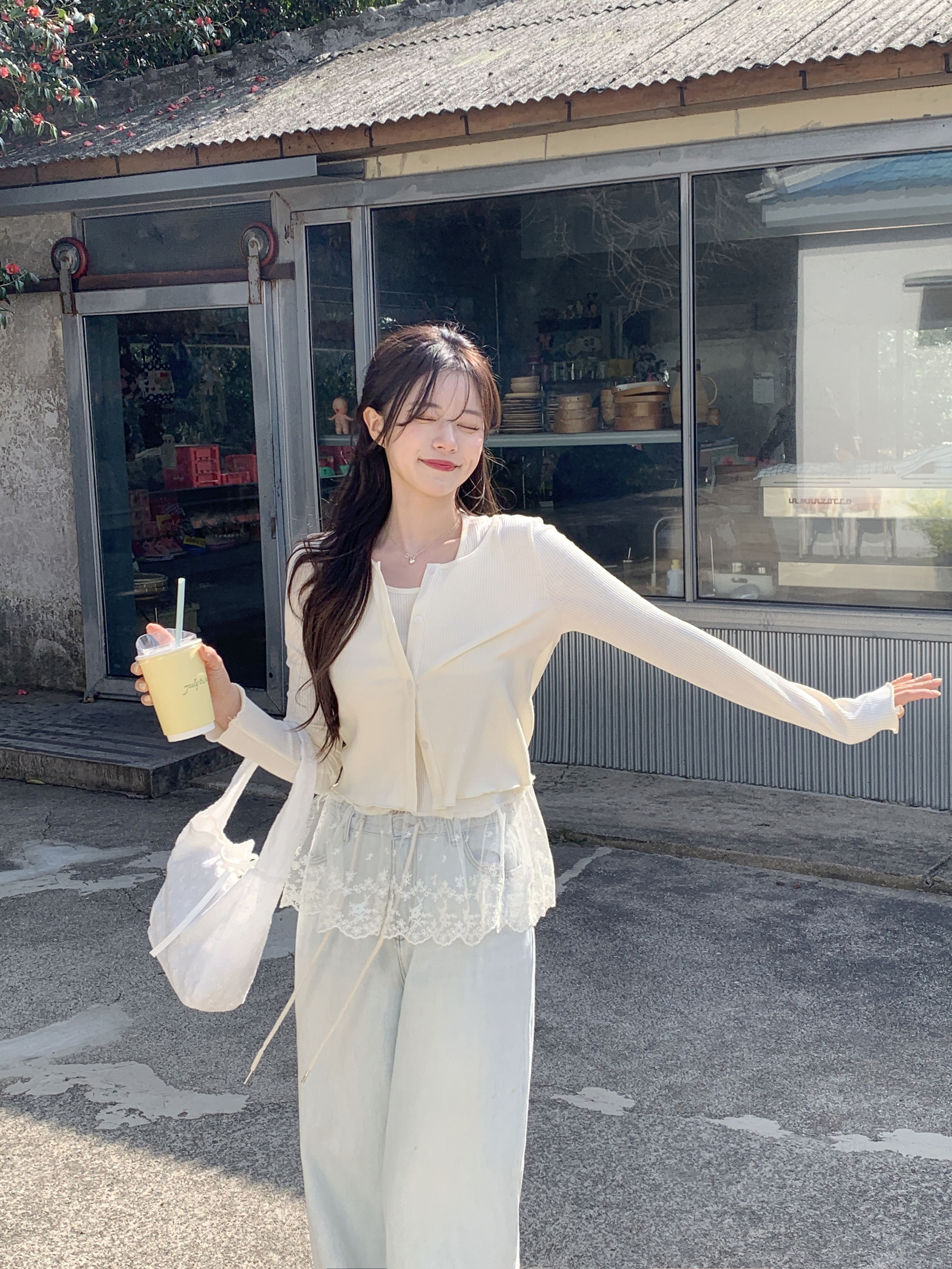 [2pcs]バニラレースノースリーブカーディガンセット