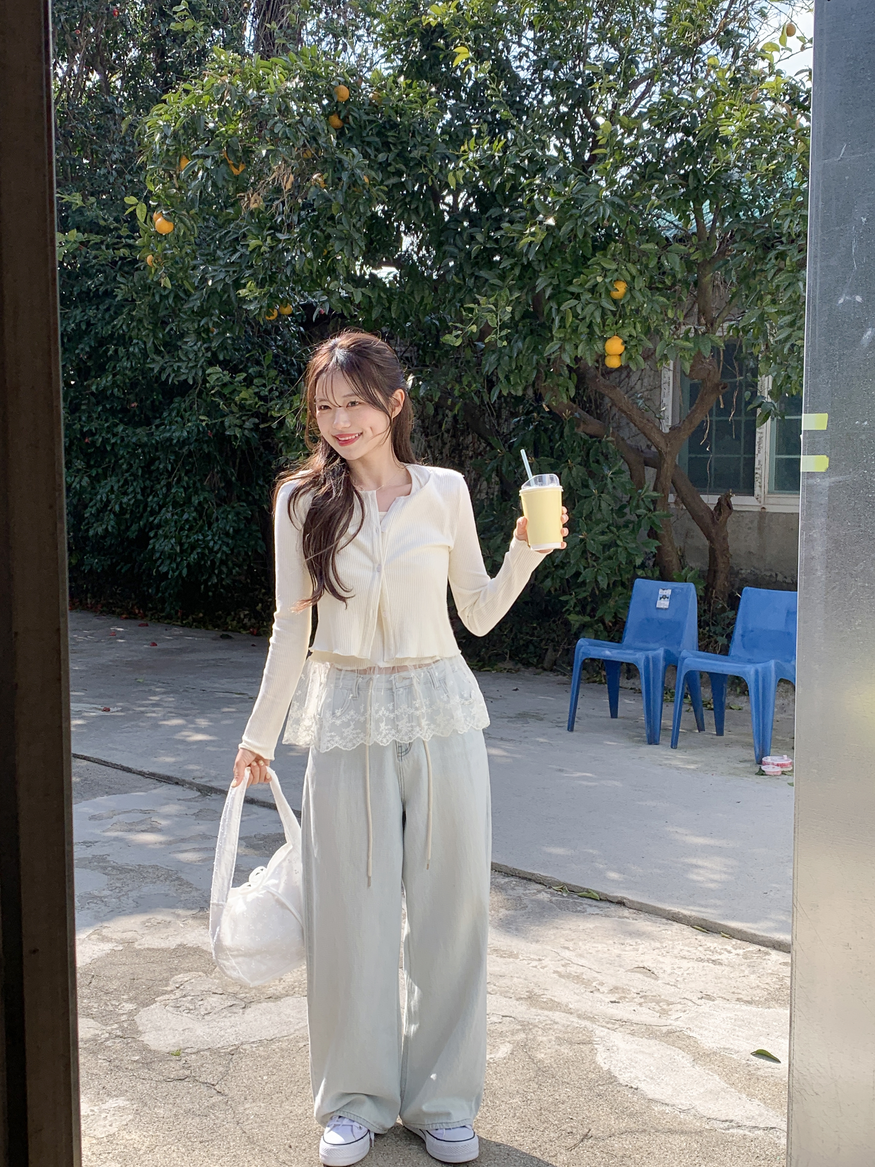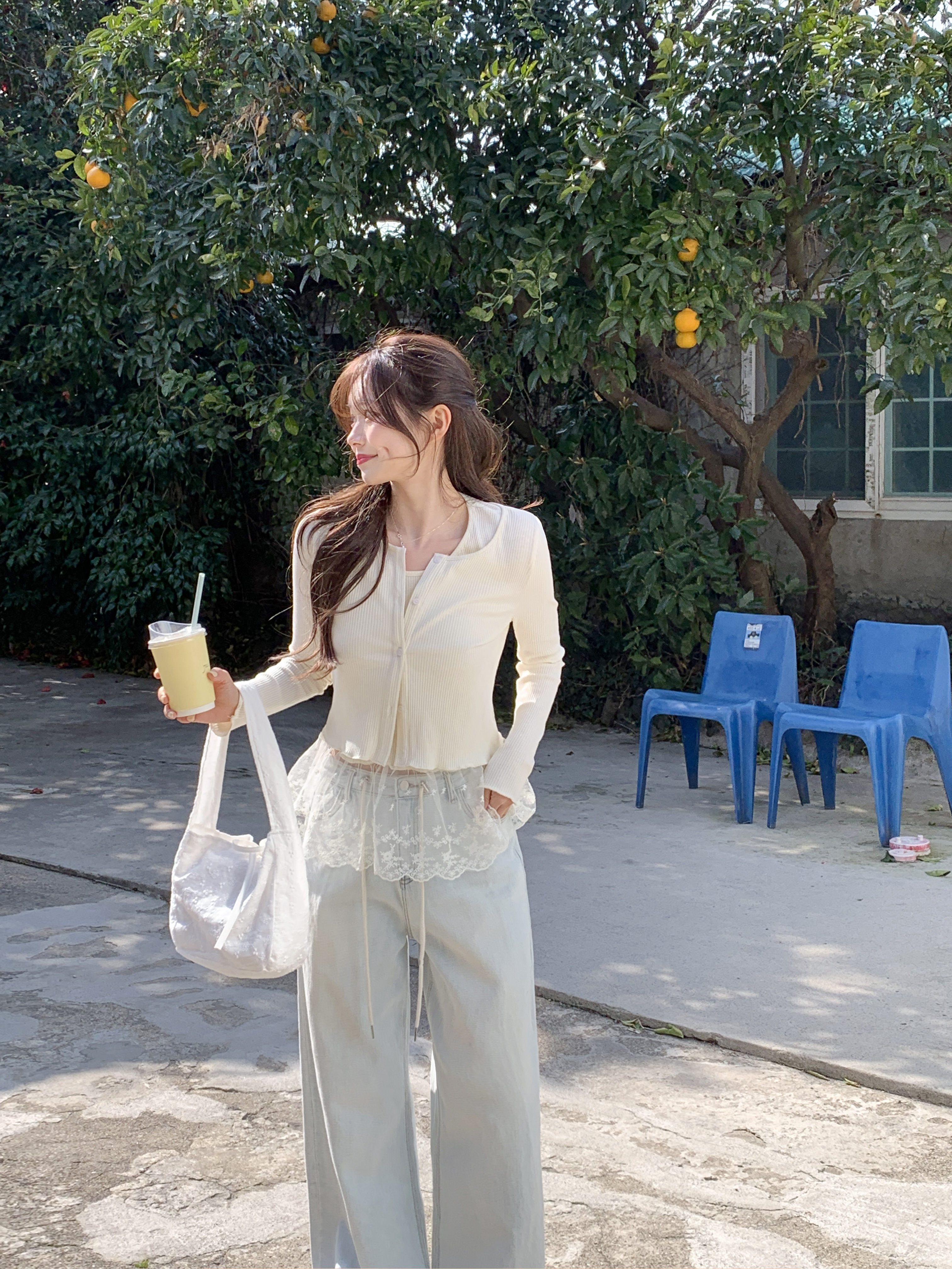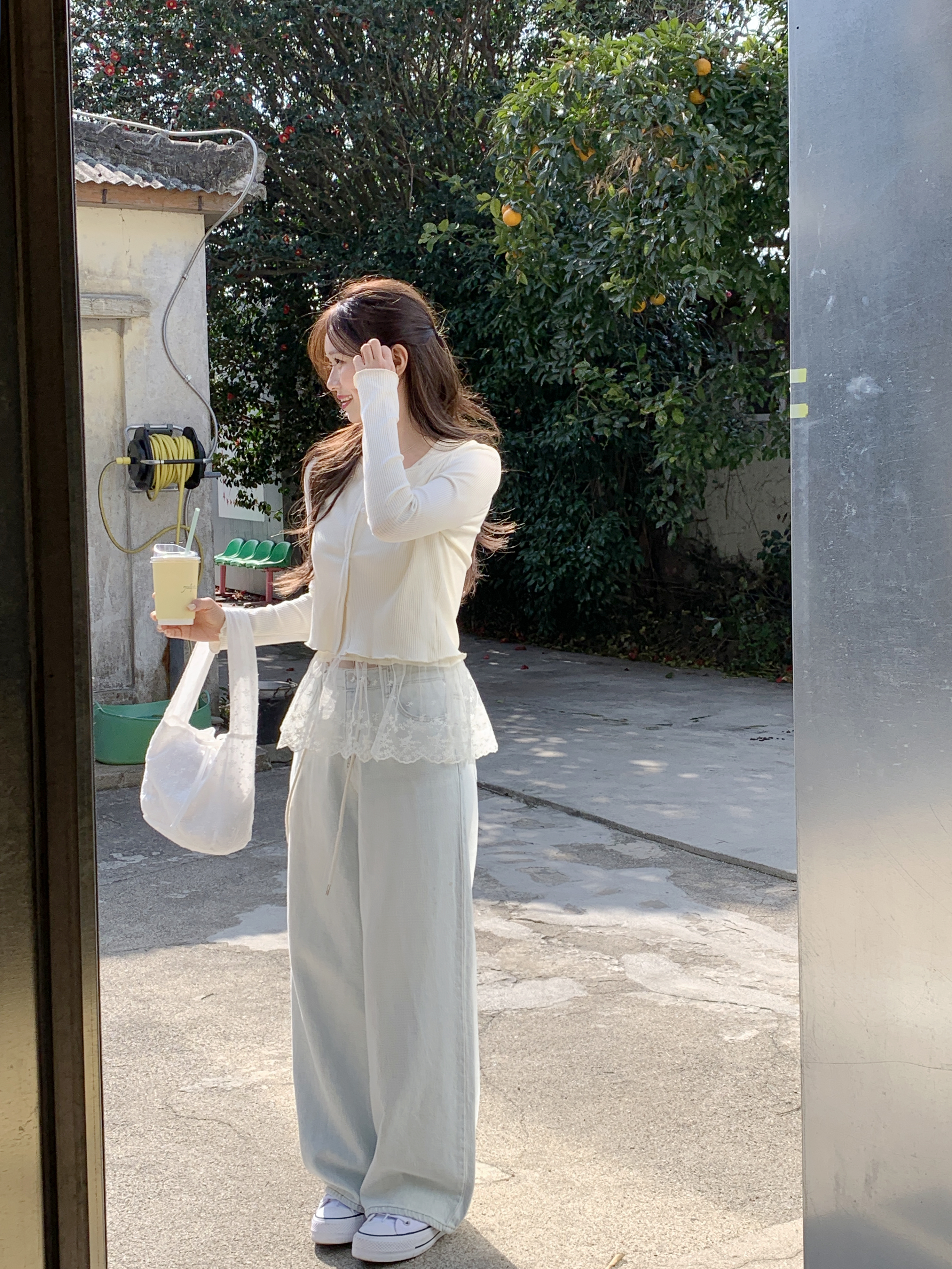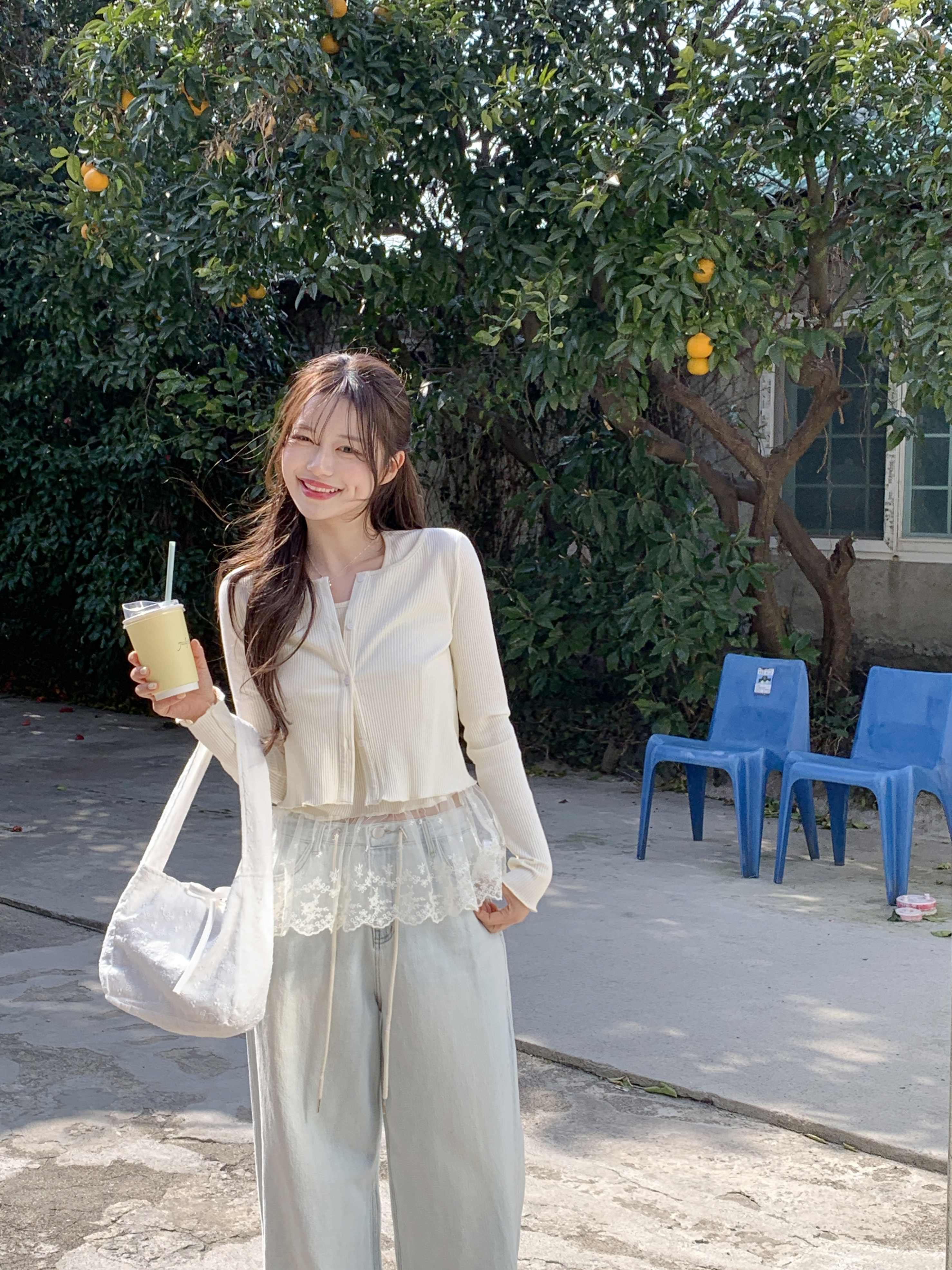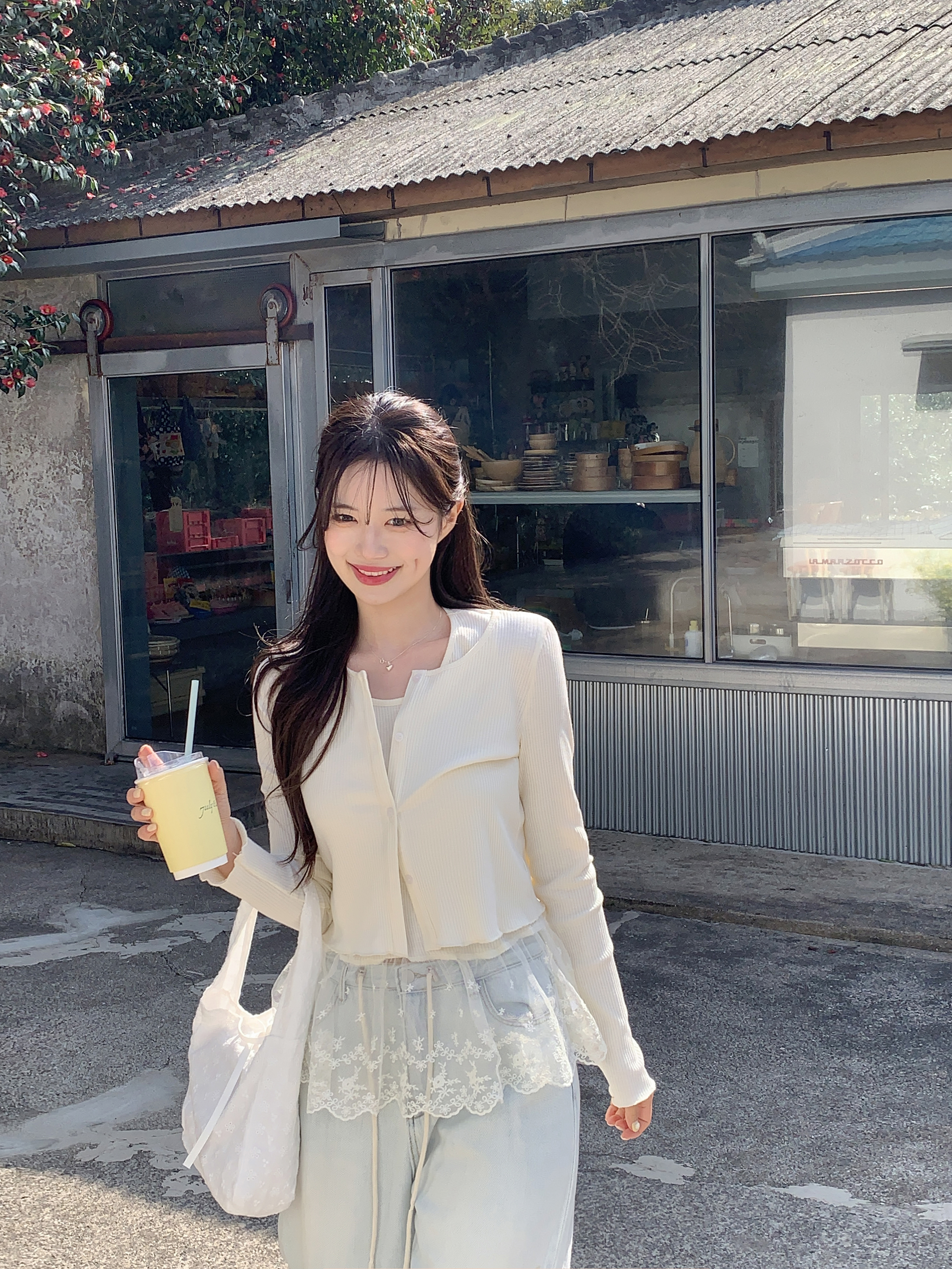 [2pcs]バニラレースノースリーブカーディガンセット
