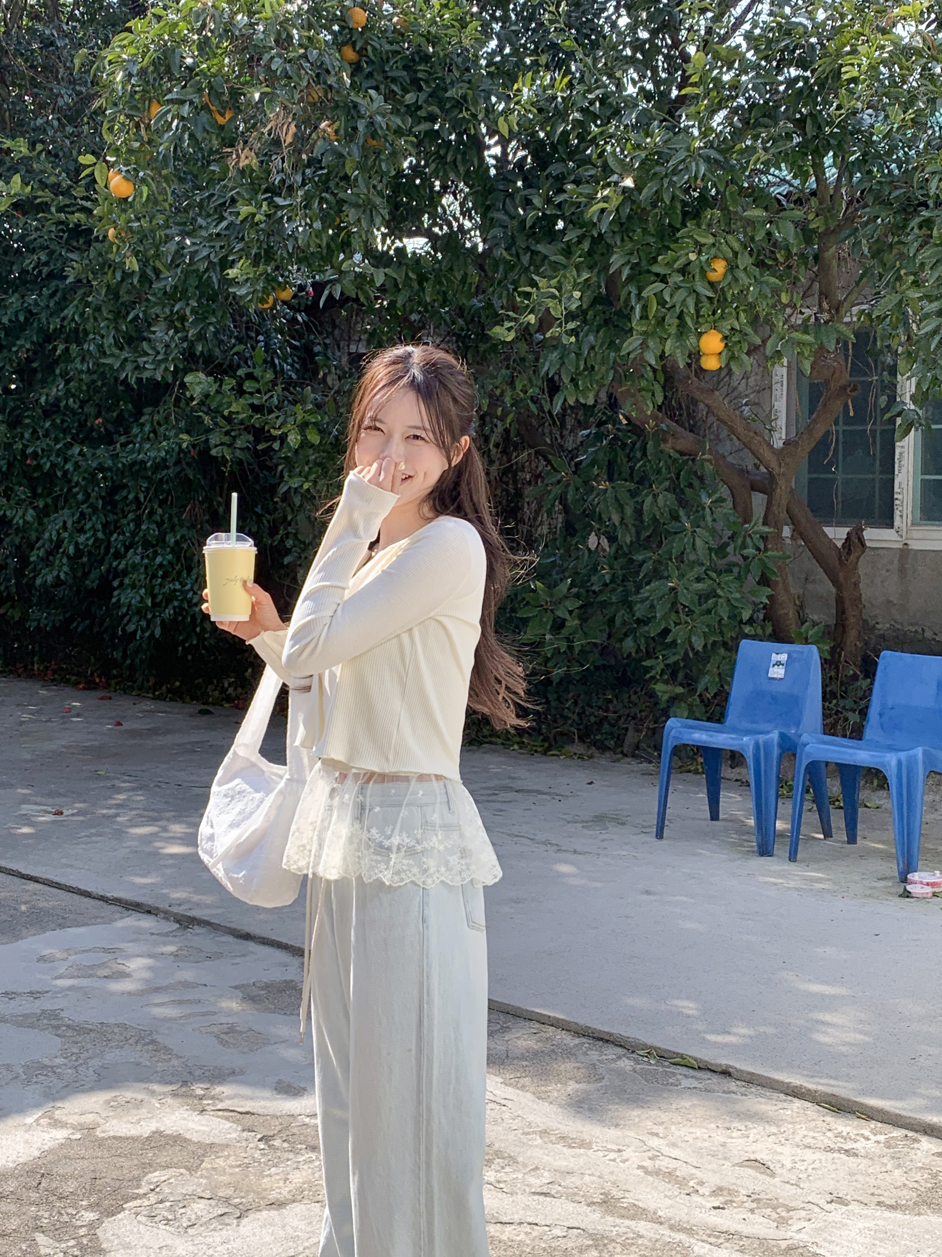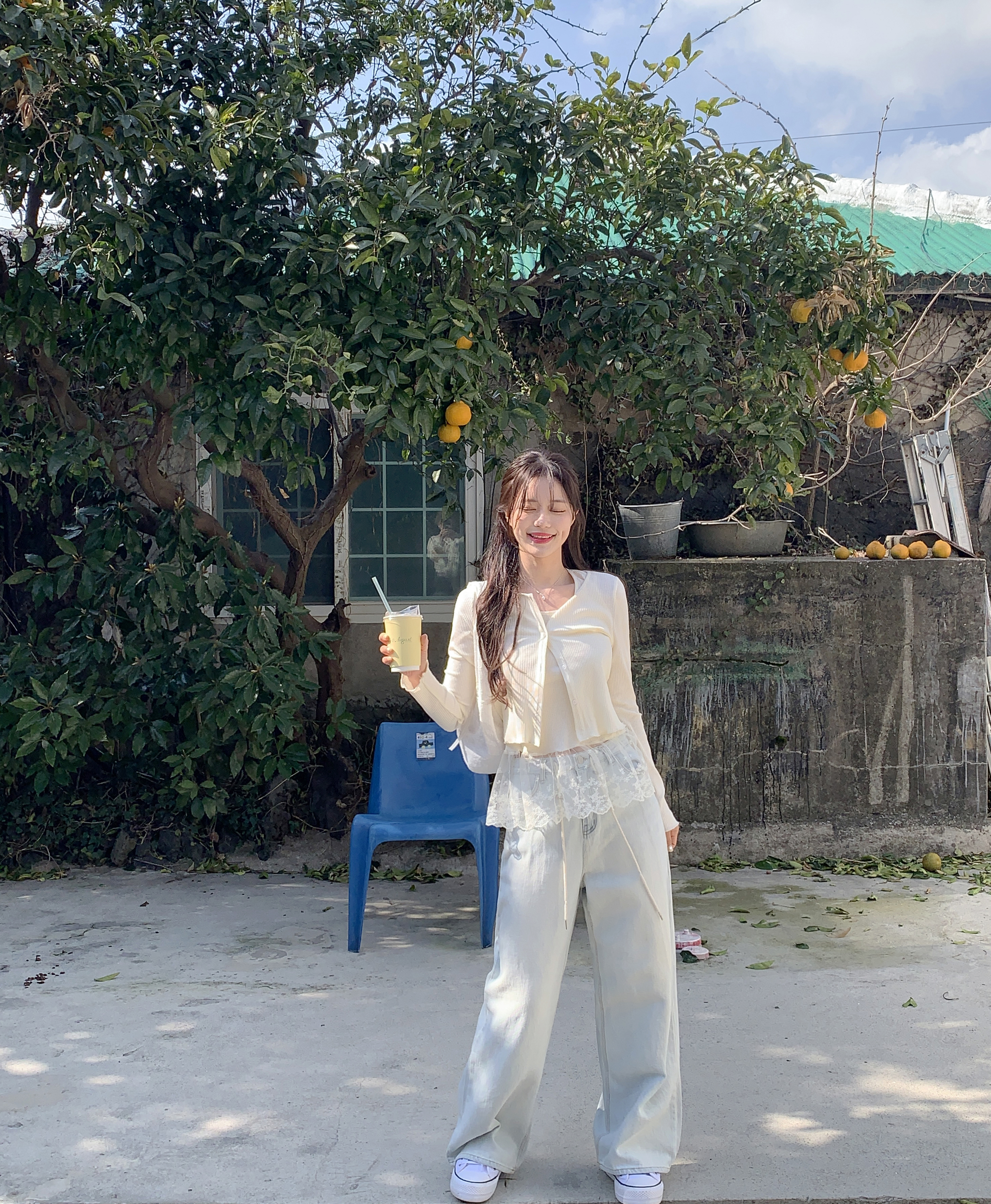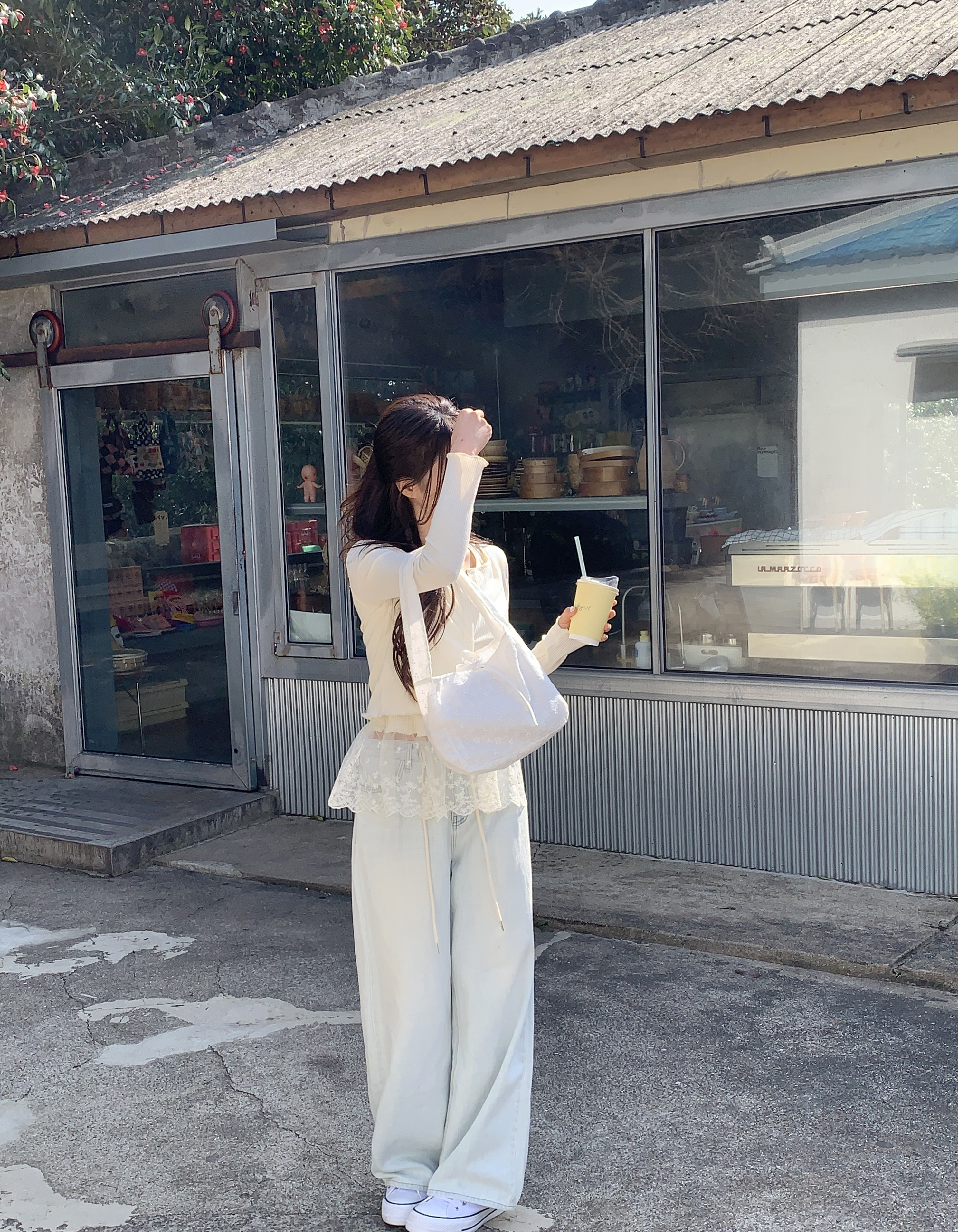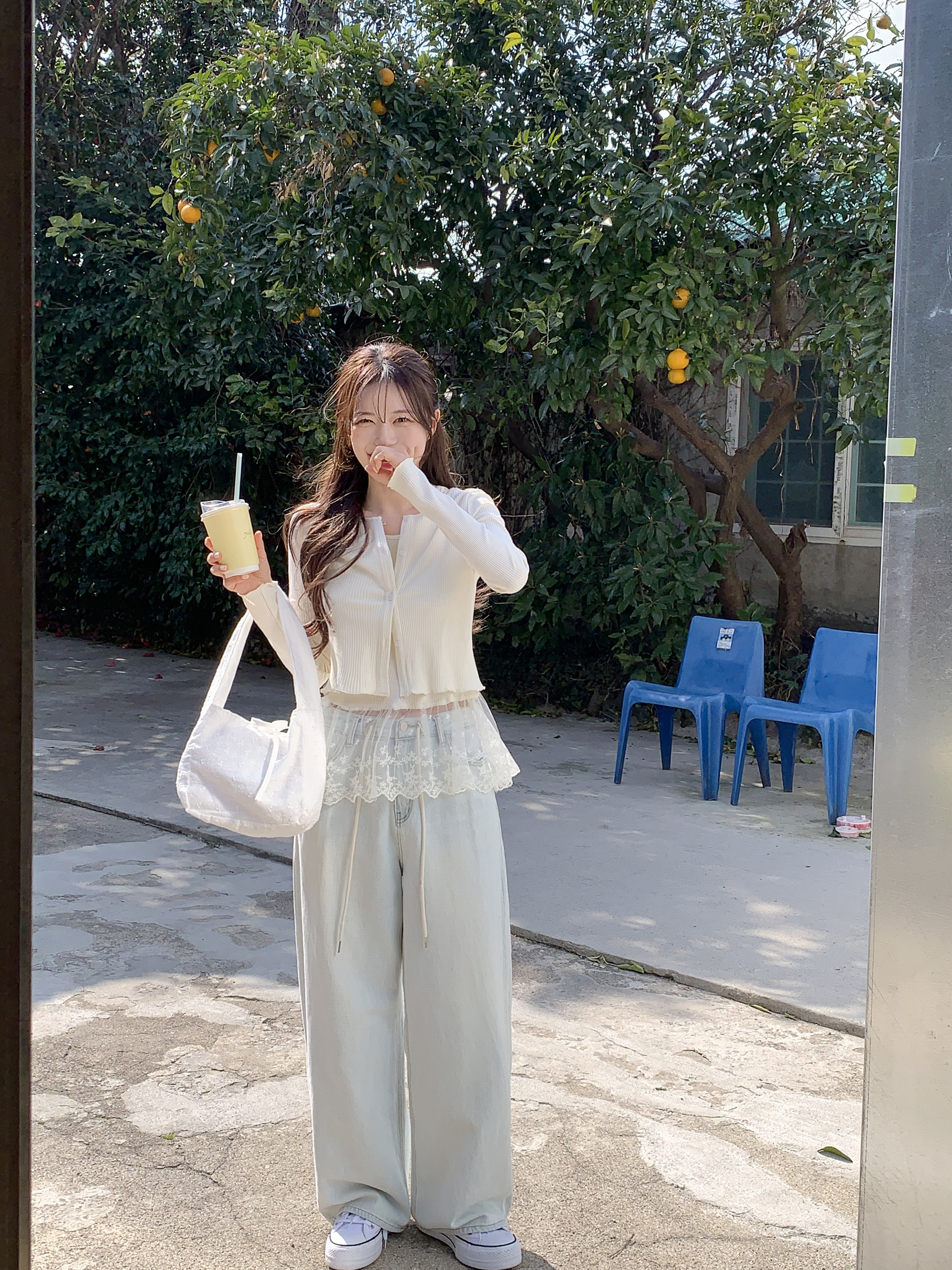 [2pcs]バニラレースノースリーブカーディガンセット