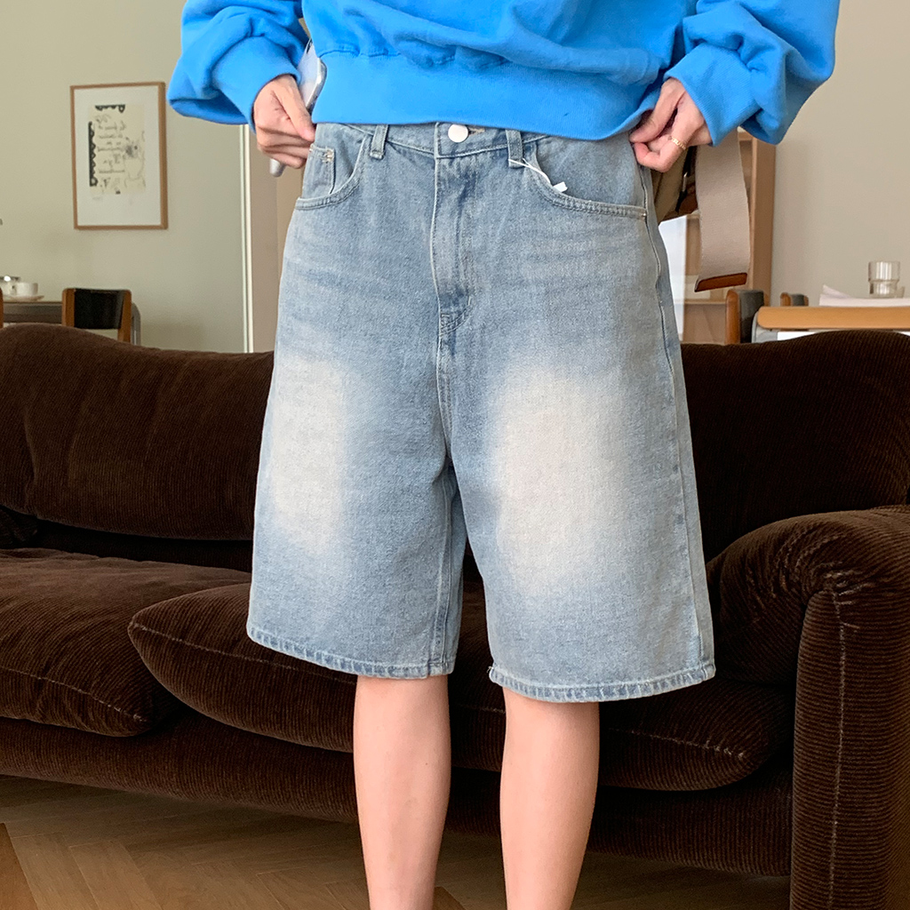[2color]4分丈デニムハーフパンツ/ショルダーパンツ