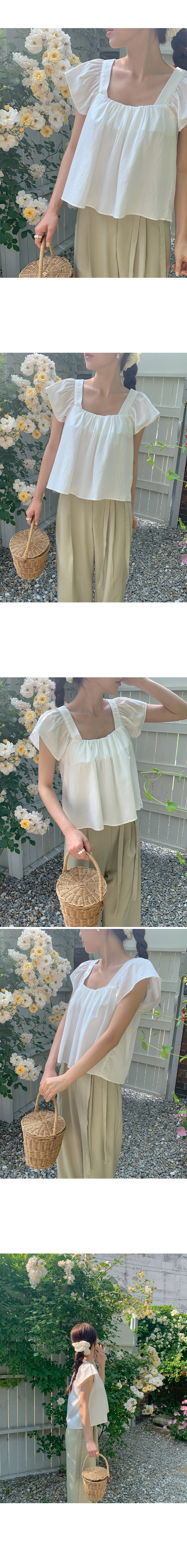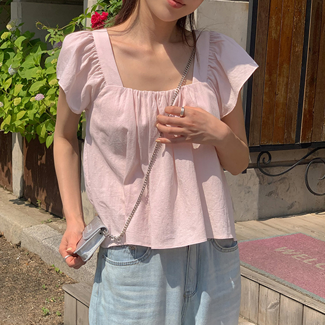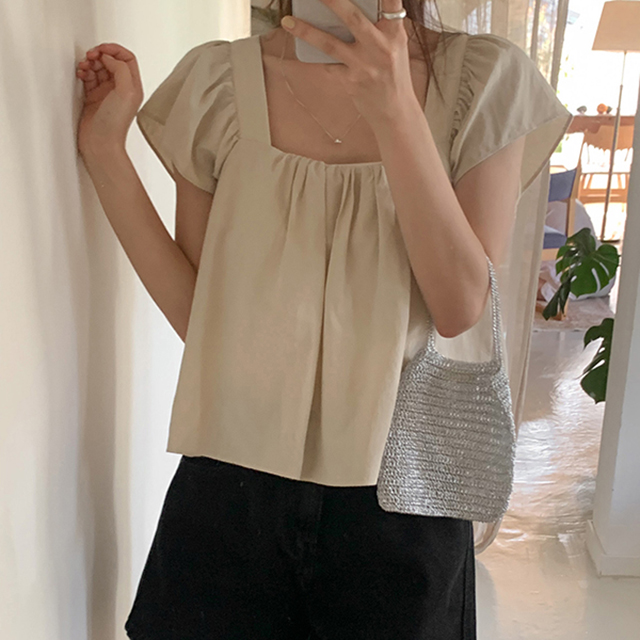 [original]スクエアネックシャーリング夏クロップド半袖ブラウス(4color)