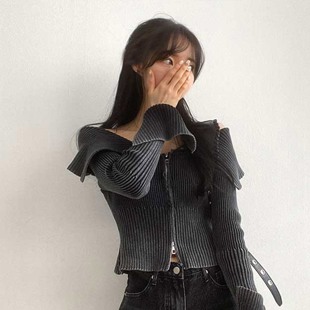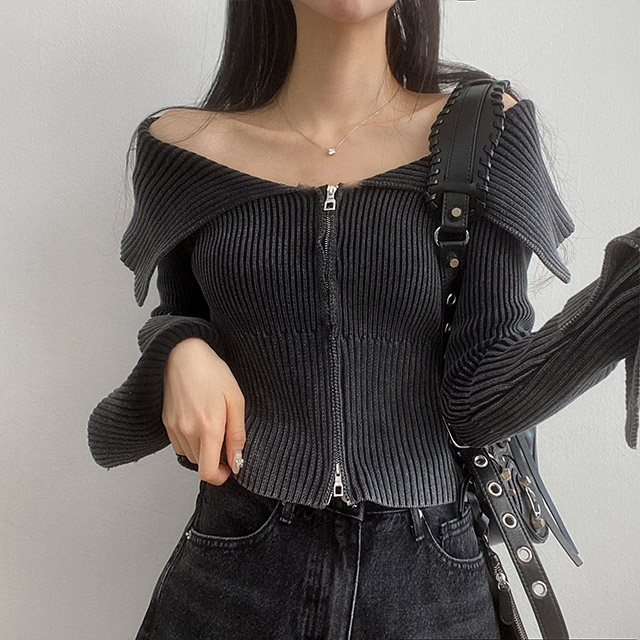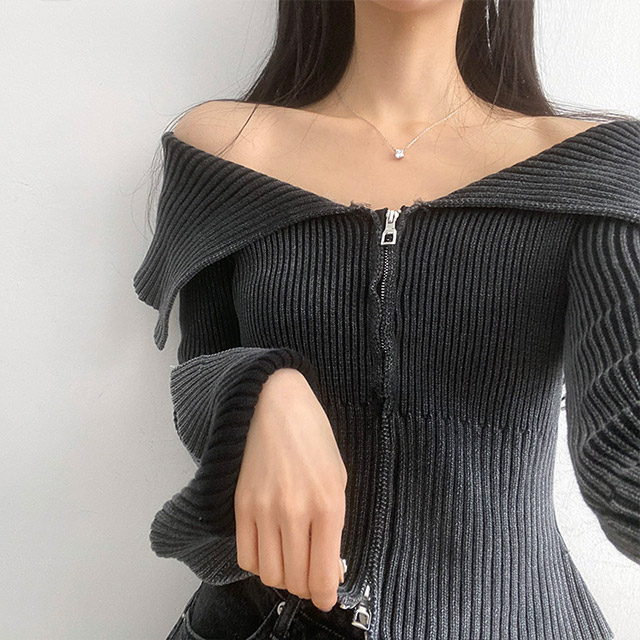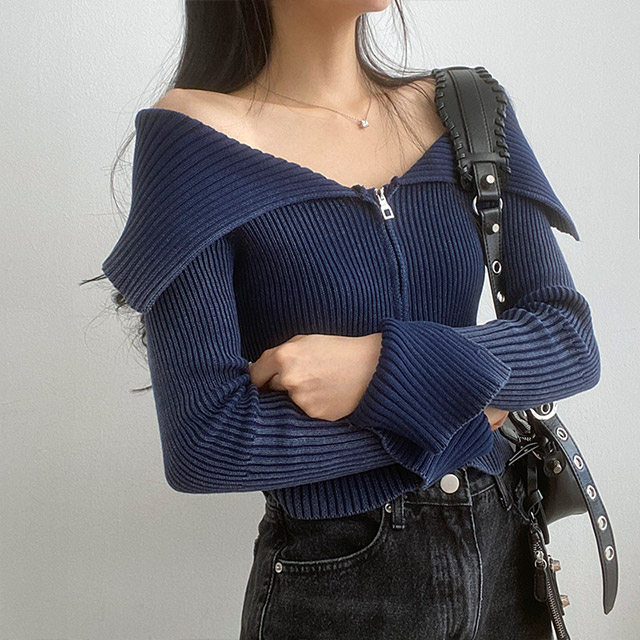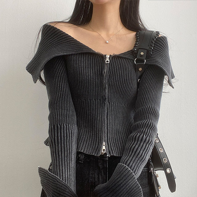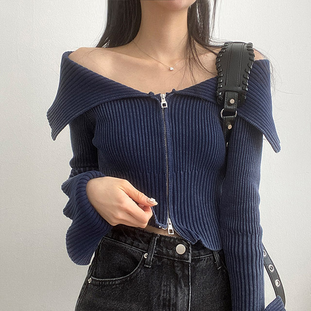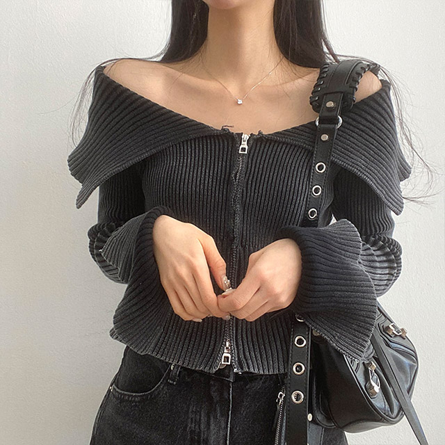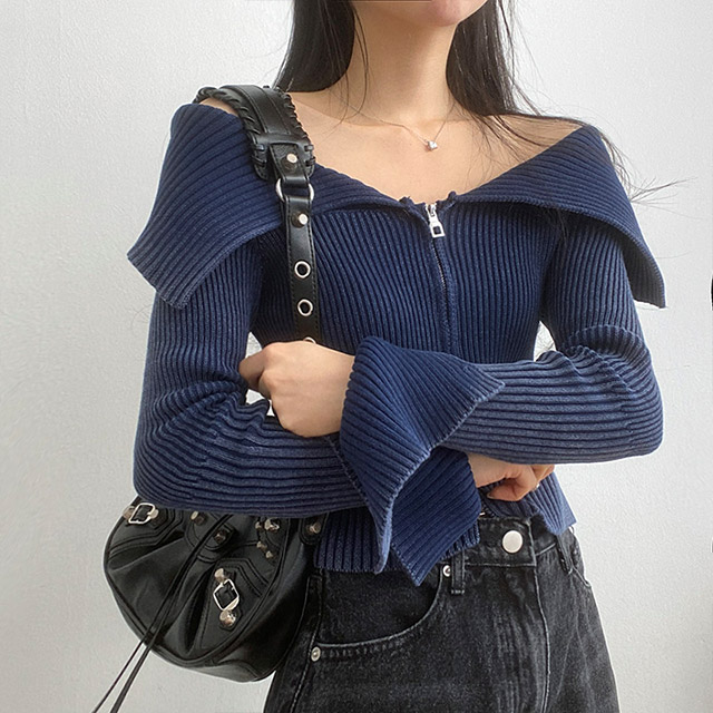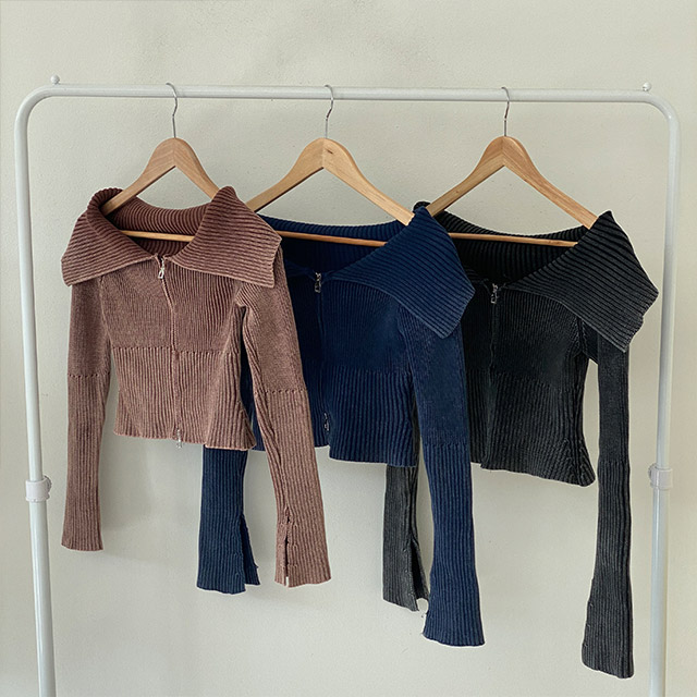 [3color] カラー2WAYオフリブニットジャケット