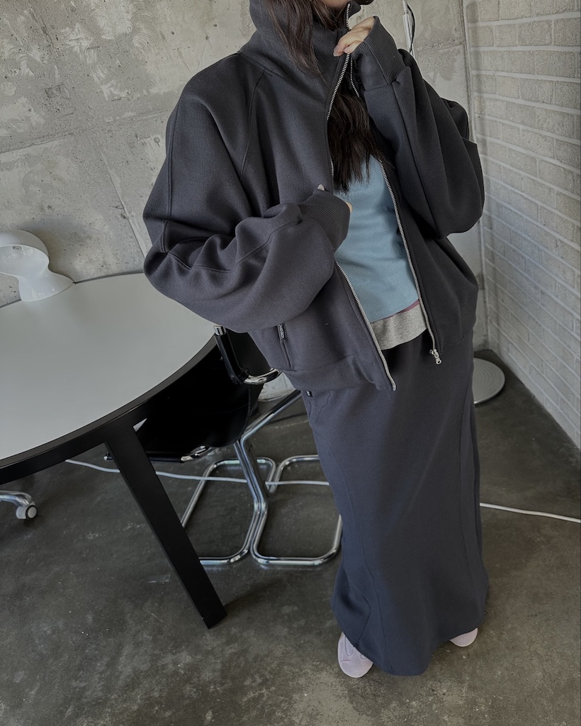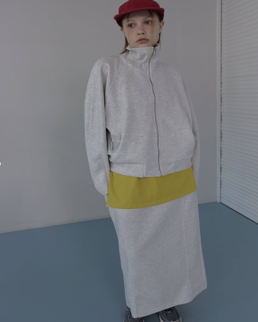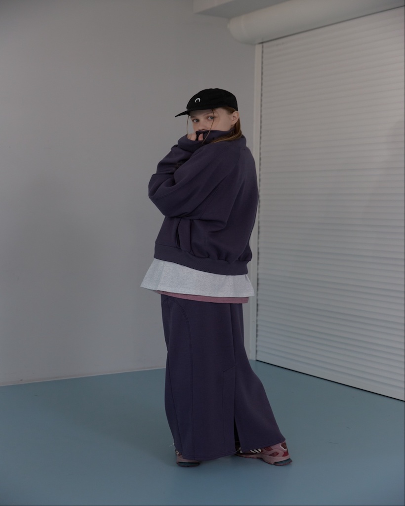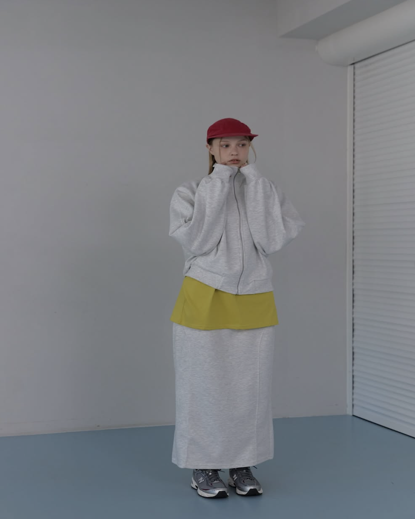 柔らかく肌触りの良い上質なスウェット生地を使用し, すっきりとしたHラインのシルエットに仕上げました。体のラインを拾いすぎず, 自然にスタイルアップを叶えてくれる一着です。
