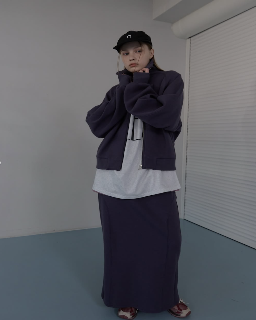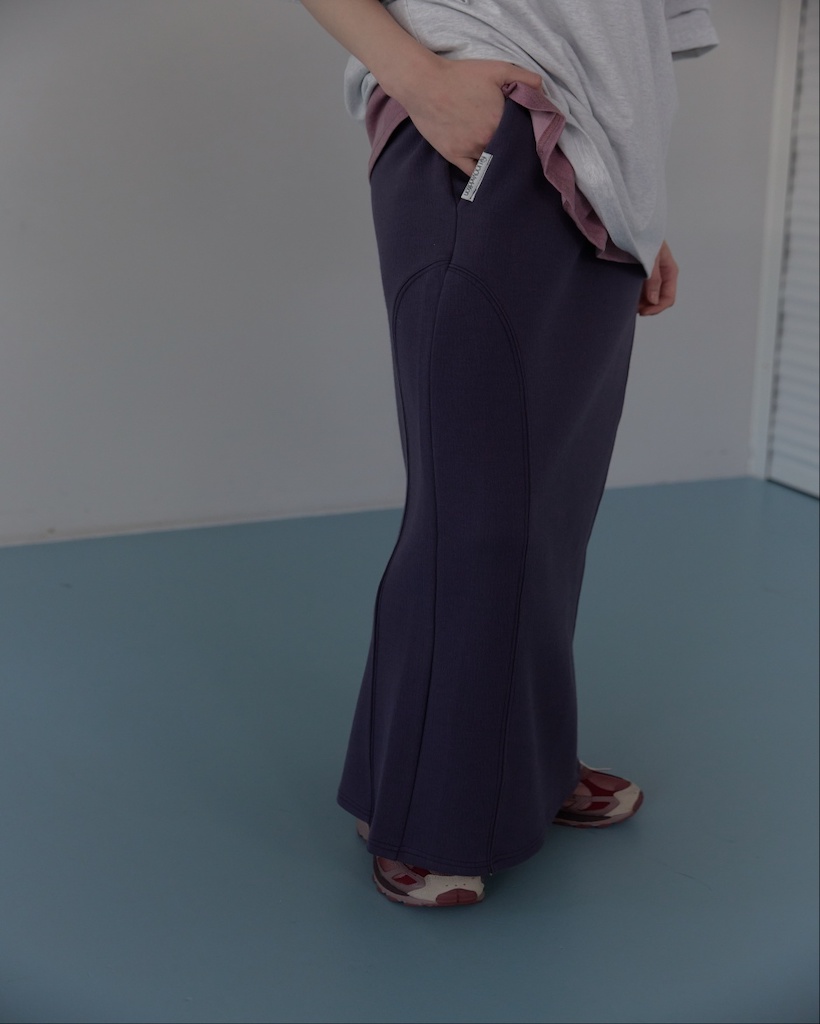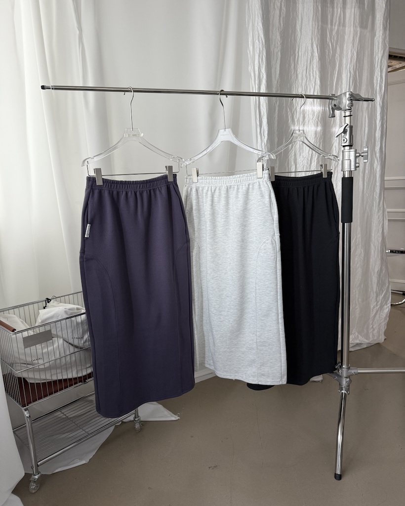 "カジュアルさと上品さを兼ね備えた、ストレスフリーなスウェットロングスカートです。"