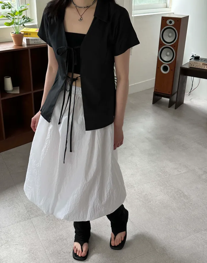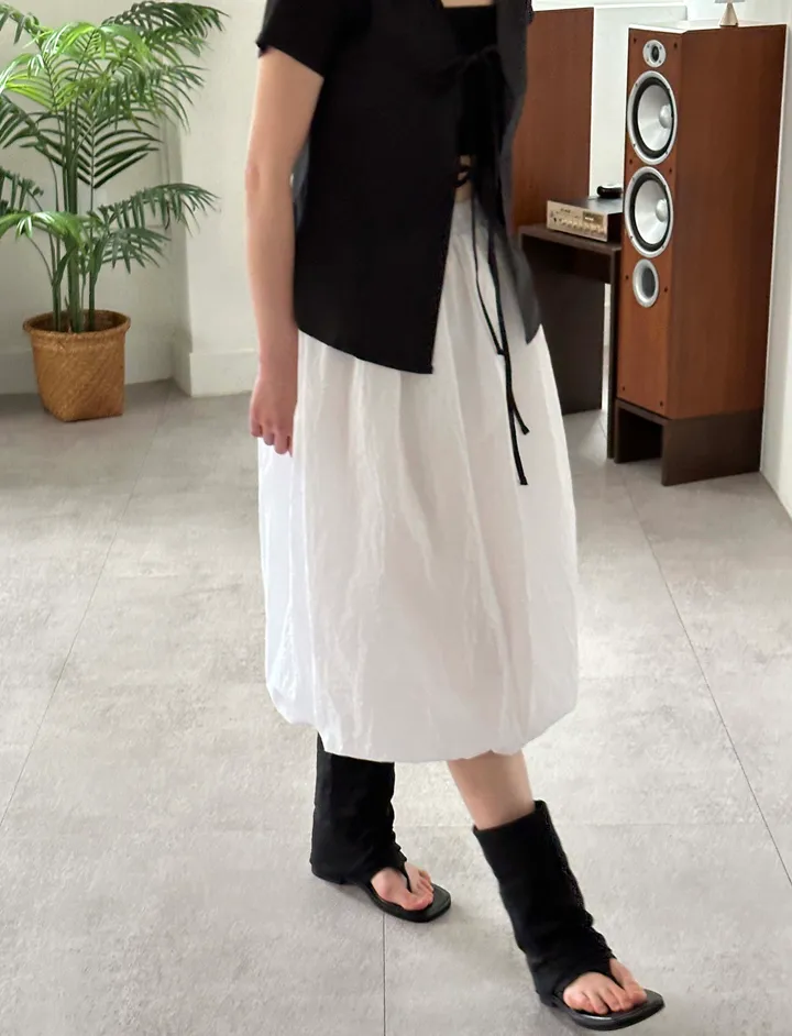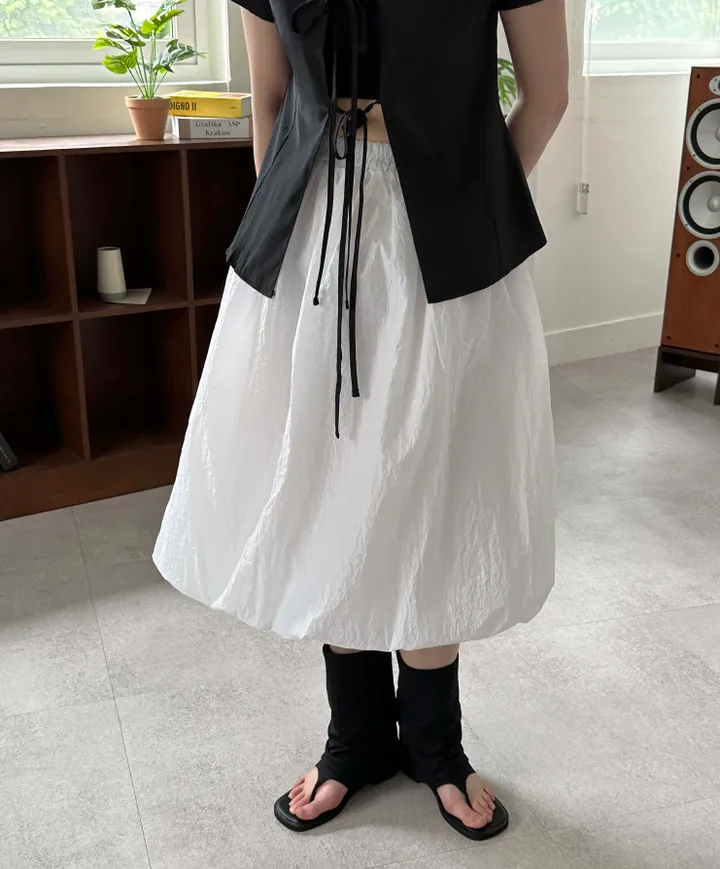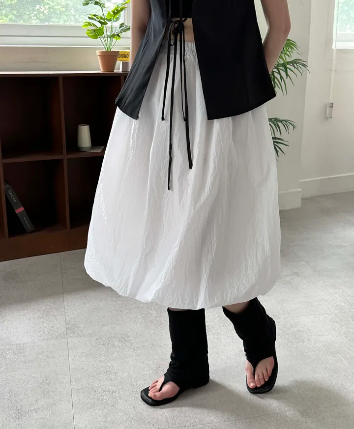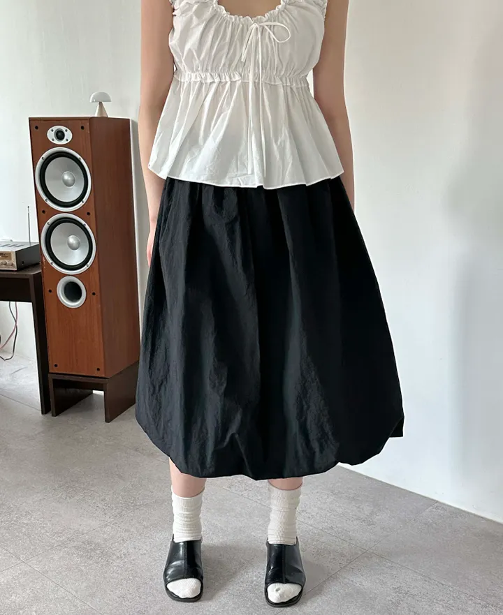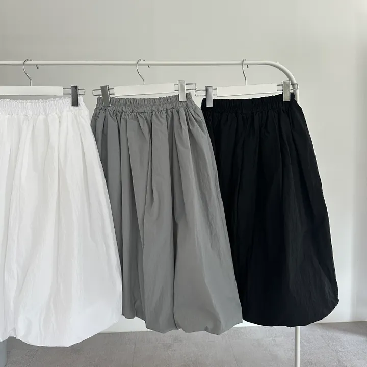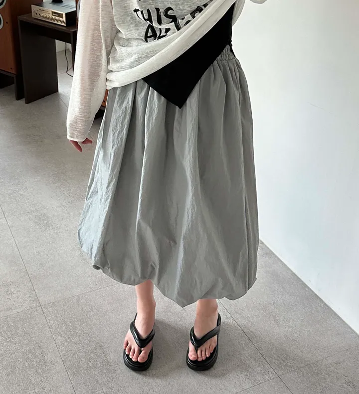 バルーンナイロンシャカシャカゴムロングスカート[3color]