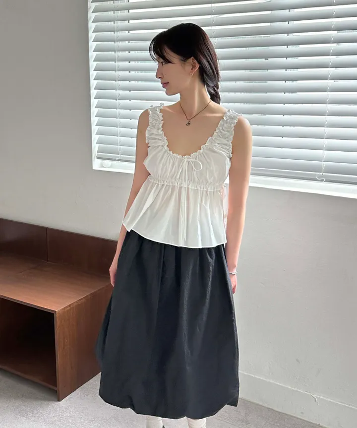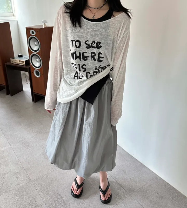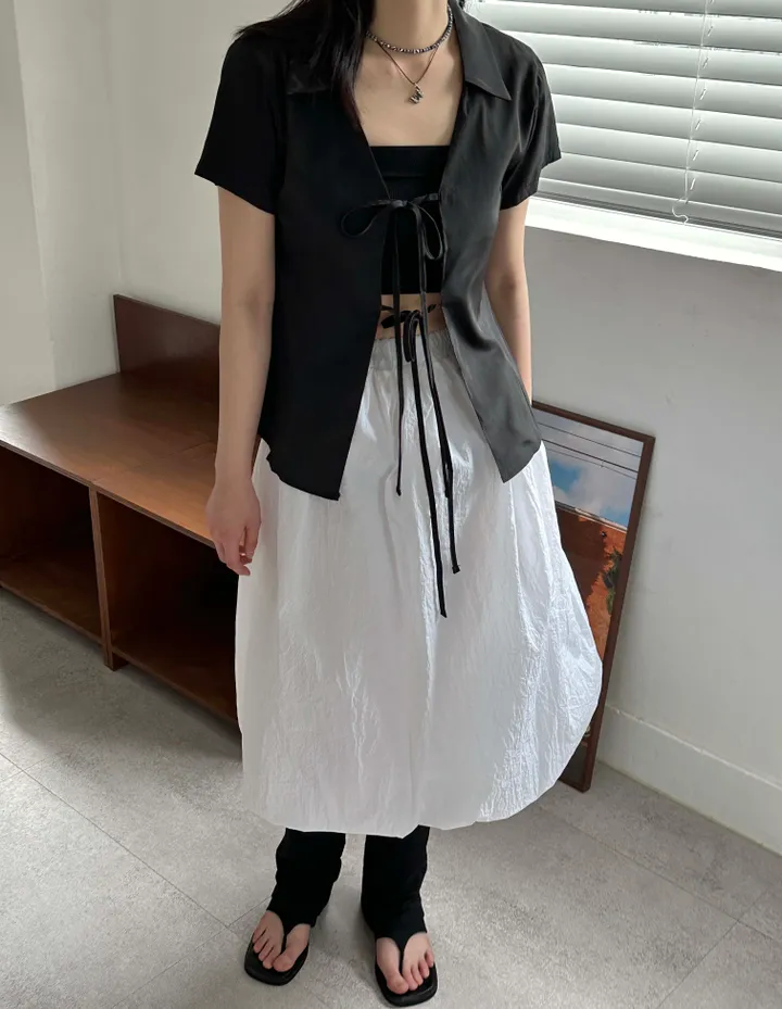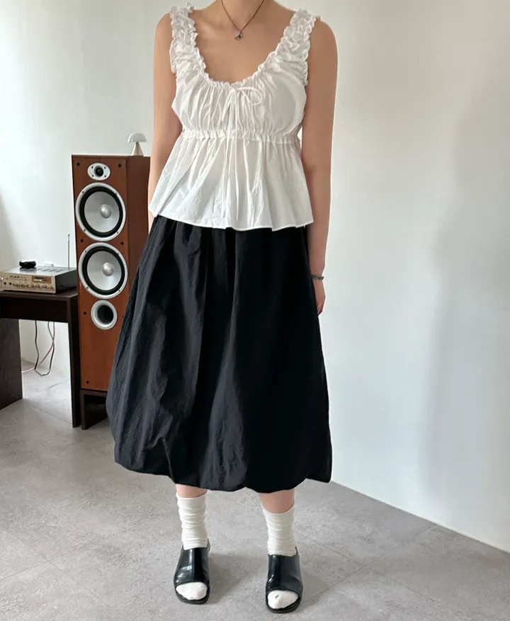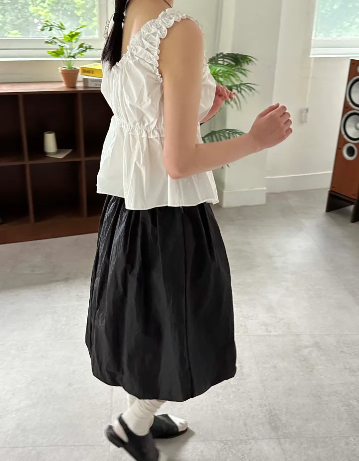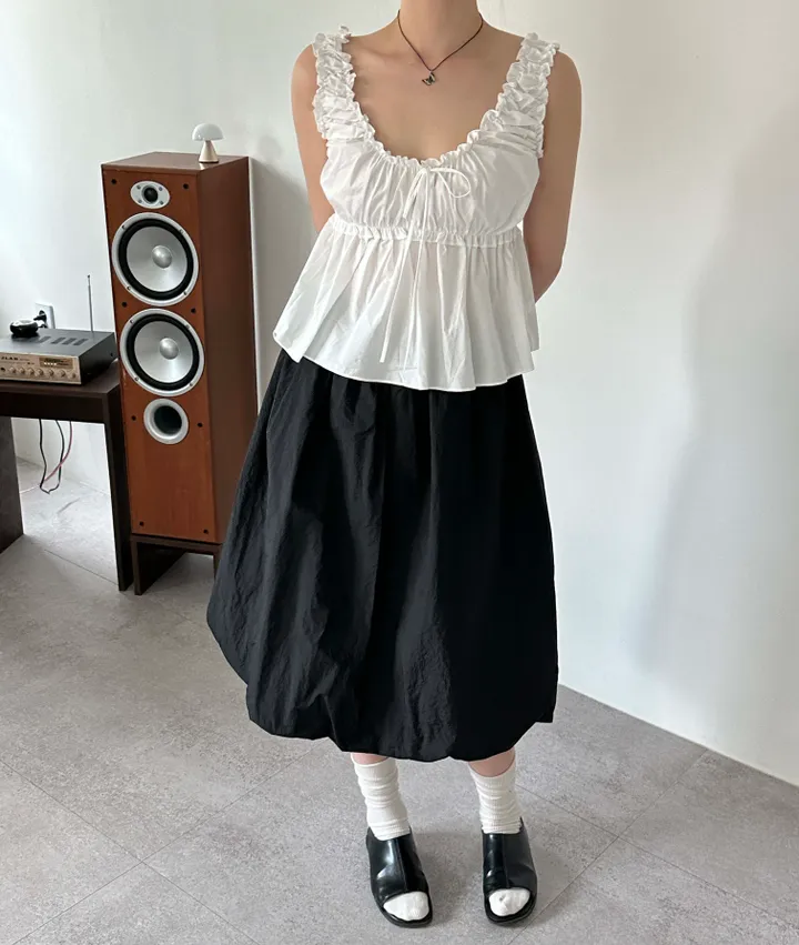 バルーンナイロンシャカシャカゴムロングスカート[3color]