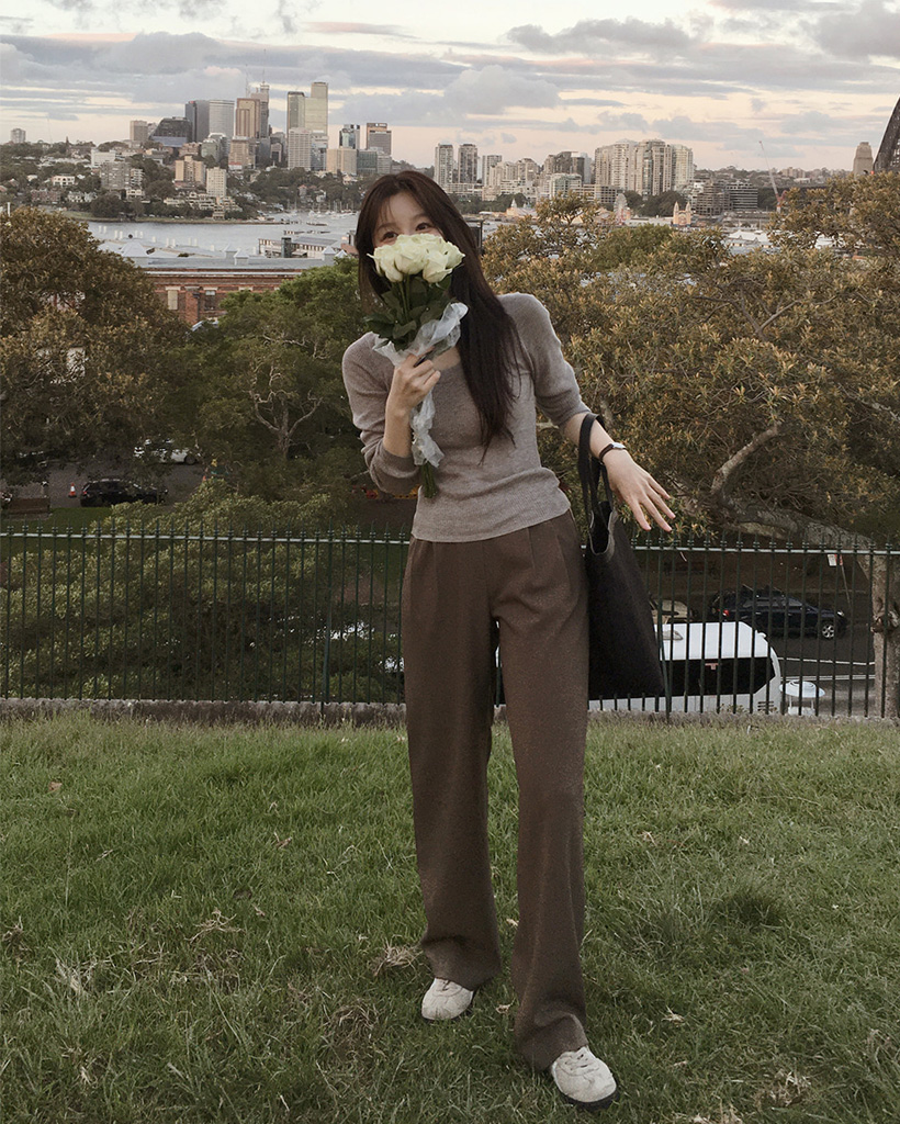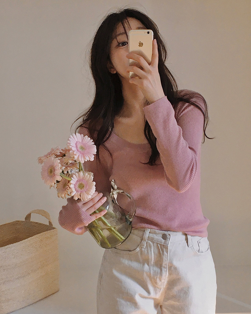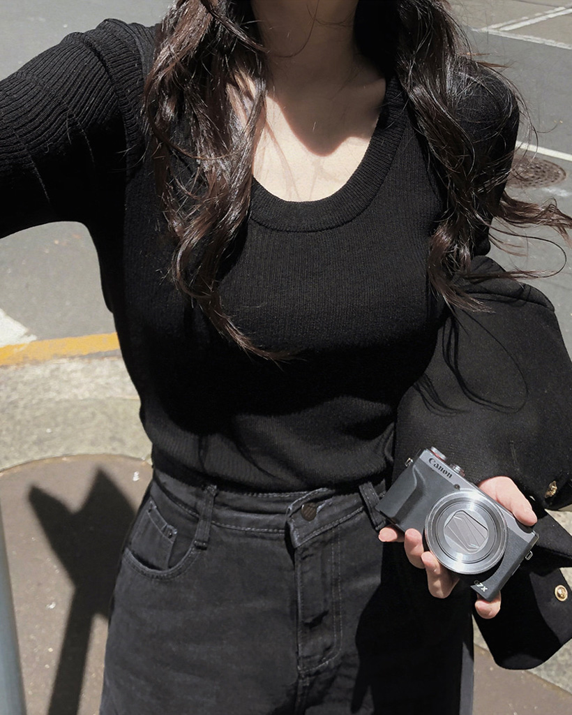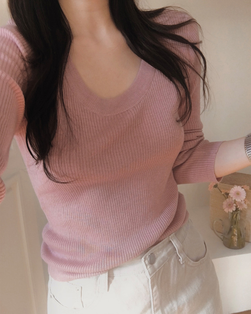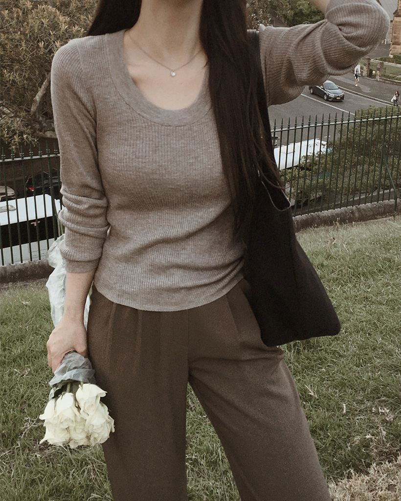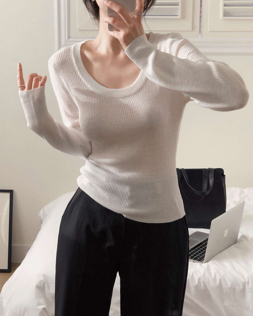 スリムスクープネックニット
