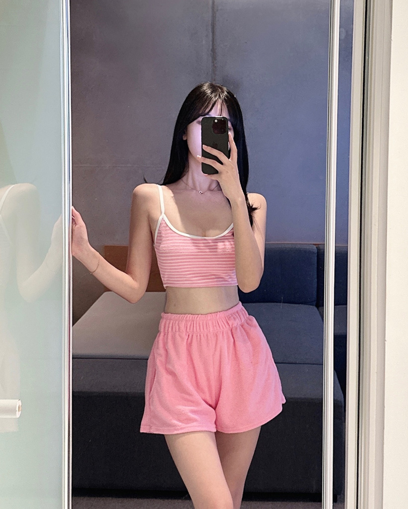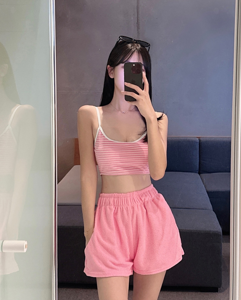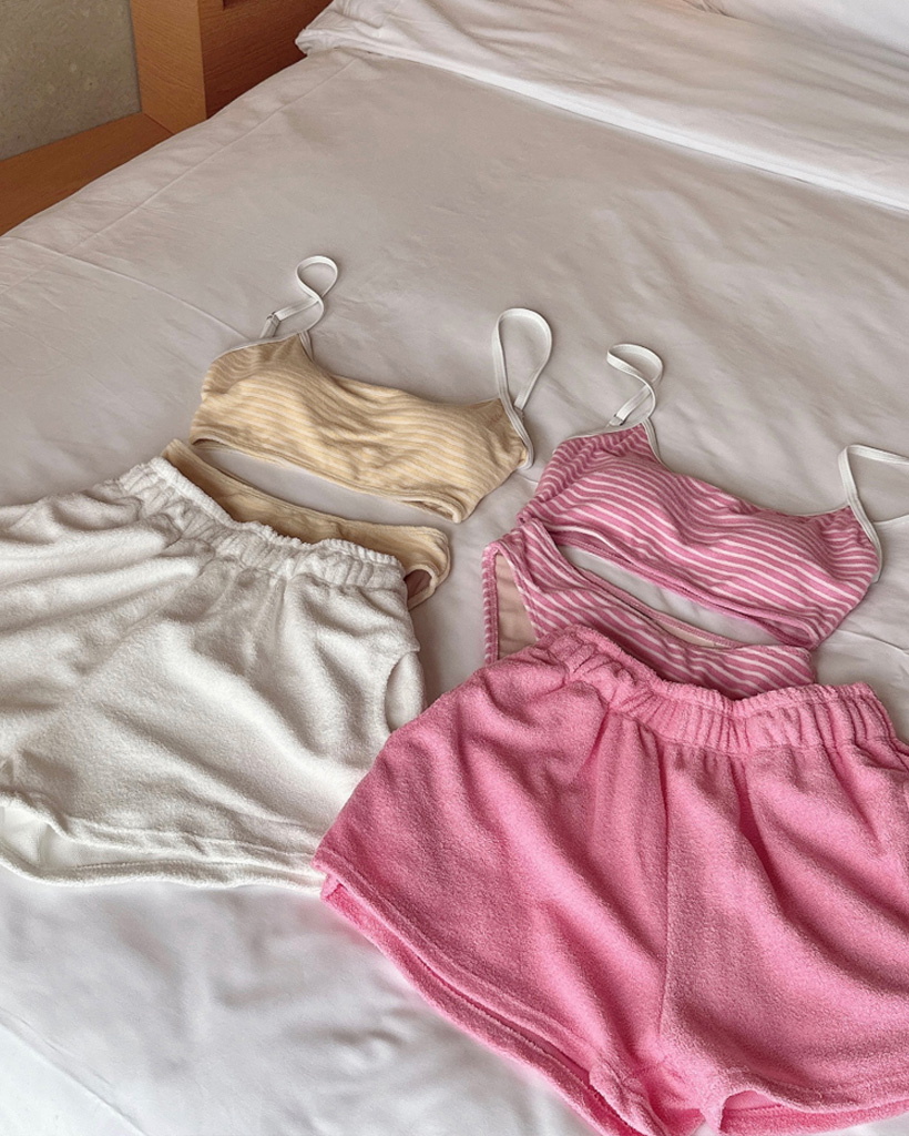 [3PS]クロップドタオルタオルビキニ+ショートパンツセット