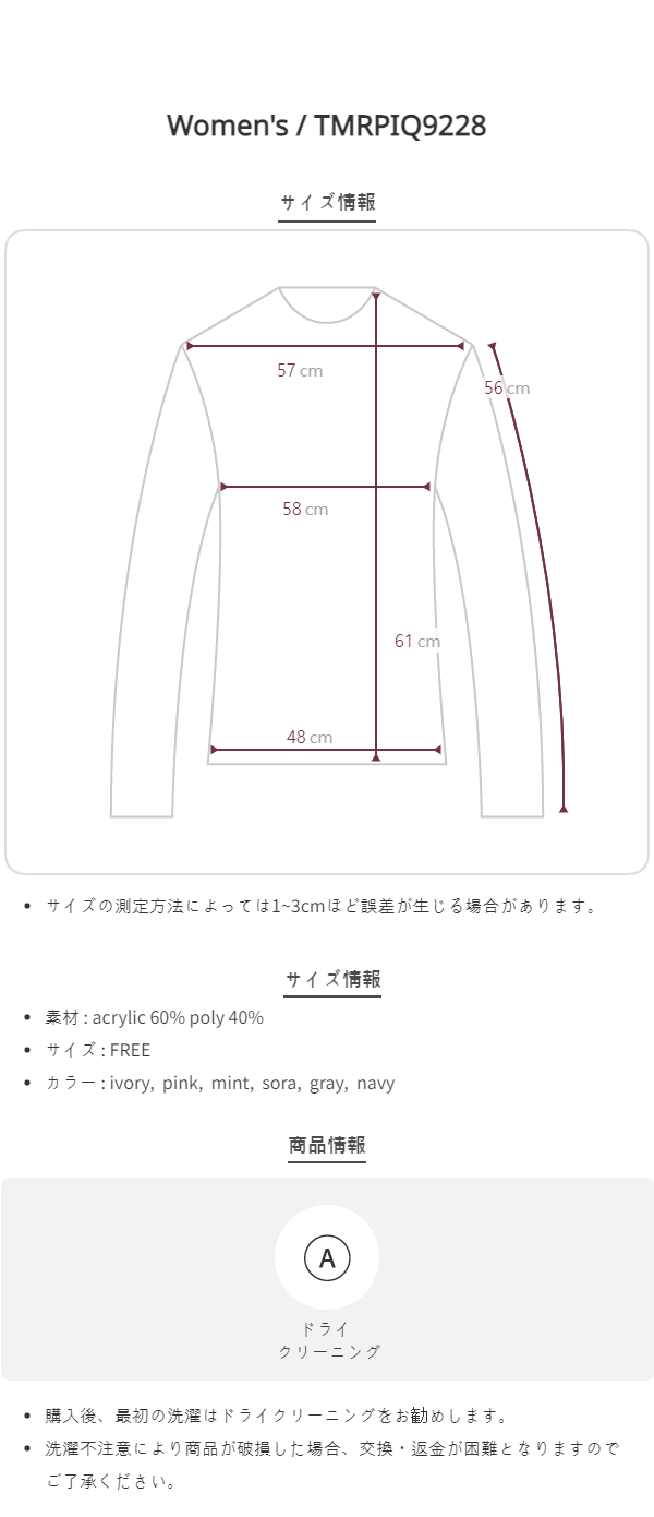 商品準備期間:注文確定後3~5営業日以内に入庫予定