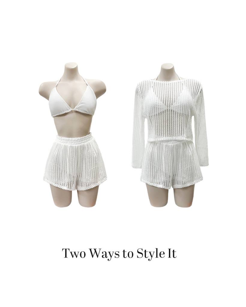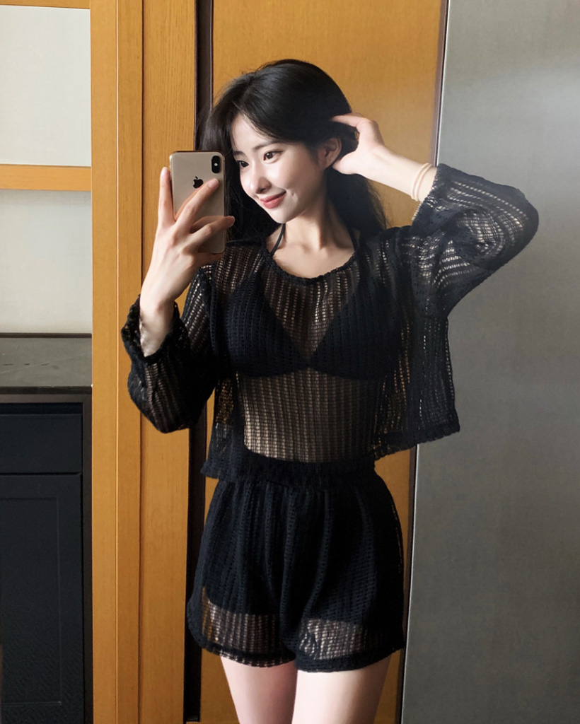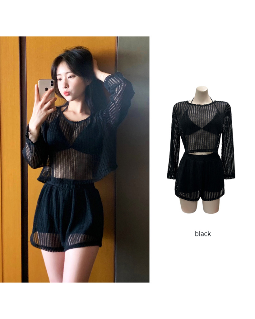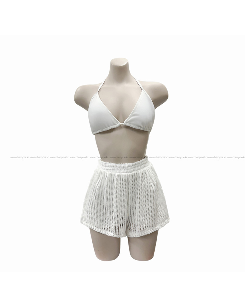 [ALL SET]シンプルホルターネックビキニ+ネットニット/ショートパンツ