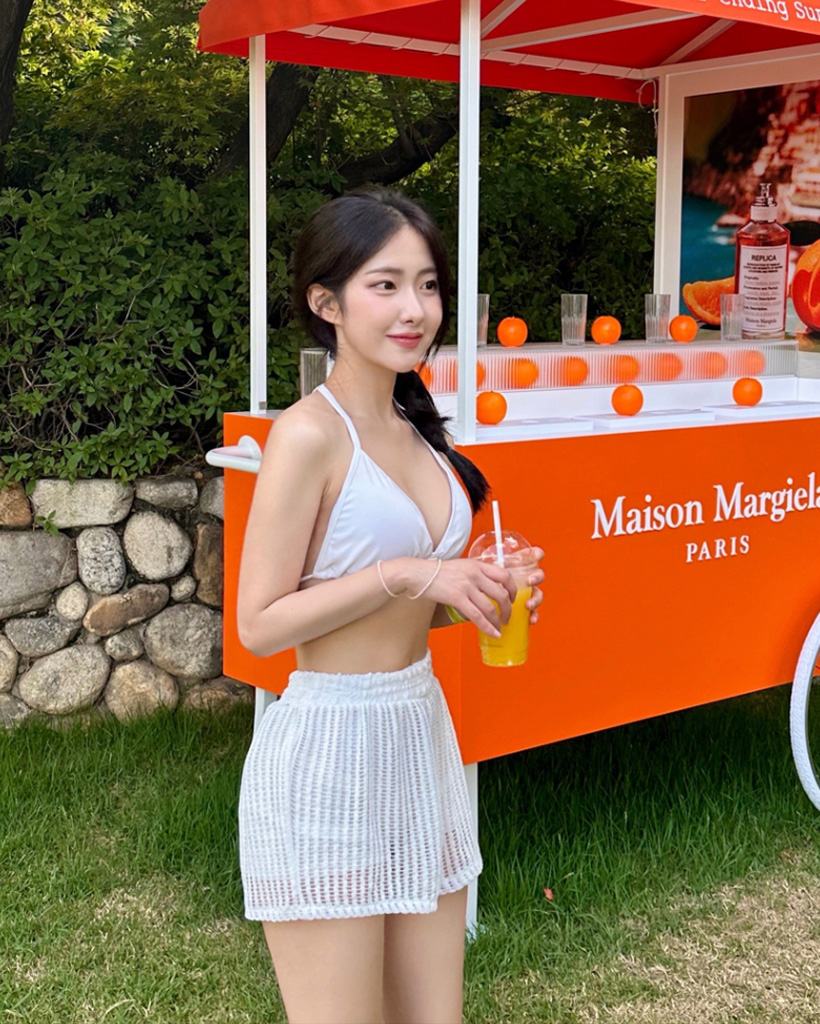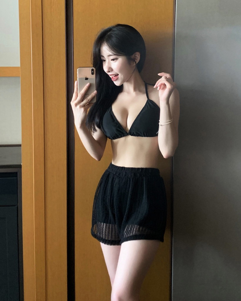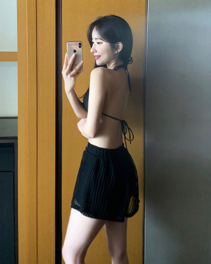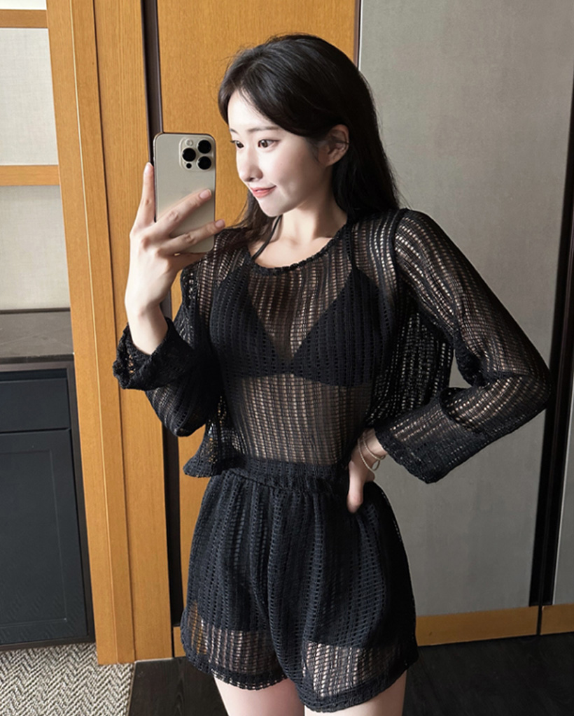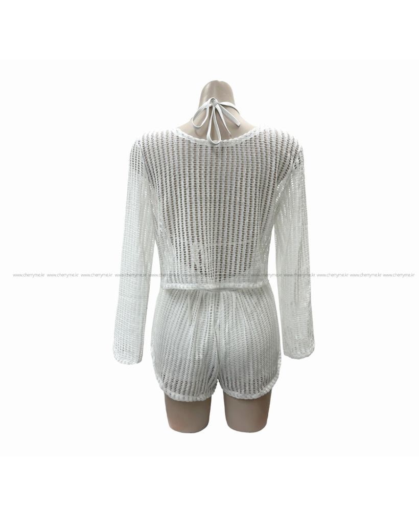 [ALL SET]シンプルホルターネックビキニ+ネットニット/ショートパンツ