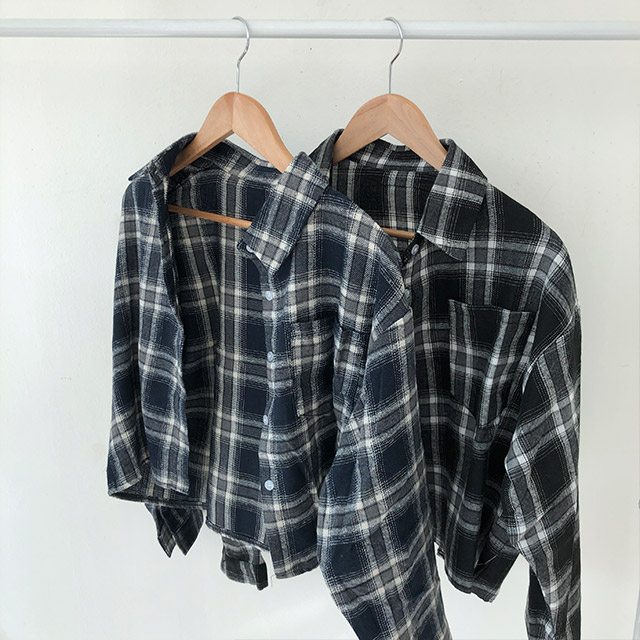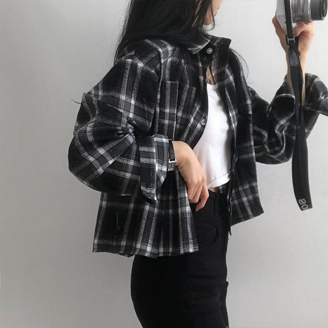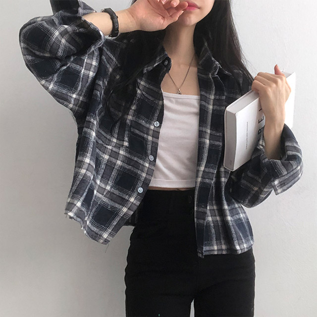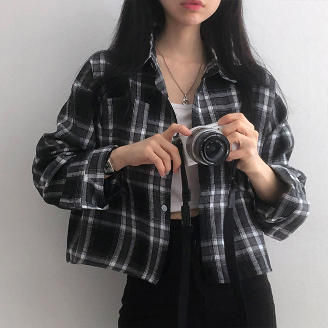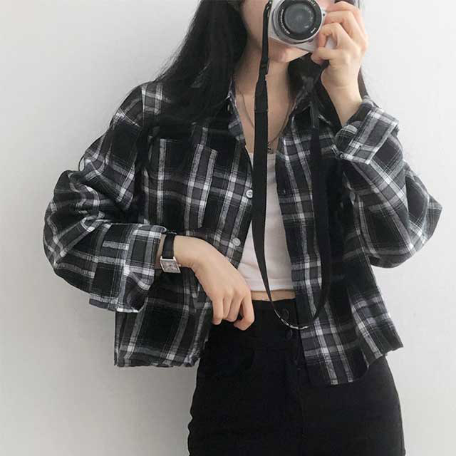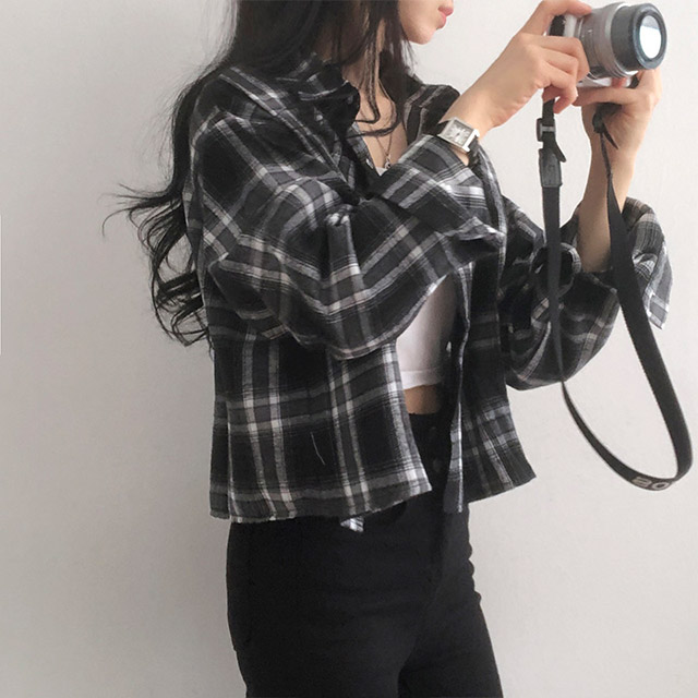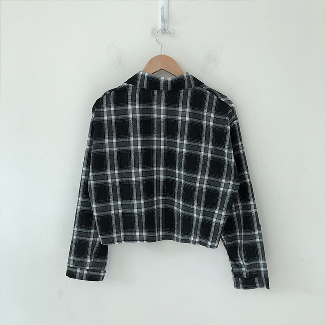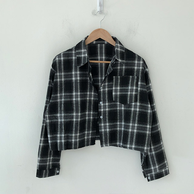 ポケットクロップドチェックシャツブラウス