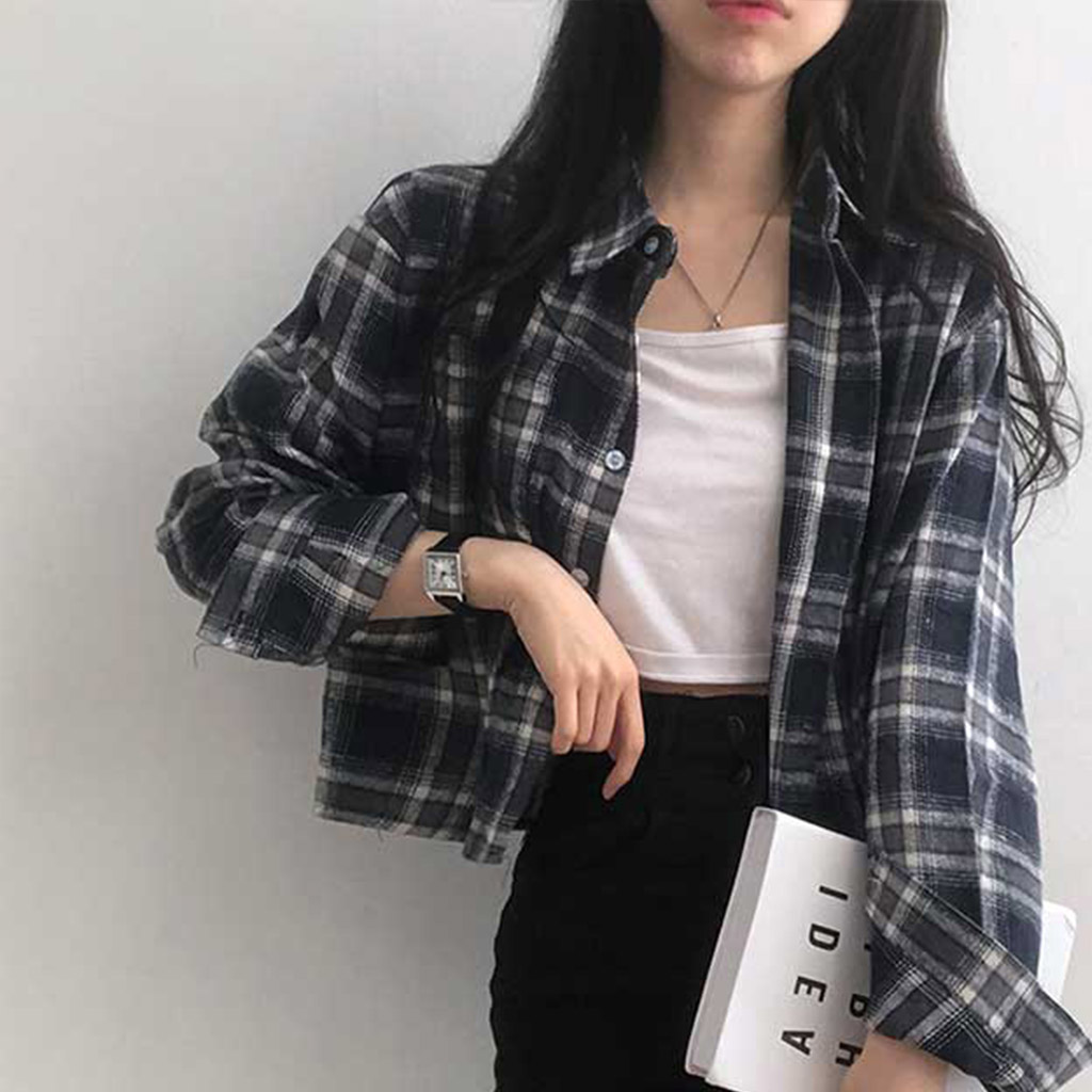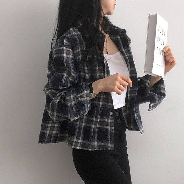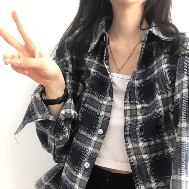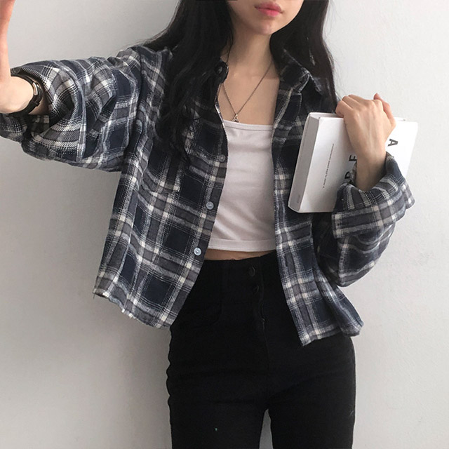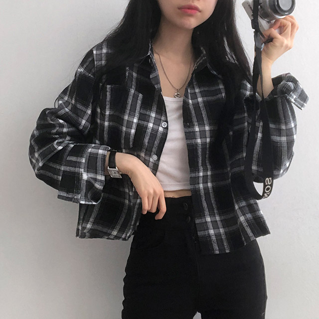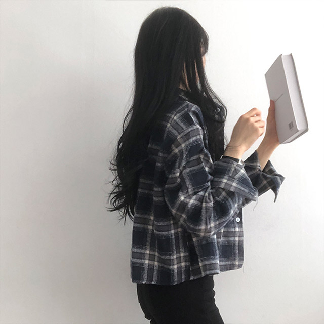 ポケットクロップドチェックシャツブラウス