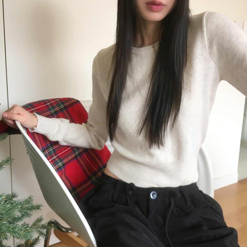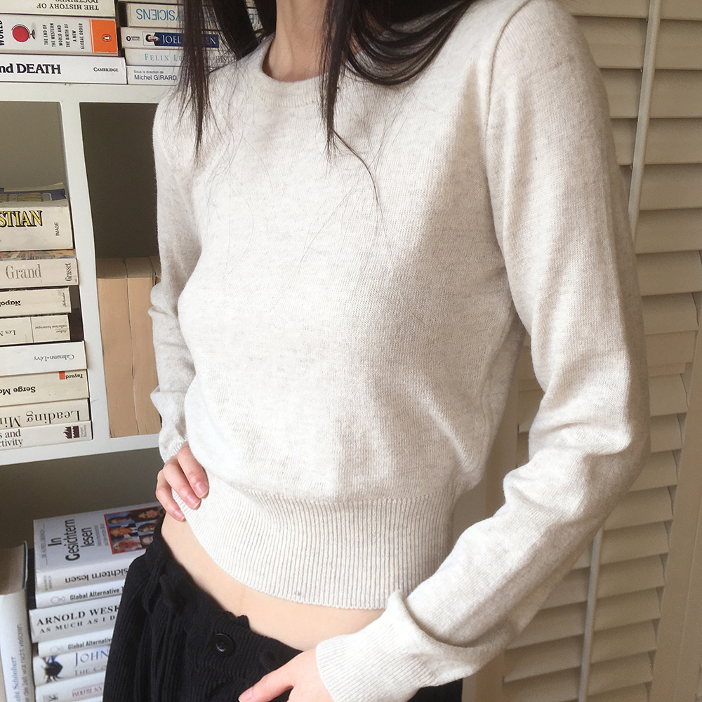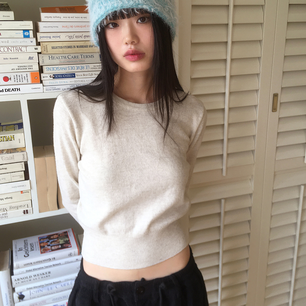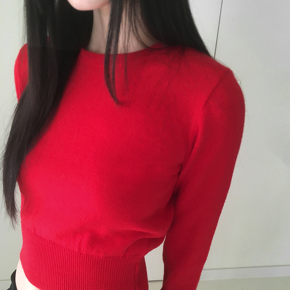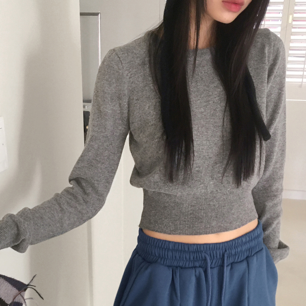 [12color] ウールラウンドクロップド長袖ニット