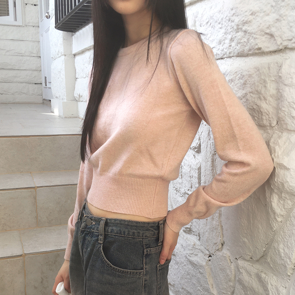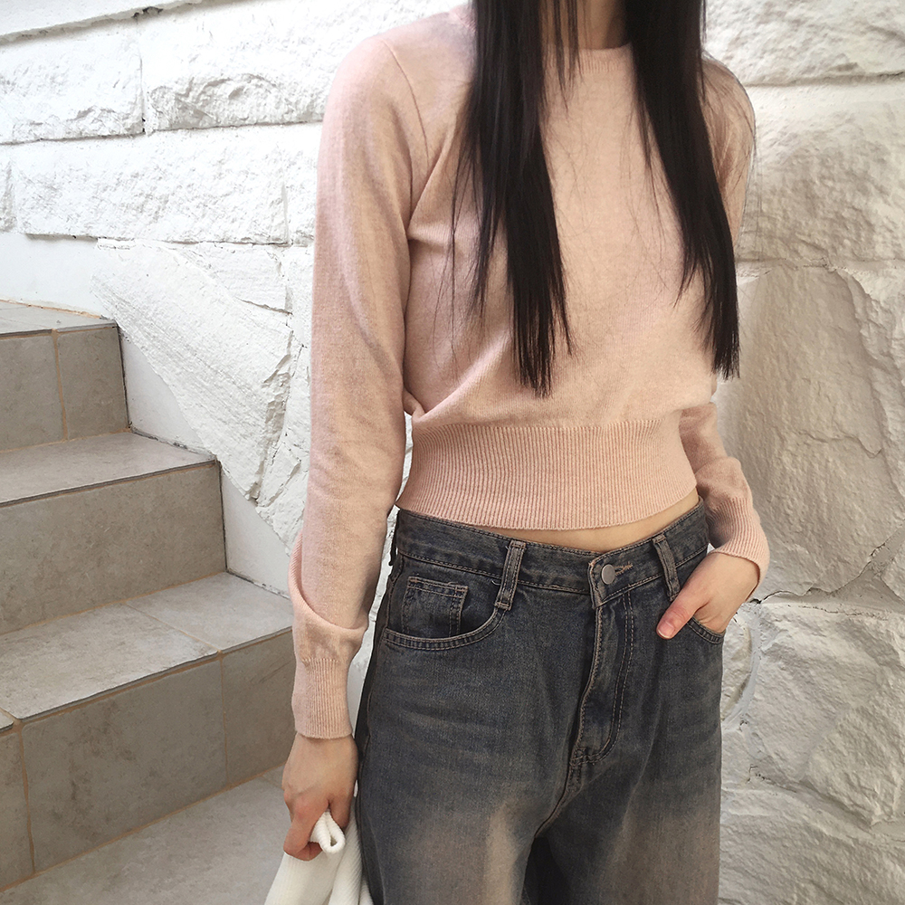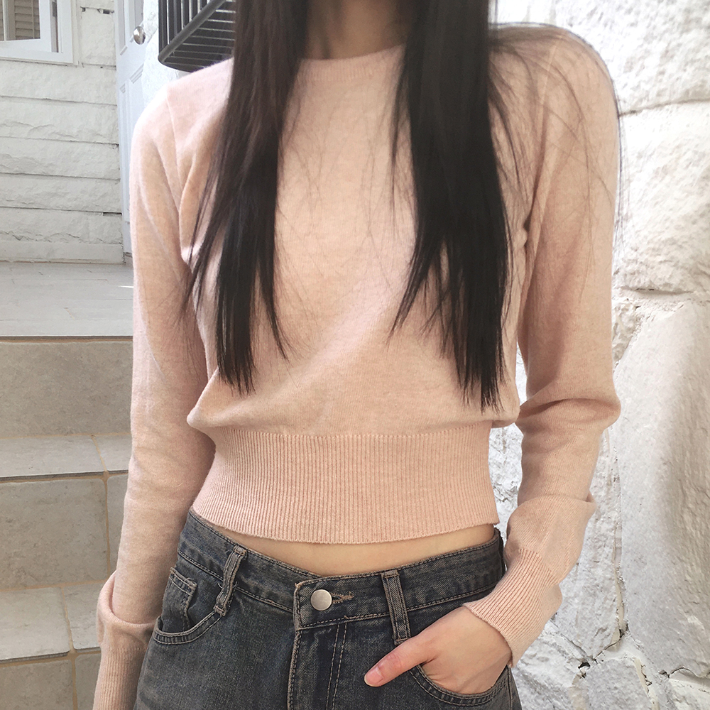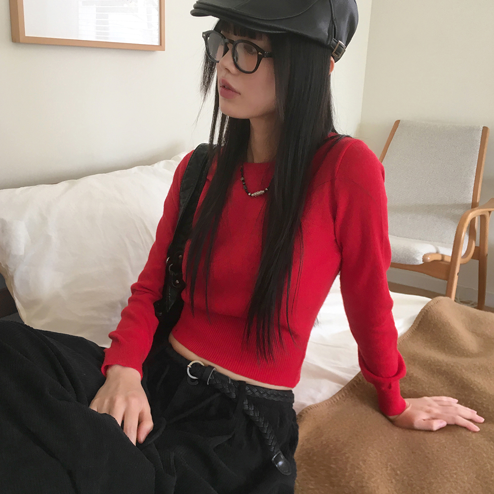 [12color] ウールラウンドクロップド長袖ニット