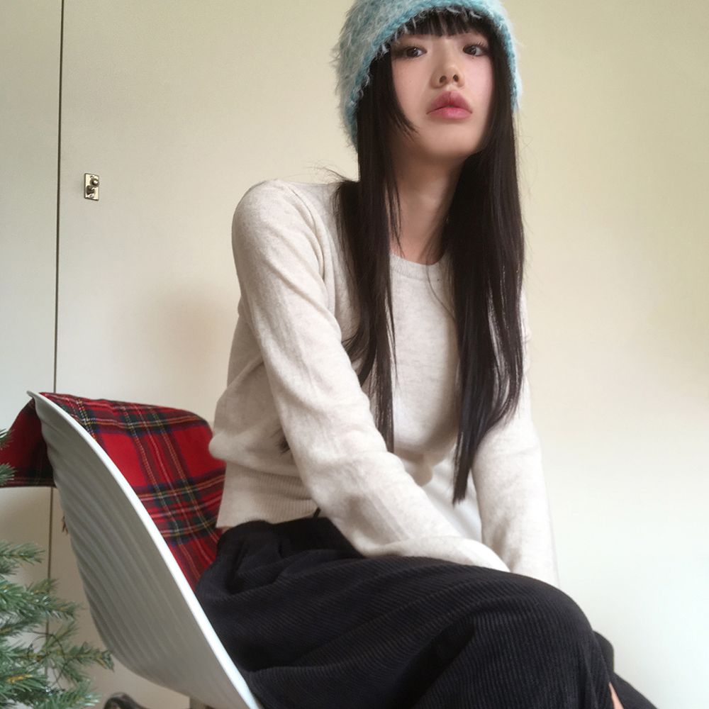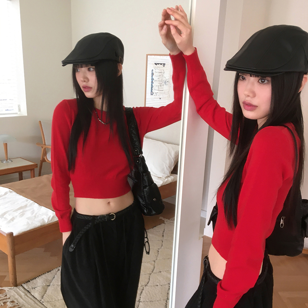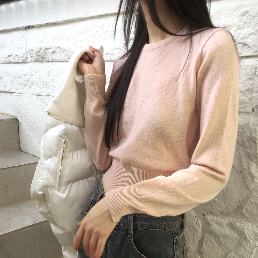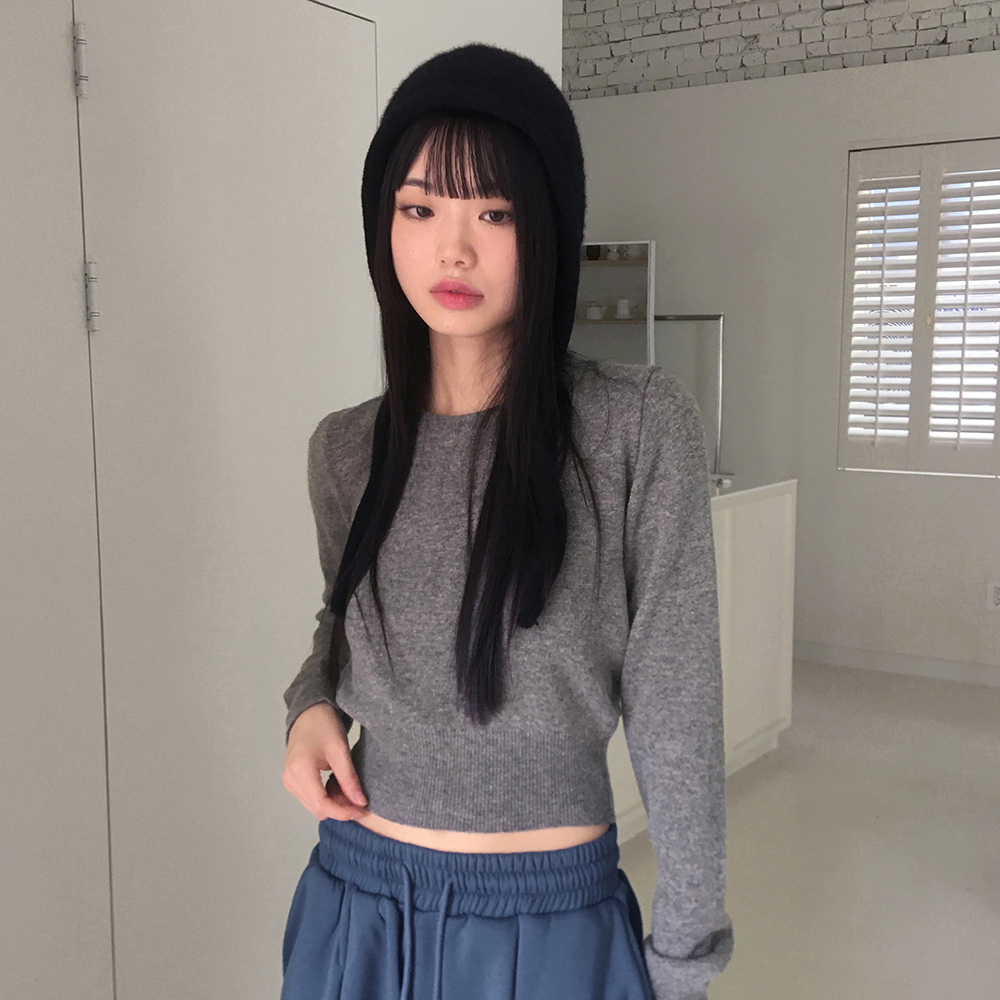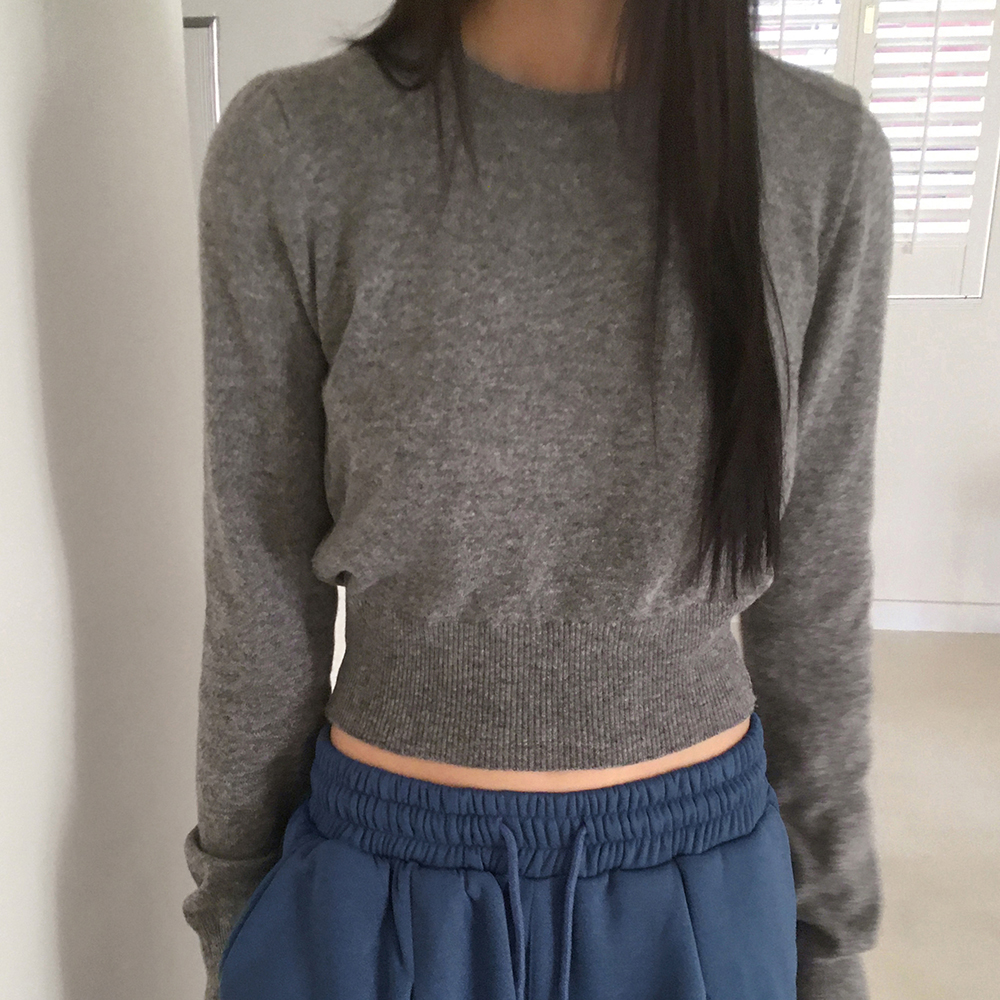 [12color] ウールラウンドクロップド長袖ニット