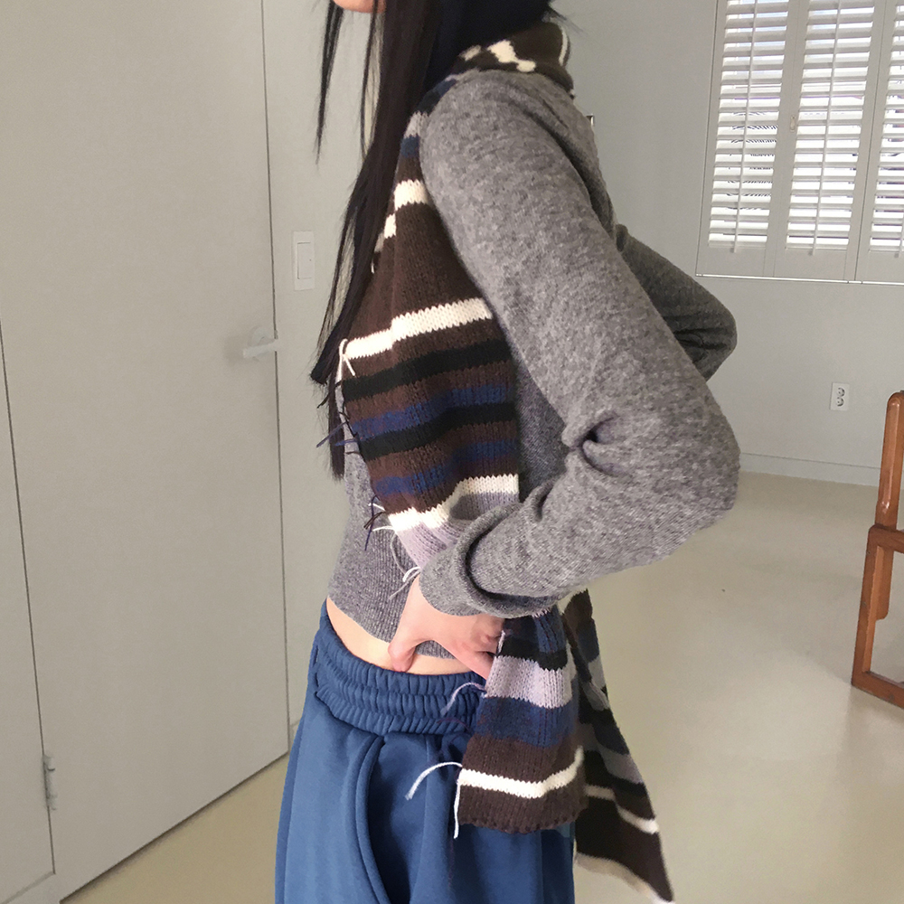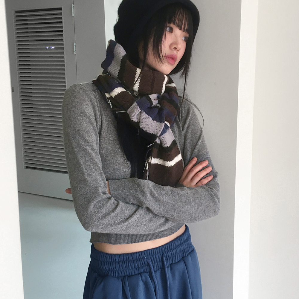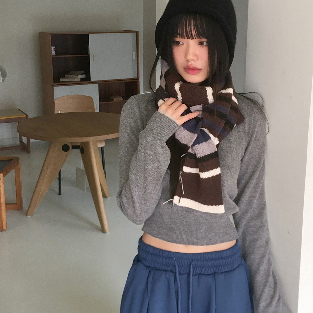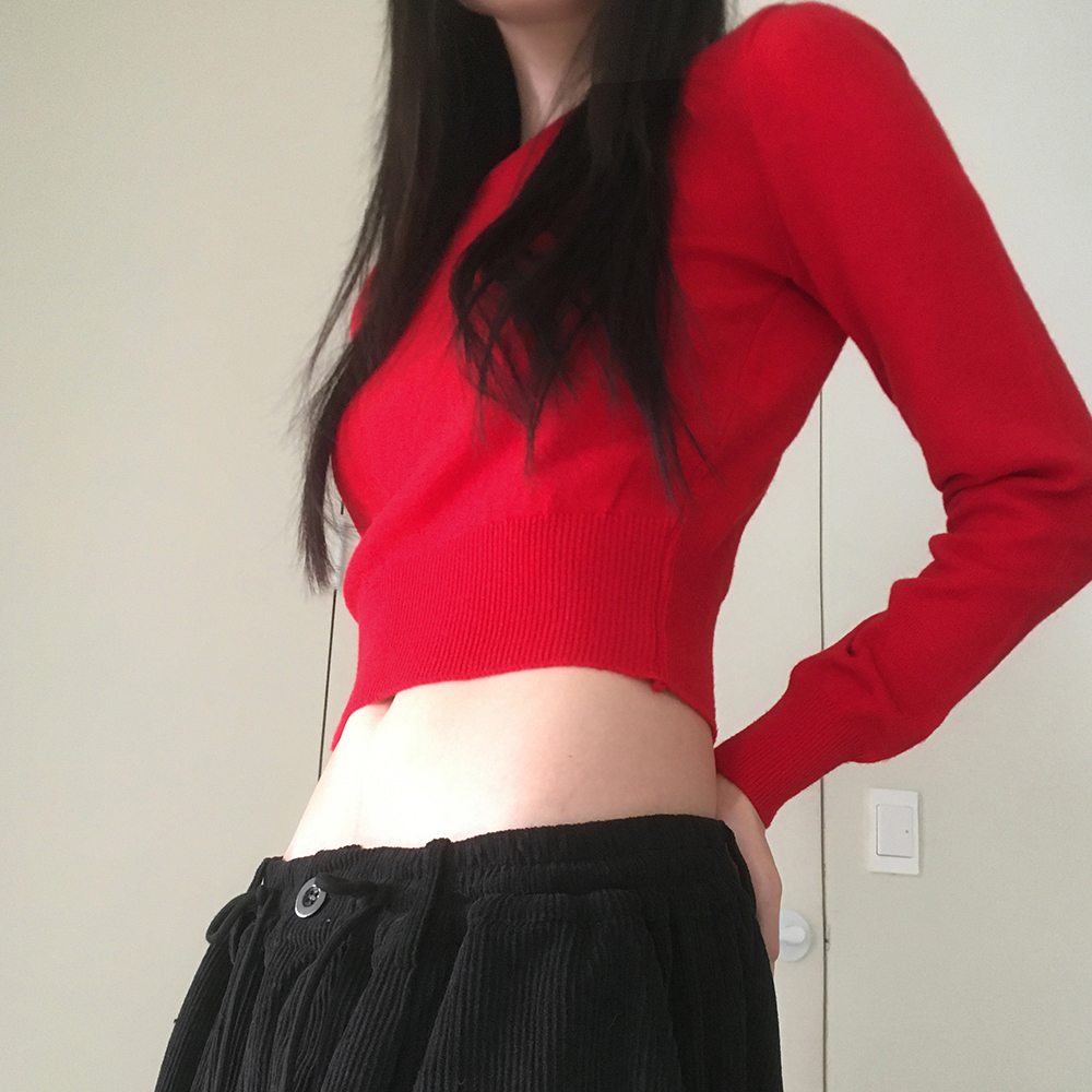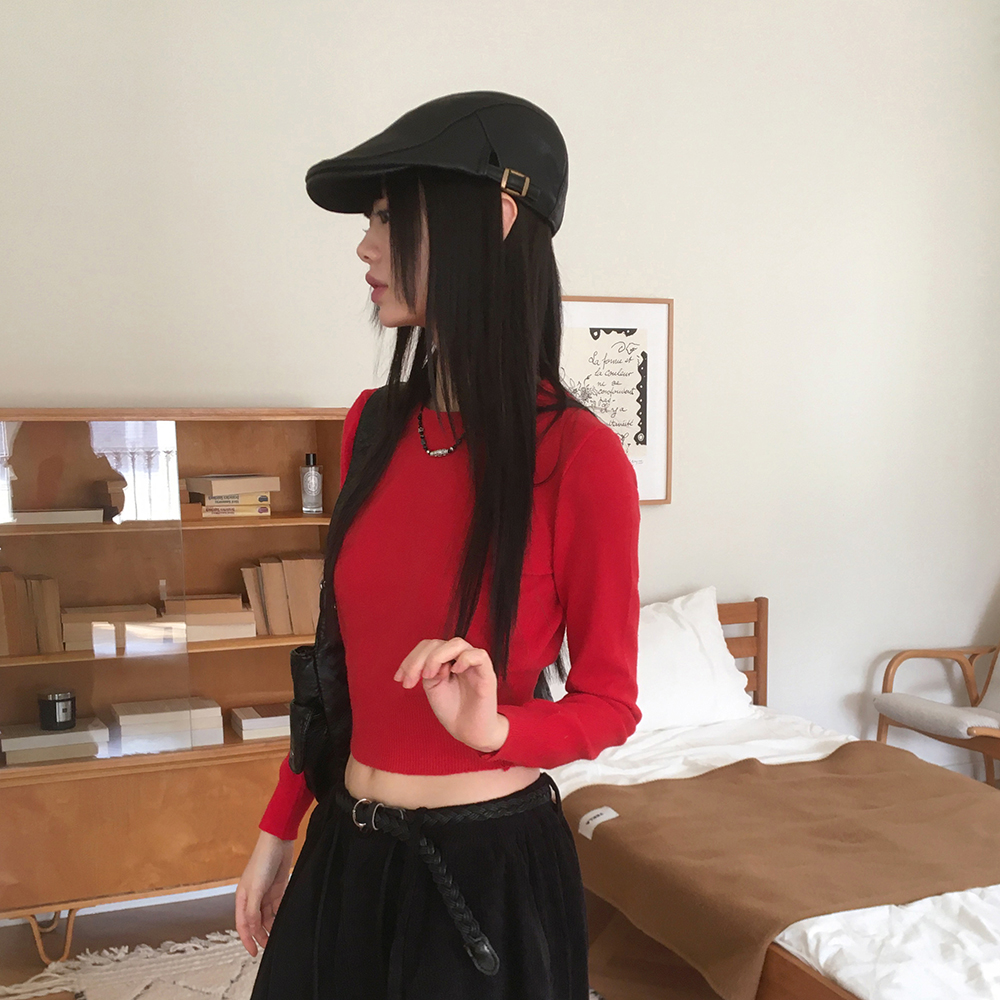 [12color] ウールラウンドクロップド長袖ニット