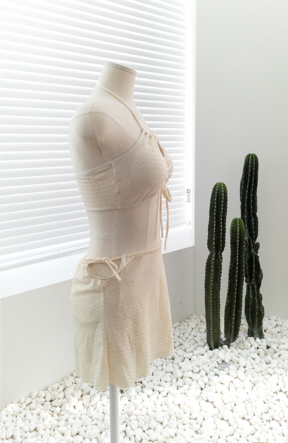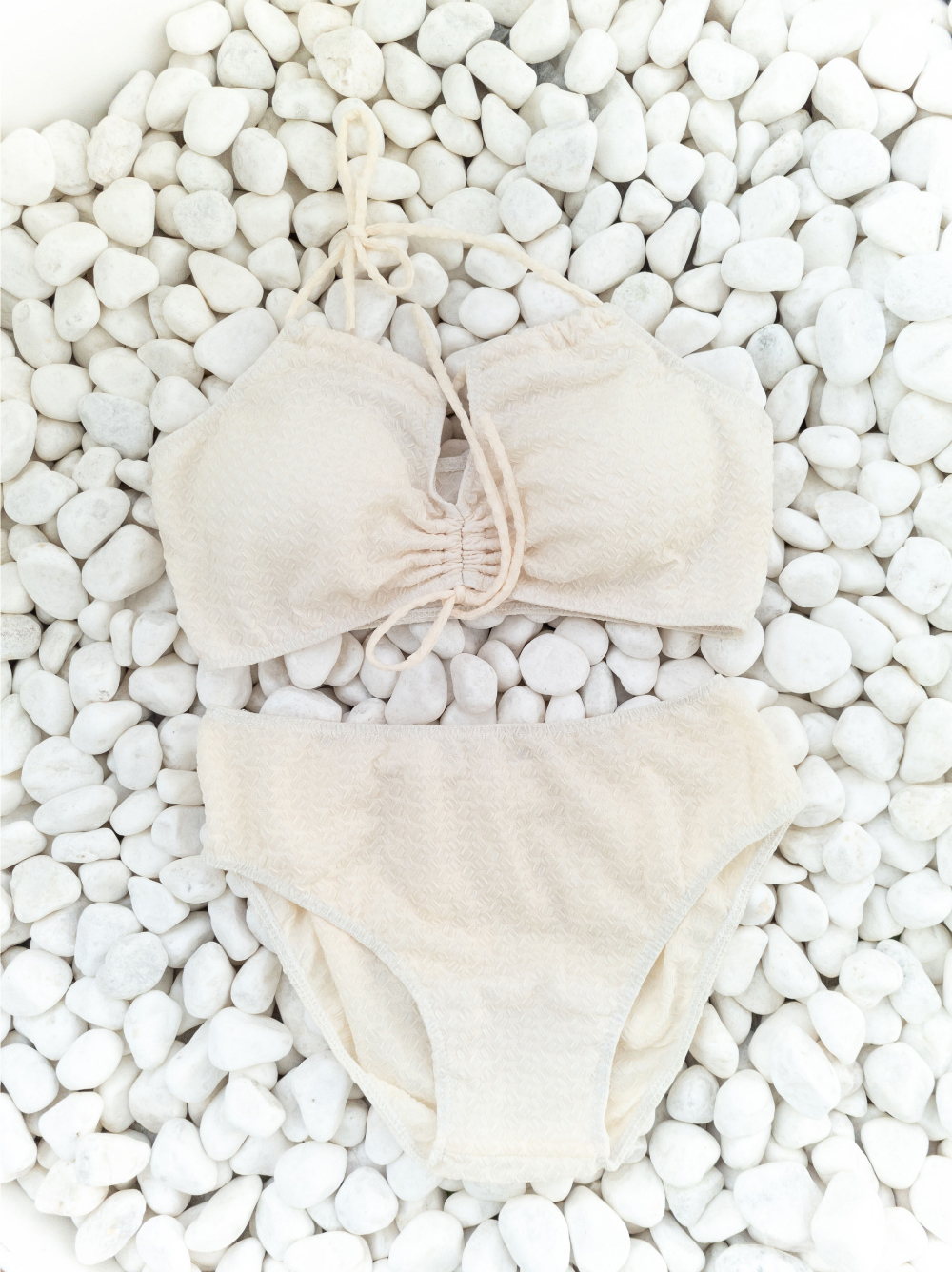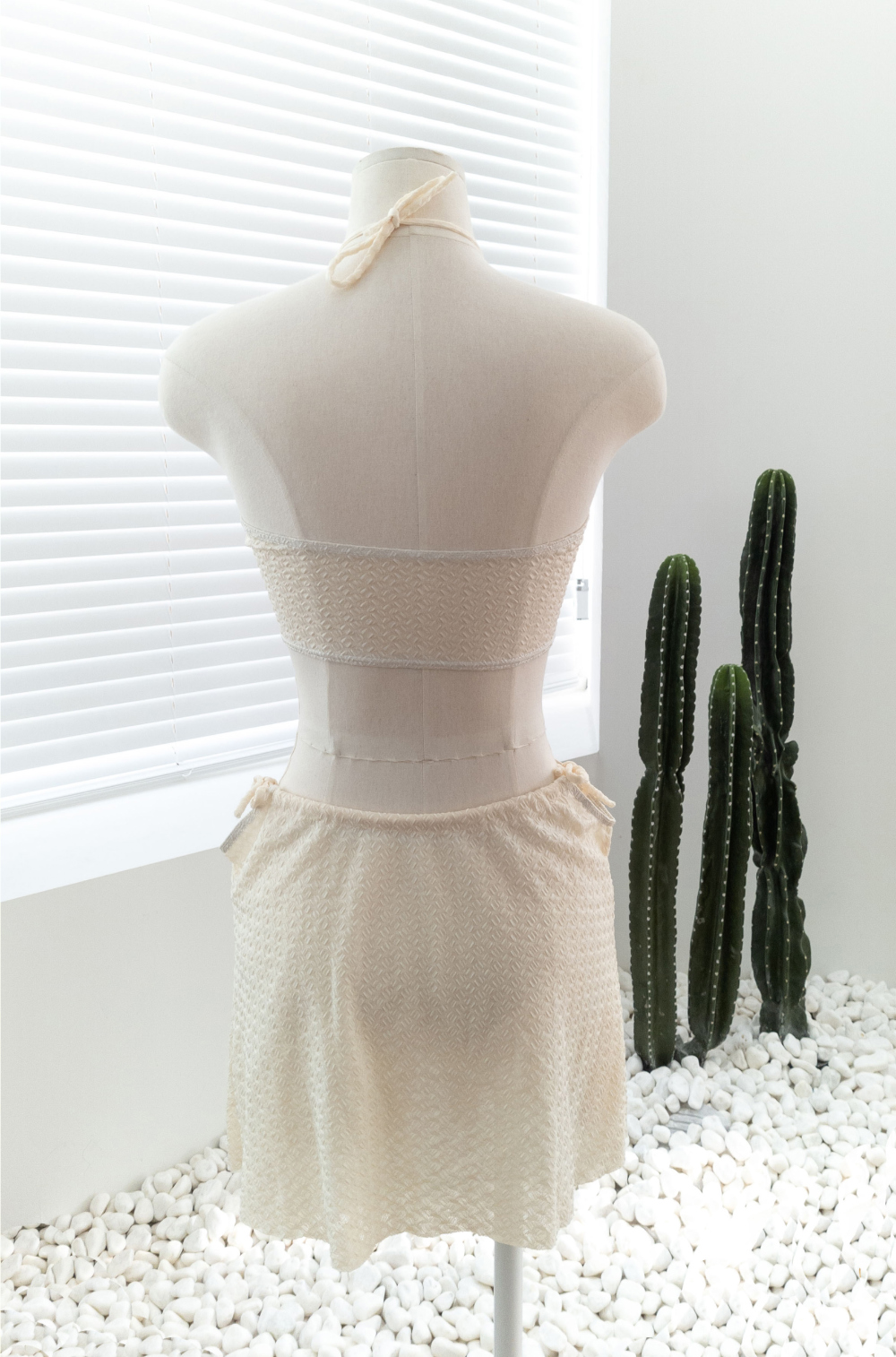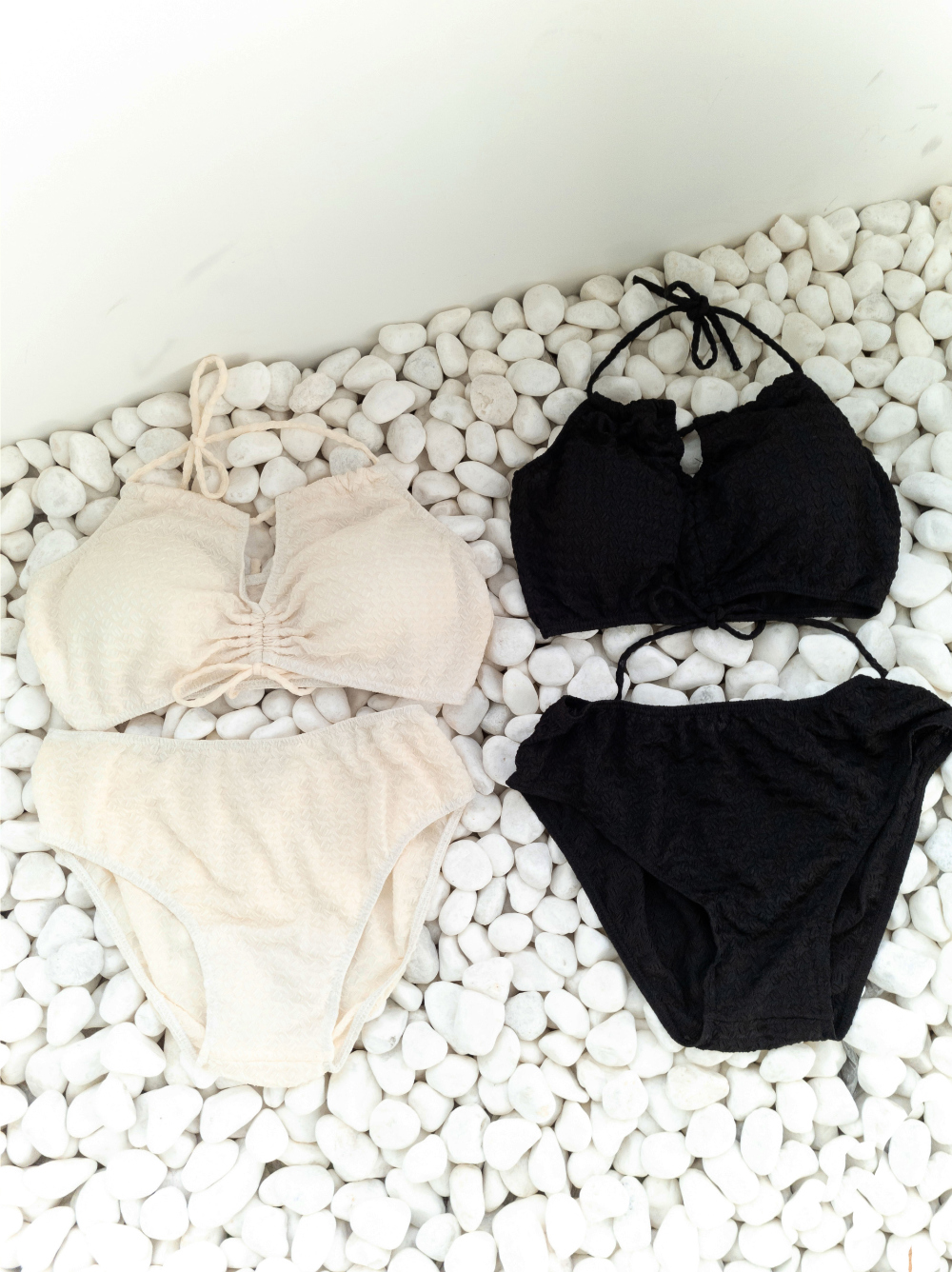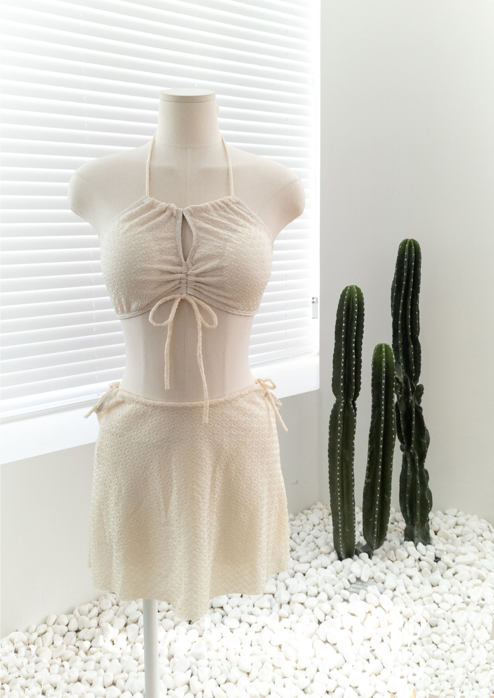 [SET] [パッド付き] ホルターネックチューブトップ+リボン紐スカートビキニ水着