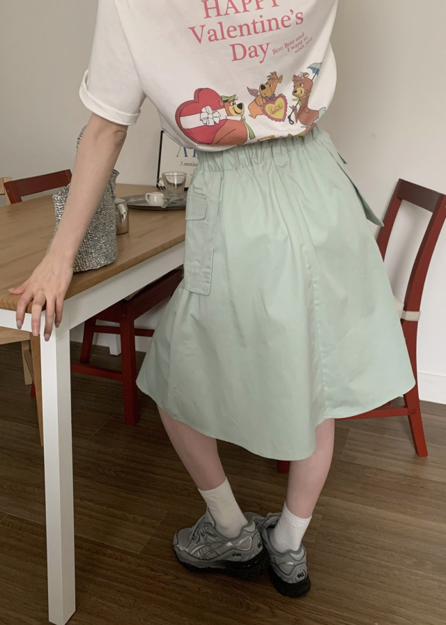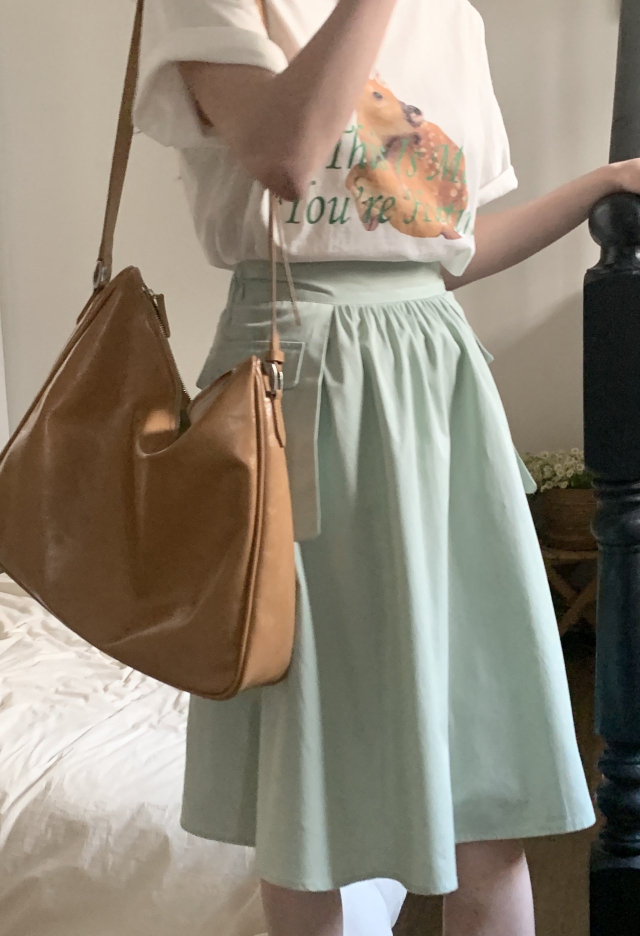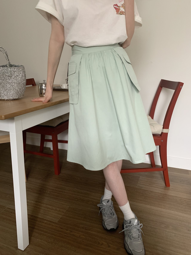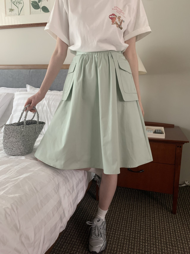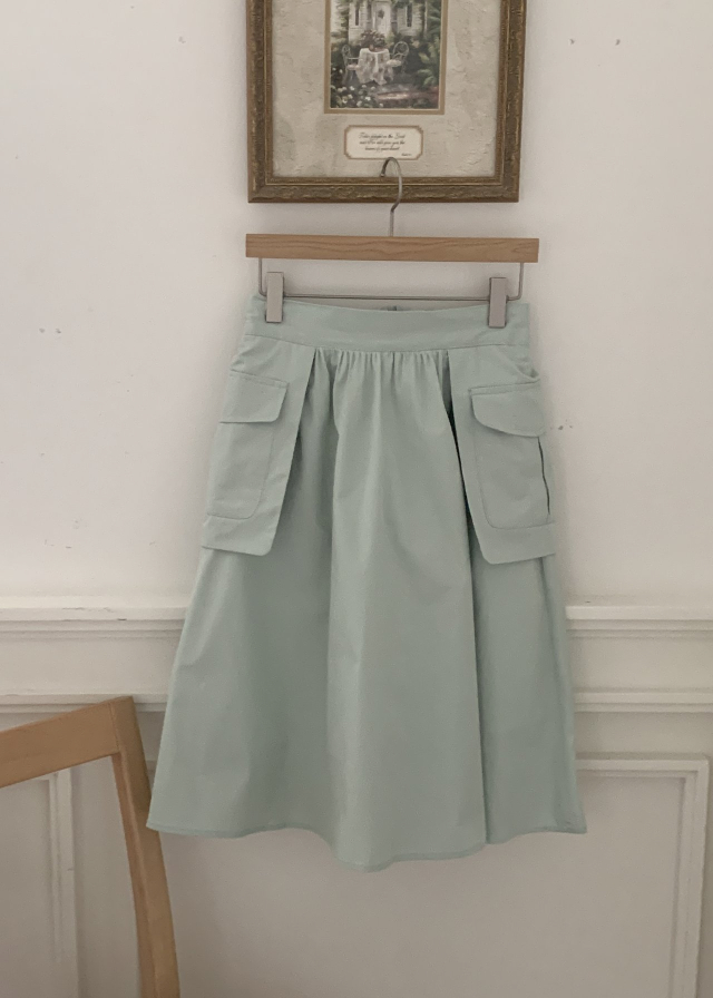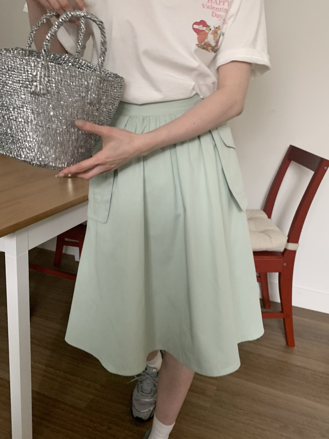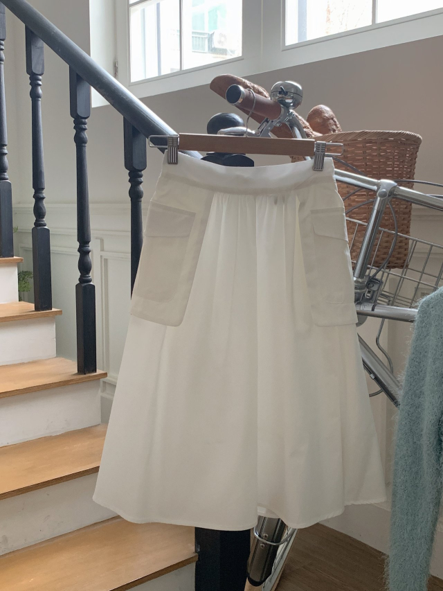 [裏地付き] ポケットゴムAラインミドル丈フレアスカート(3c)