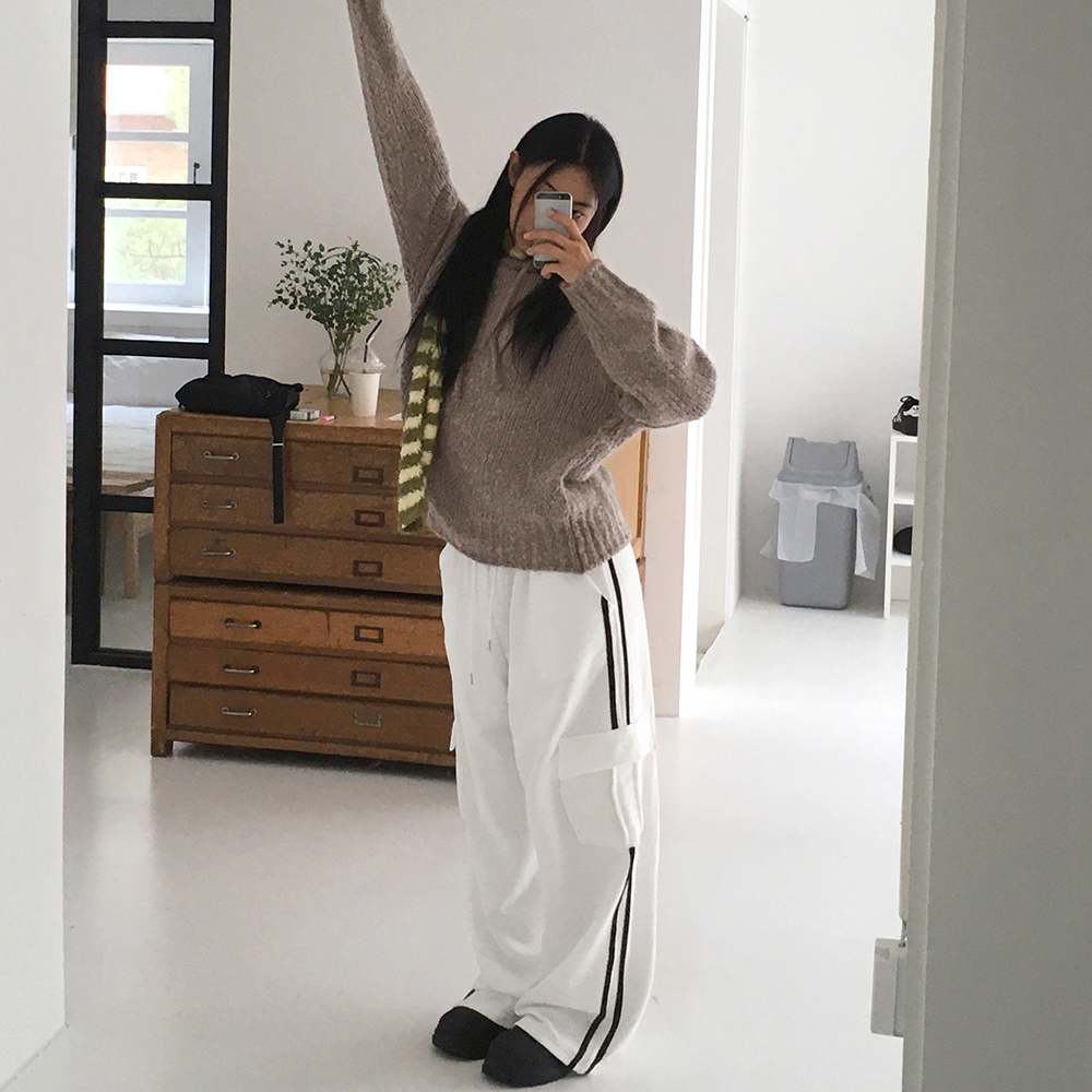 トラックバイカラーカーゴポケットパイルトレーニングパンツ