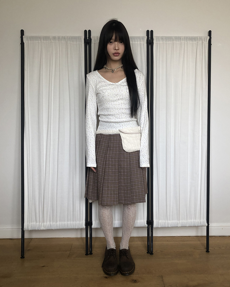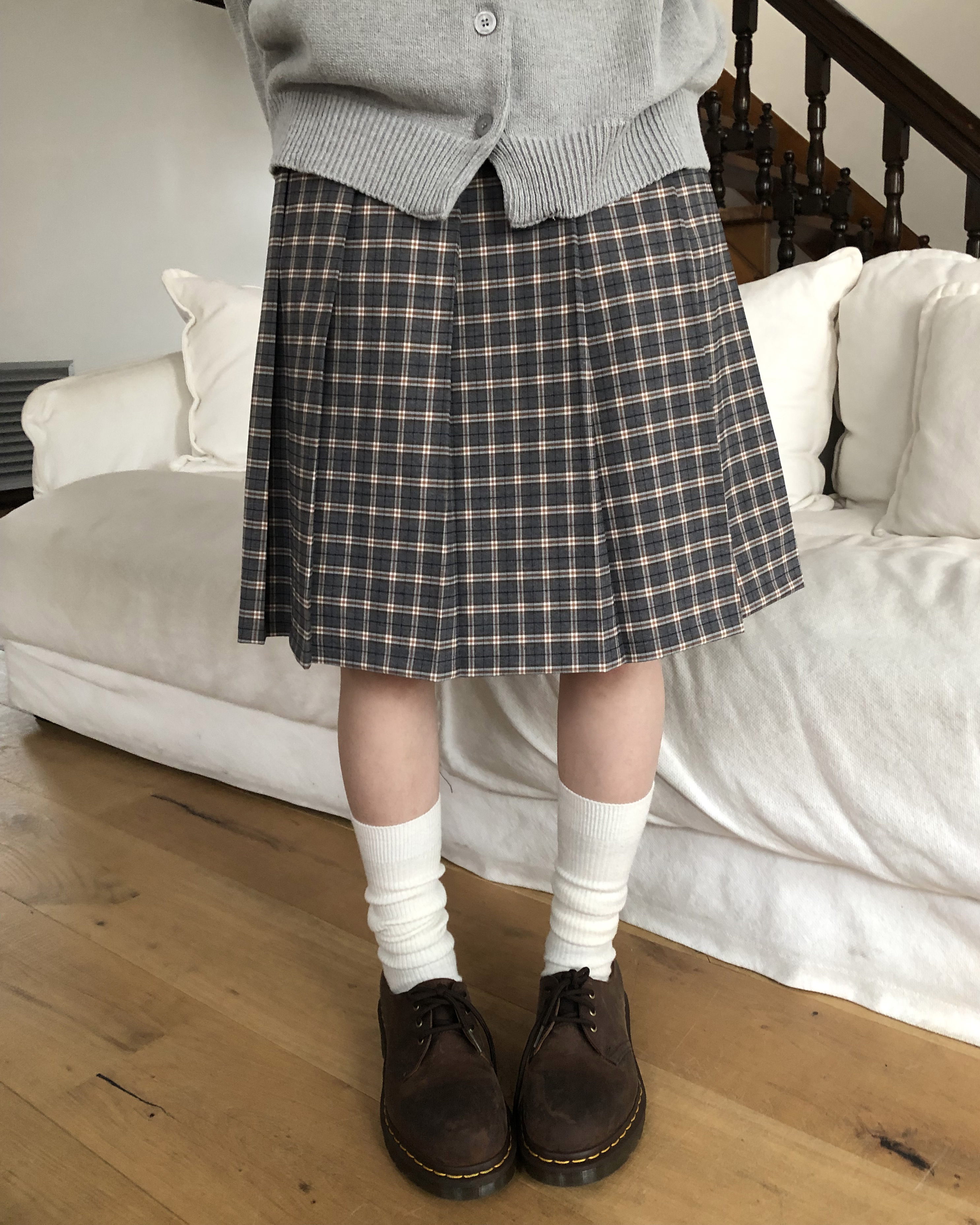 プリーツチェックミドル丈スカート