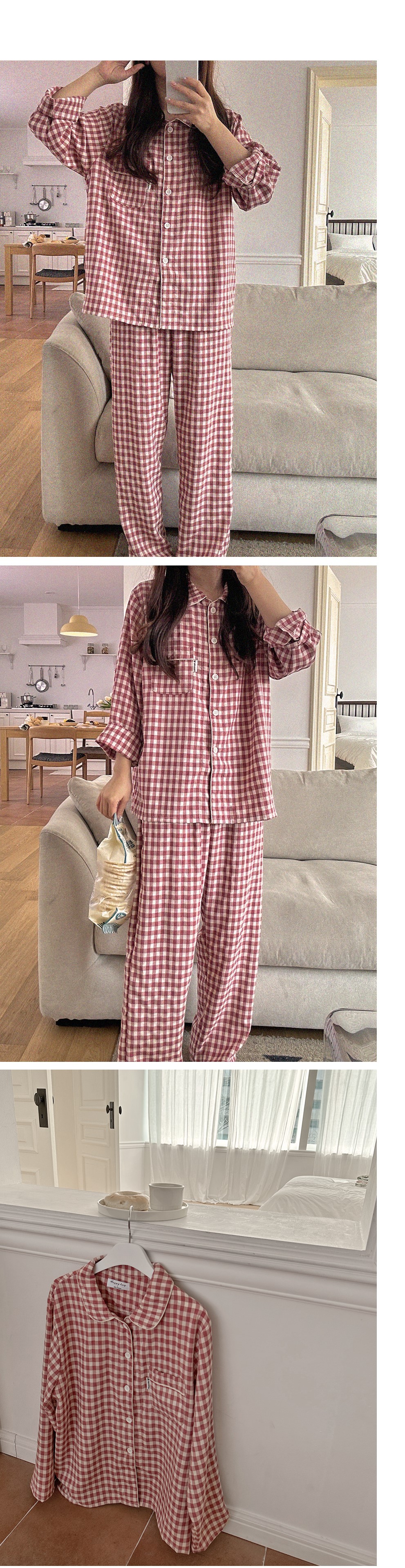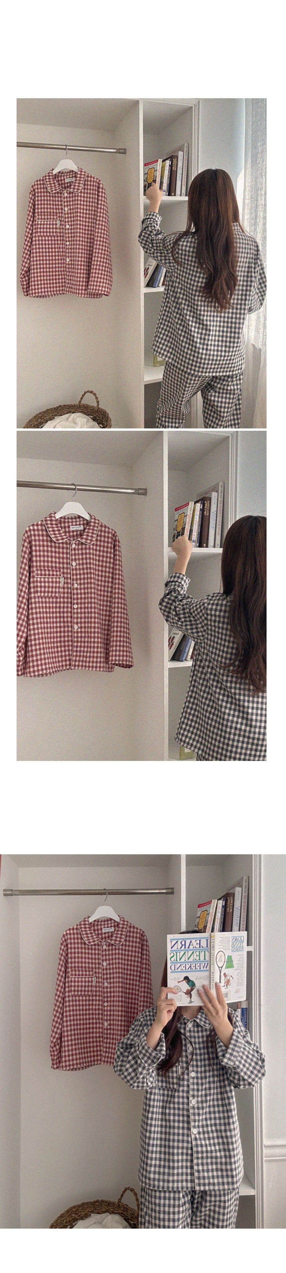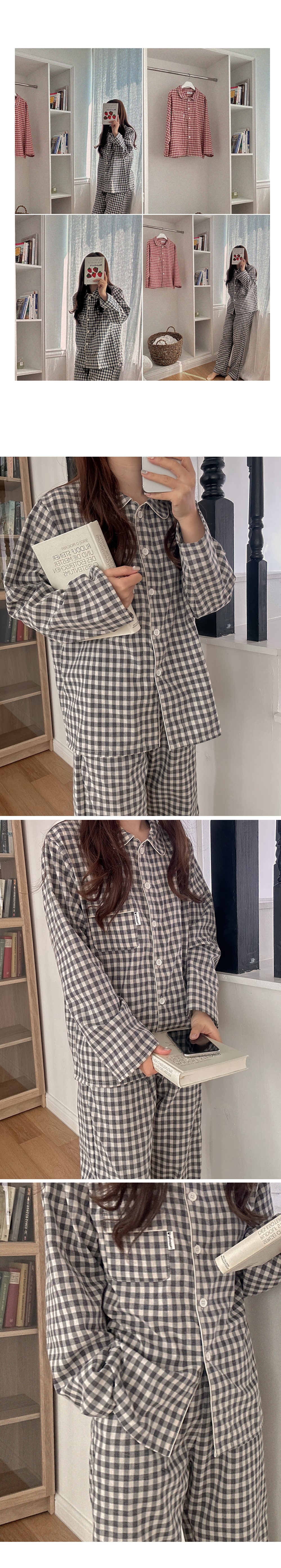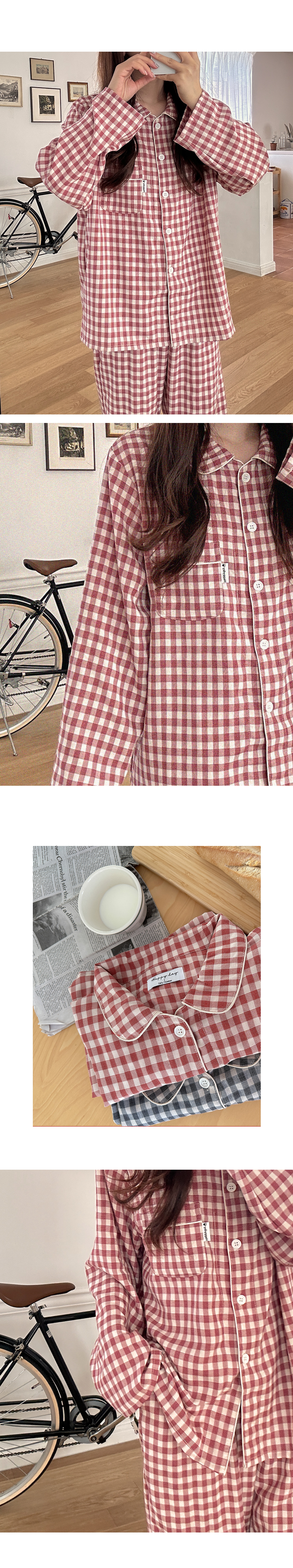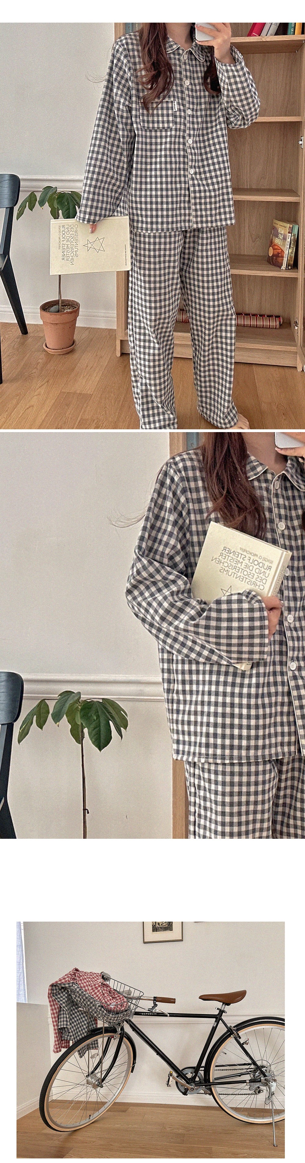 [2color]チェック長袖パジャマセット